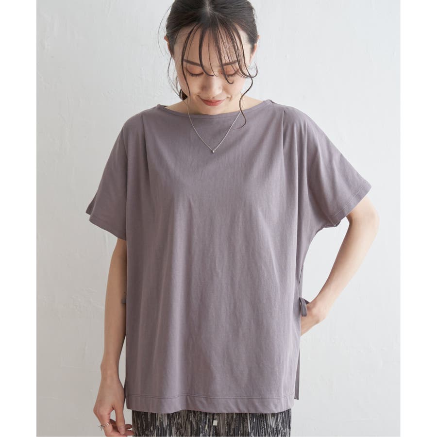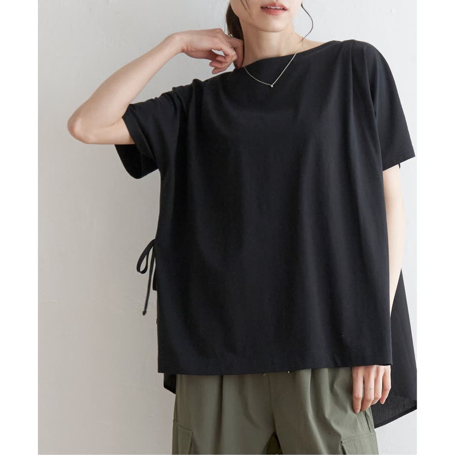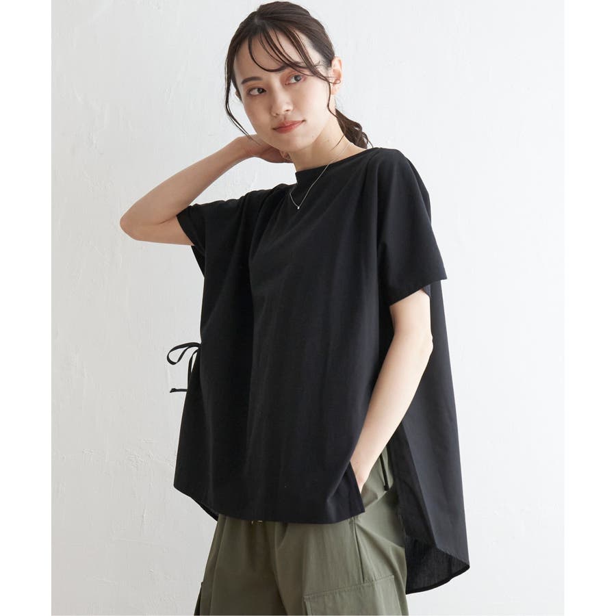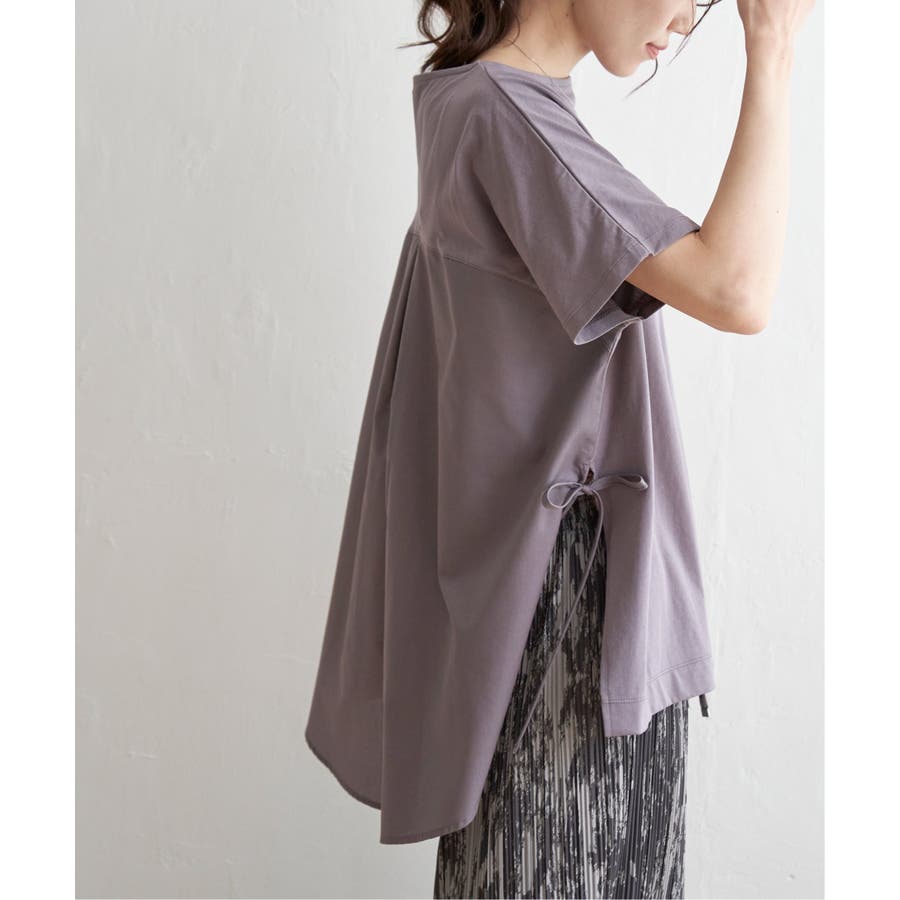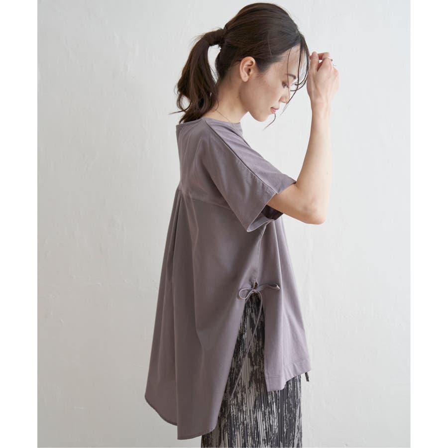 Tシャツライクながら、脇のリボンやバックスタイルにタックのディティールが入った、抜け目のないデザインカットソー。