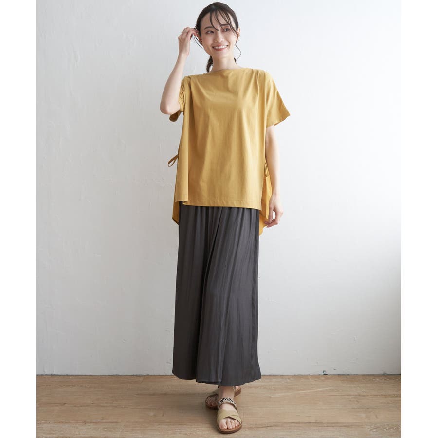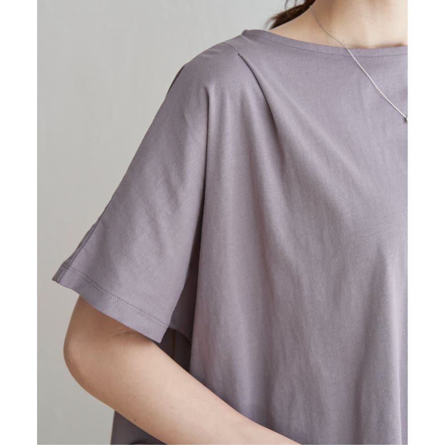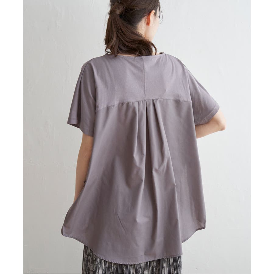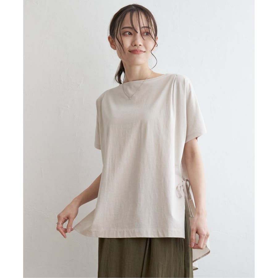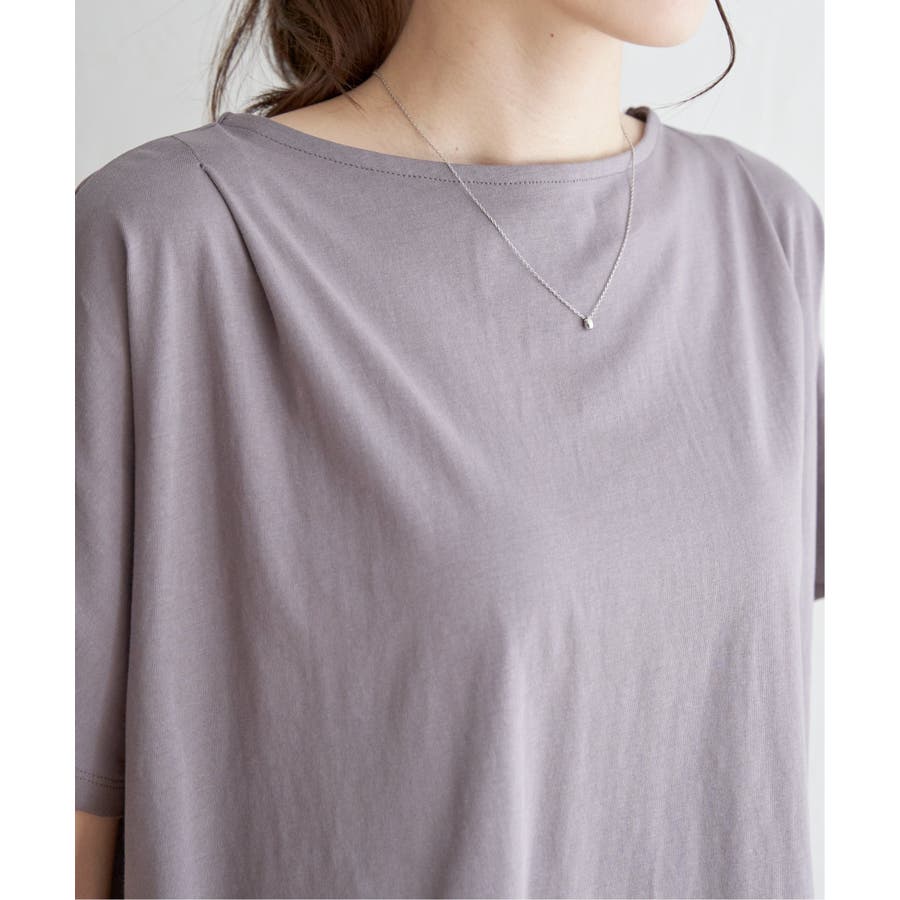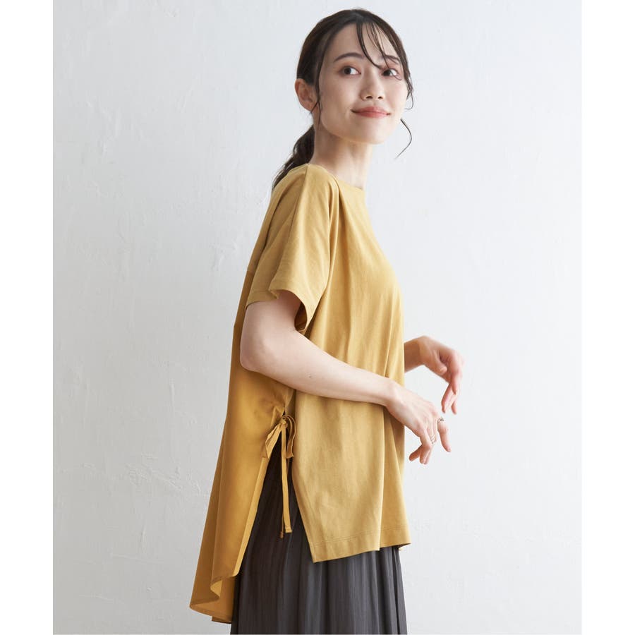 Tシャツライクながら、脇のリボンやバックスタイルにタックのディティールが入った、抜け目のないデザインカットソー。