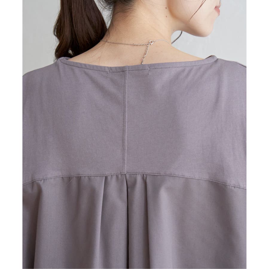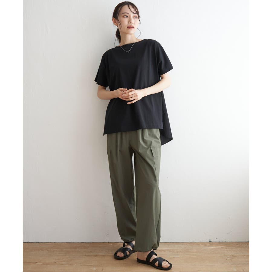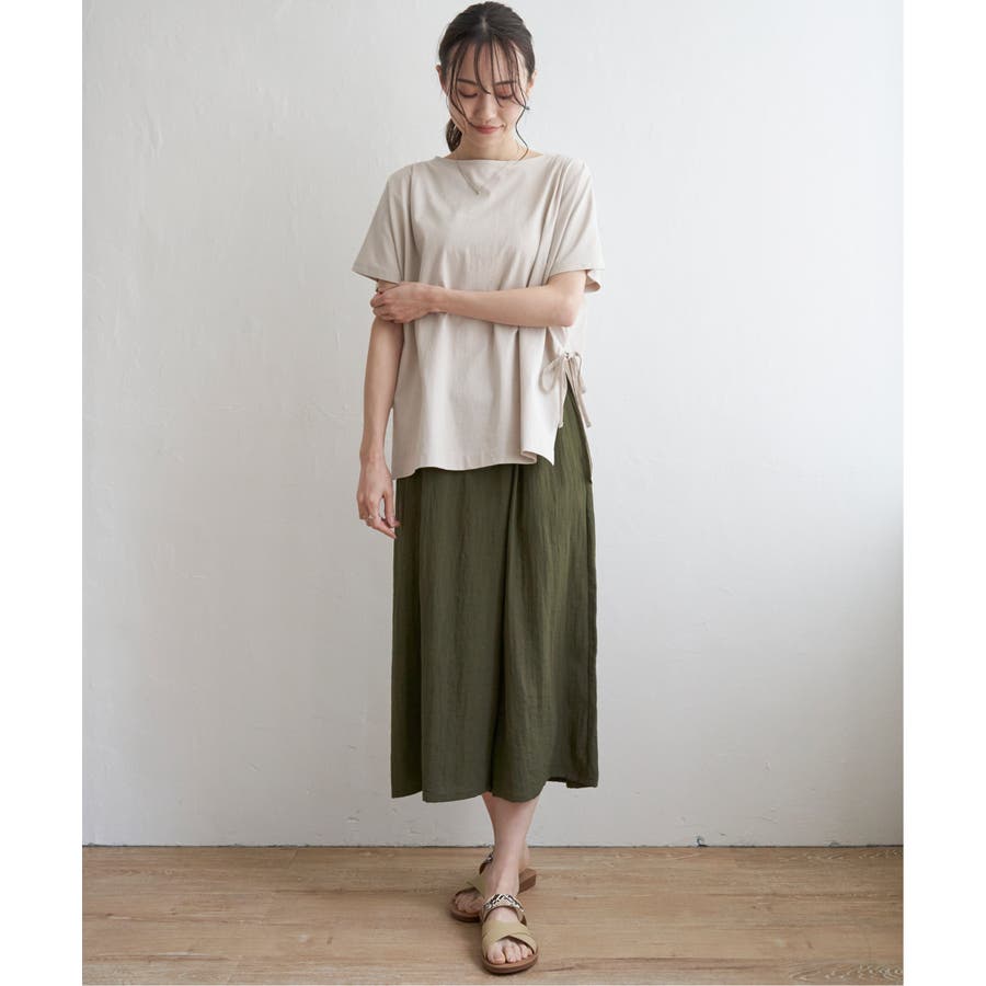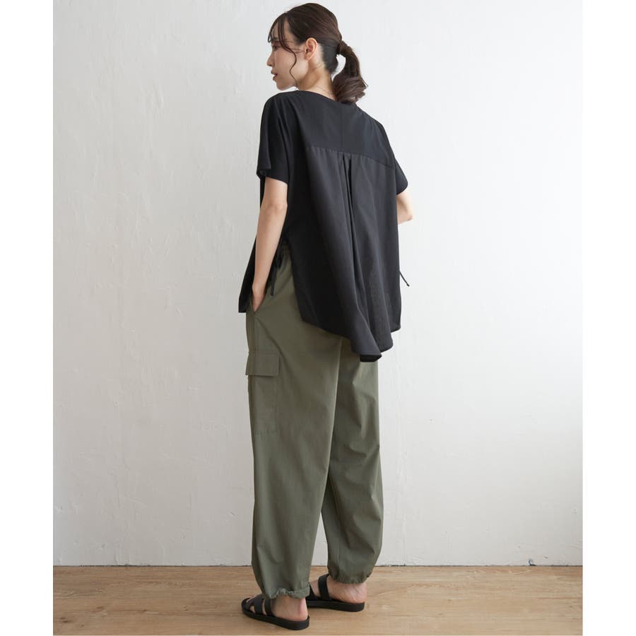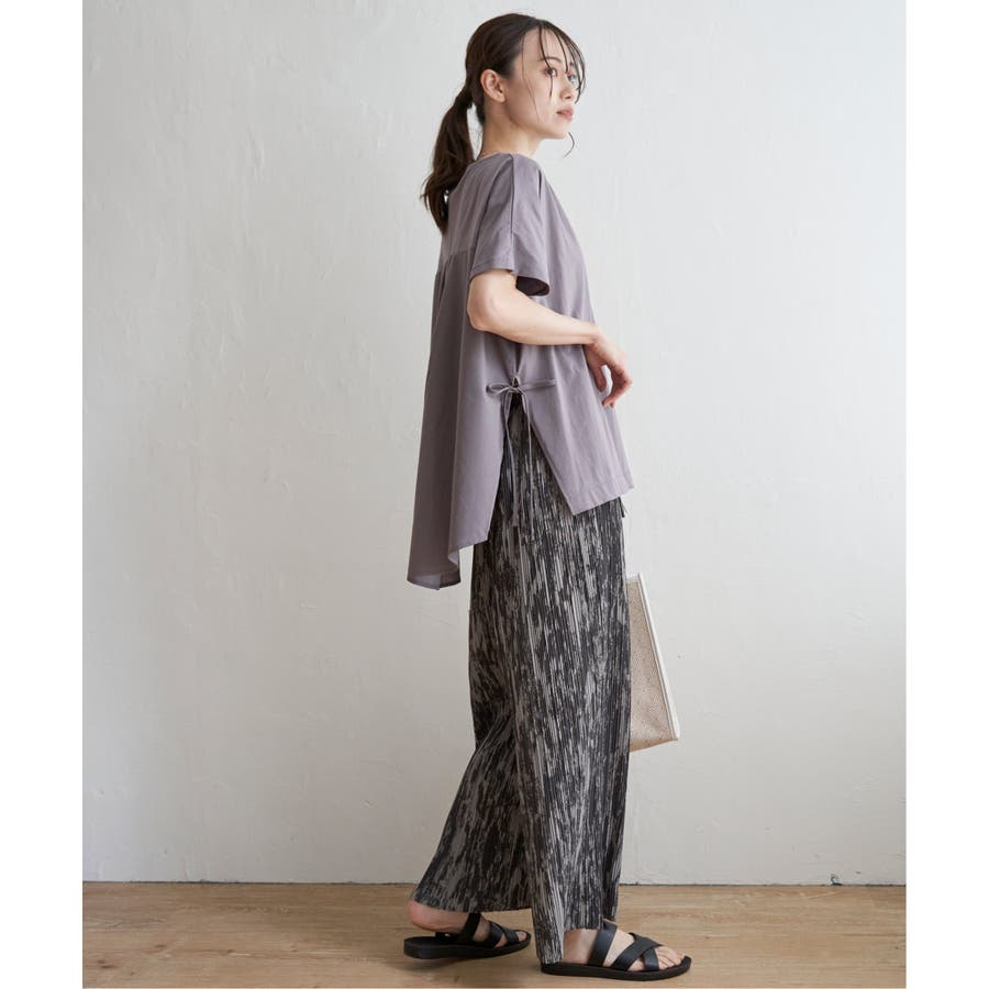 Tシャツライクながら、脇のリボンやバックスタイルにタックのディティールが入った、抜け目のないデザインカットソー。