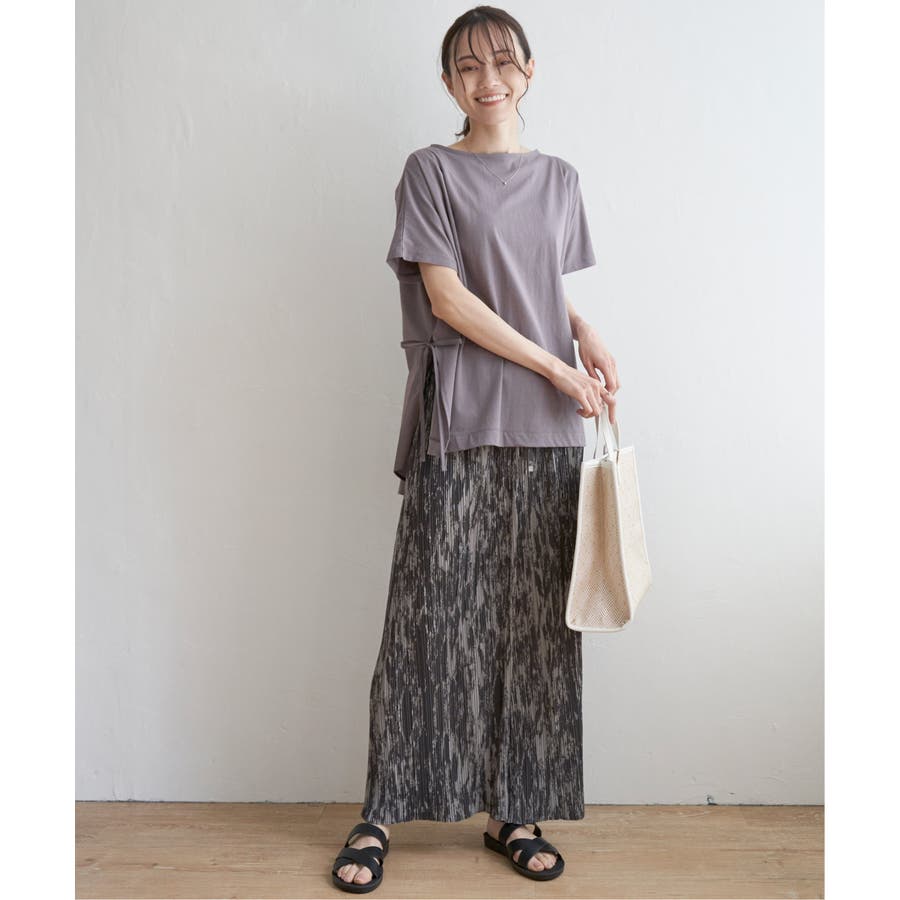 異素材使いやサイドスリット、リボン使いなど、細部にこだわったチュニック。