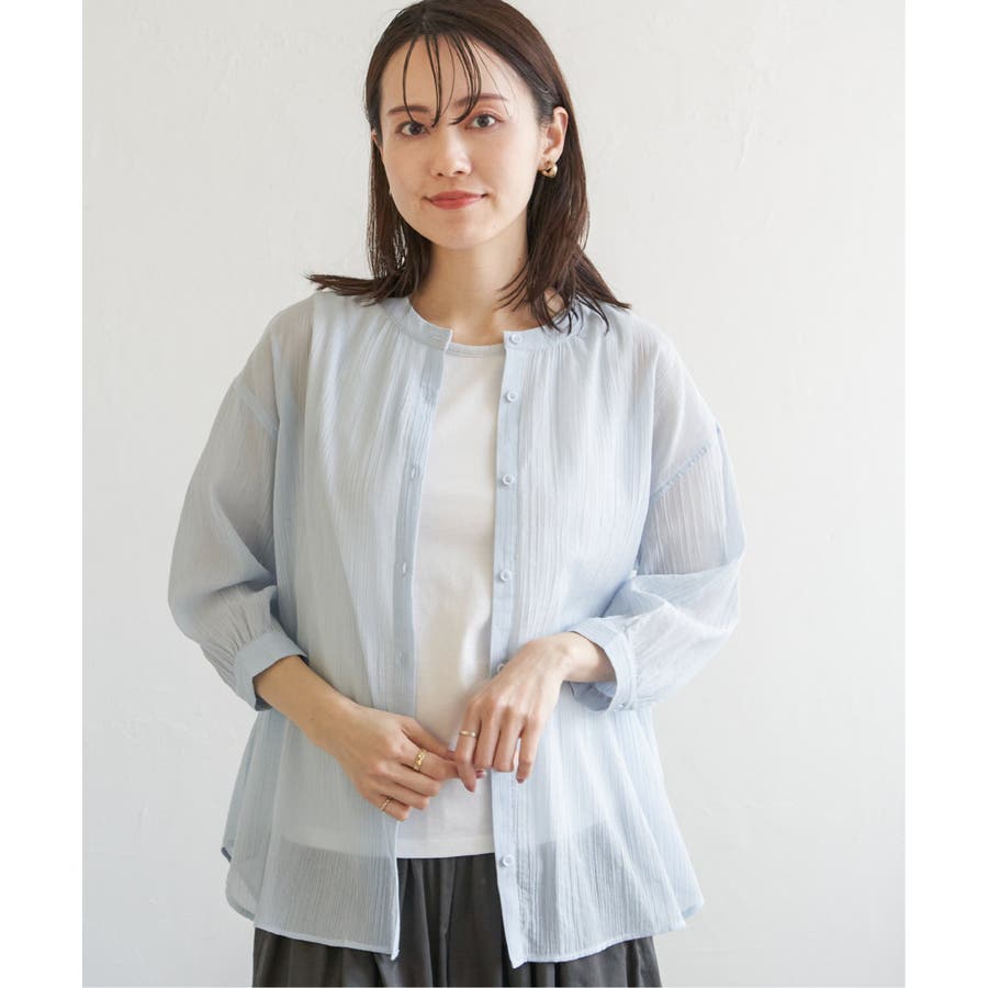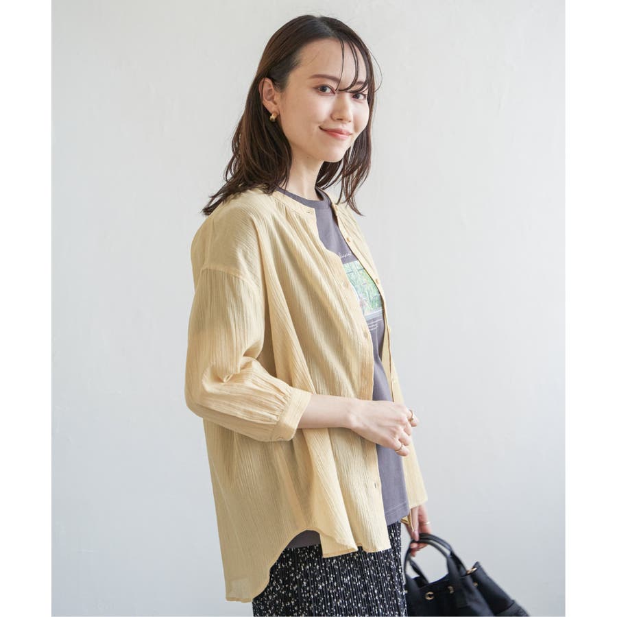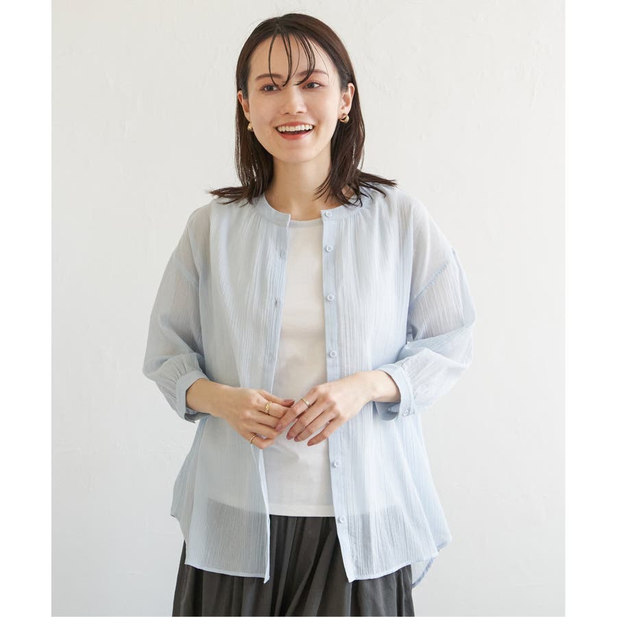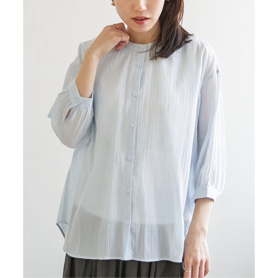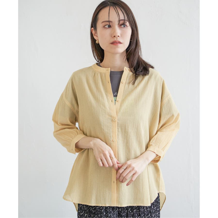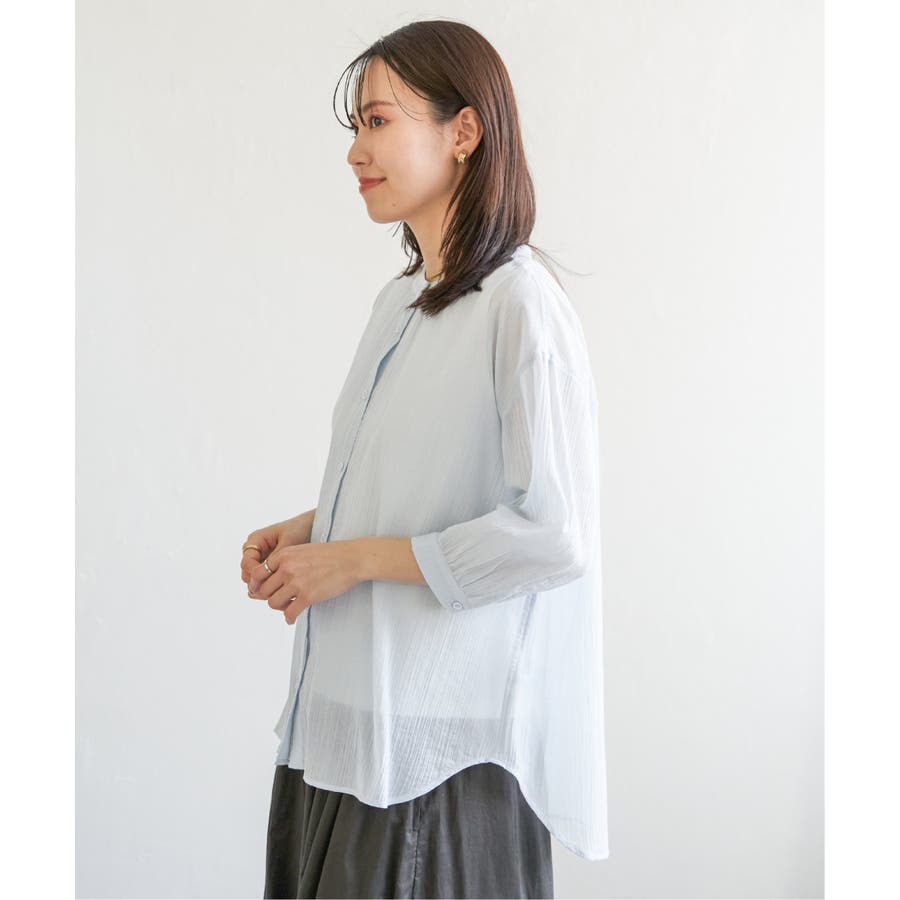 さらりとした楊柳(ようりゅう)生地のバンドカラーシャツ。