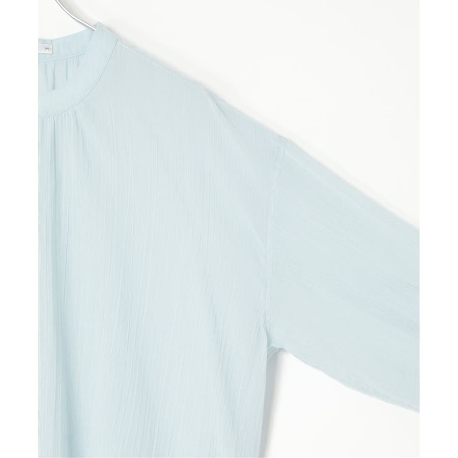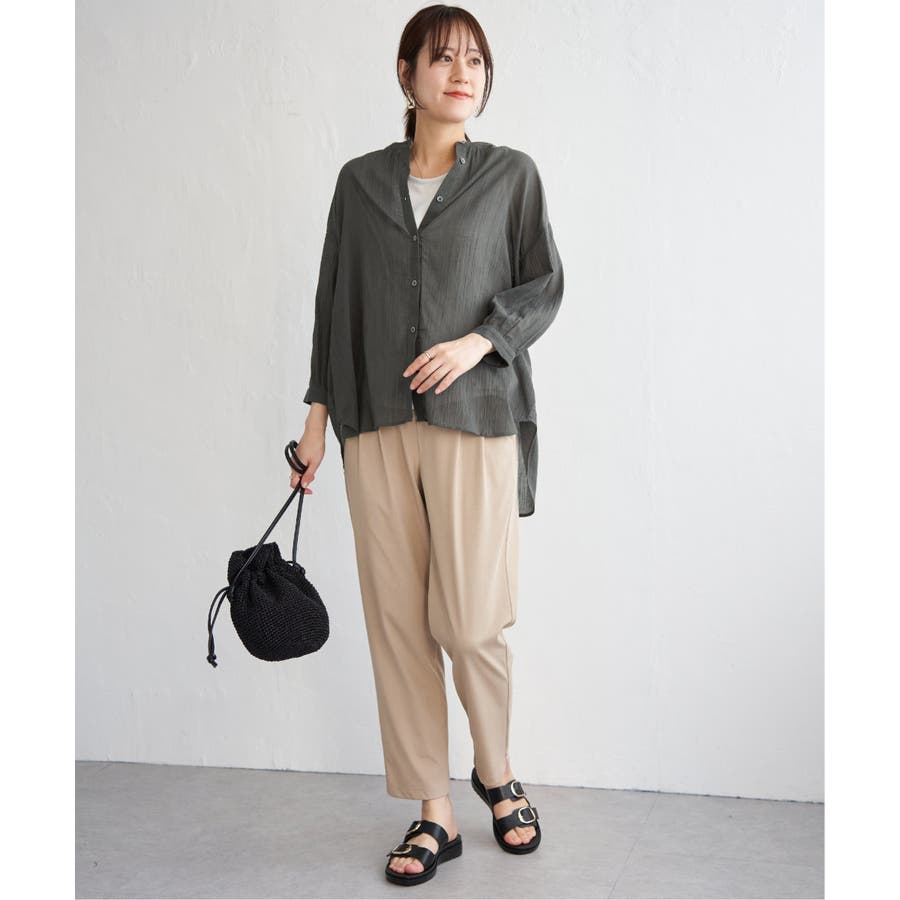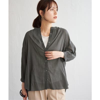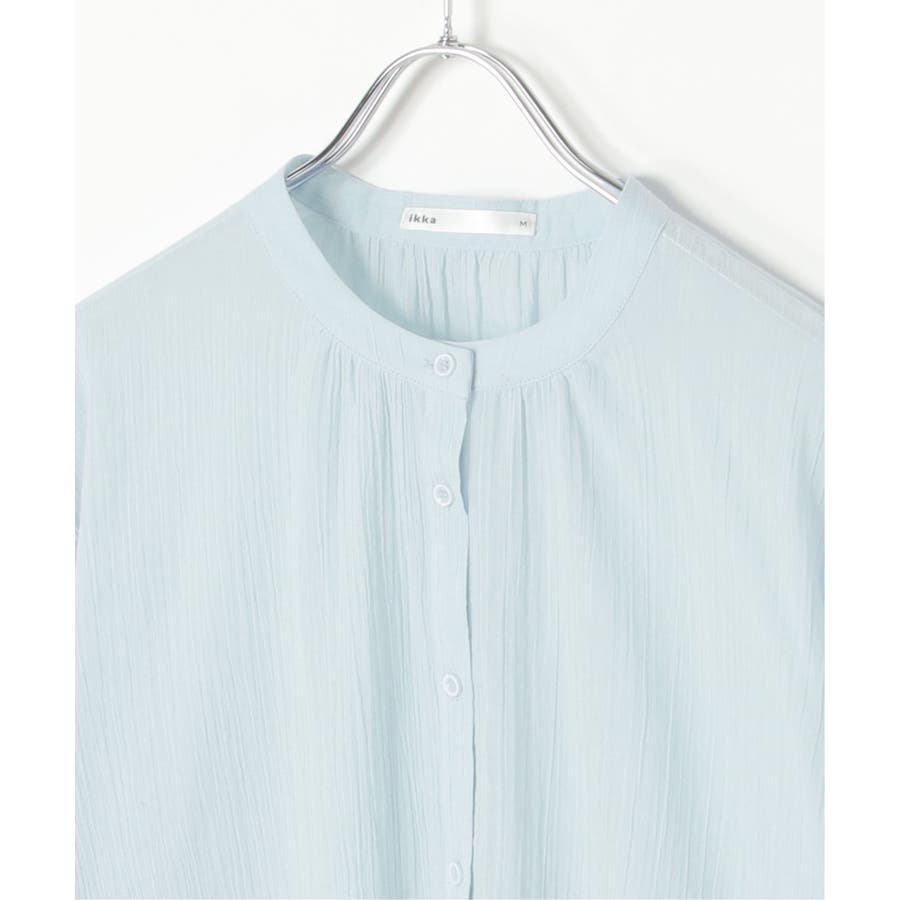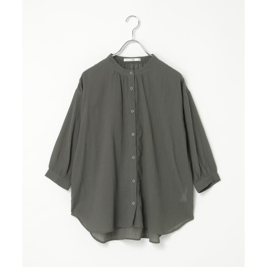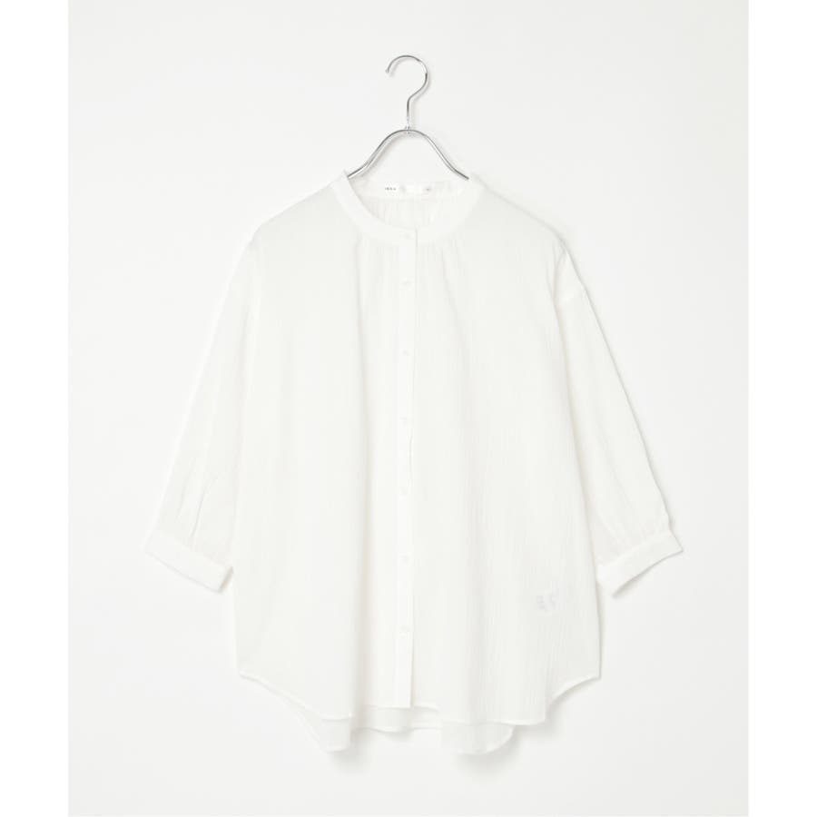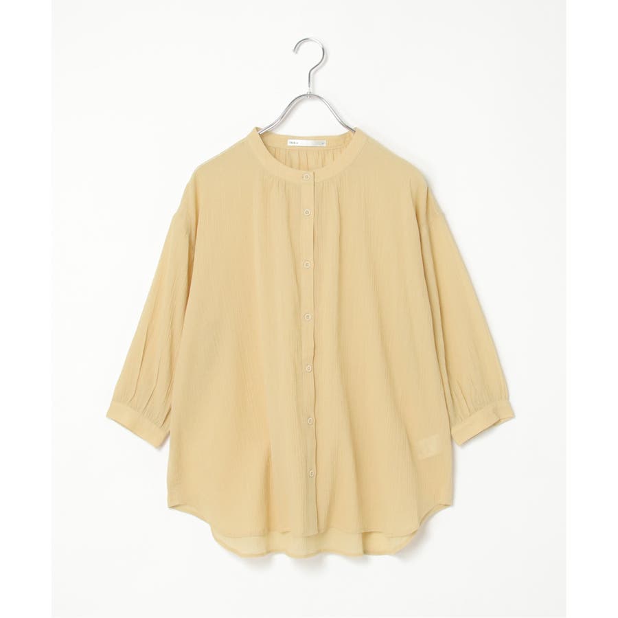 さらりとした楊柳(ようりゅう)生地のバンドカラーシャツ。