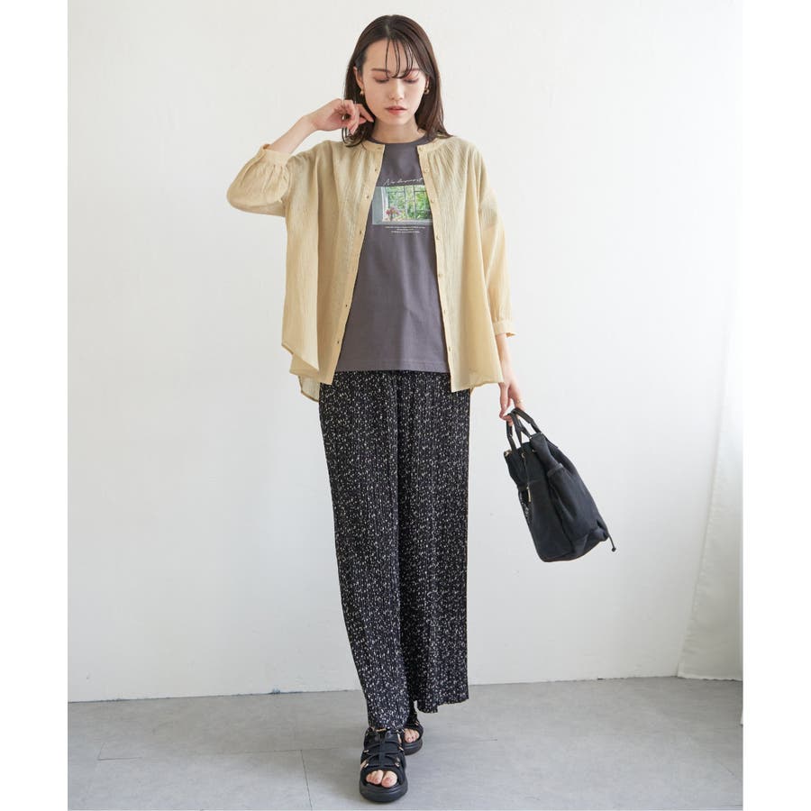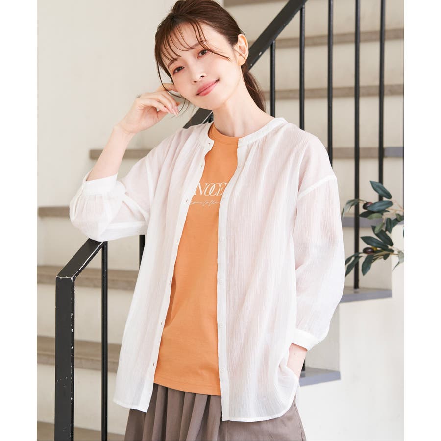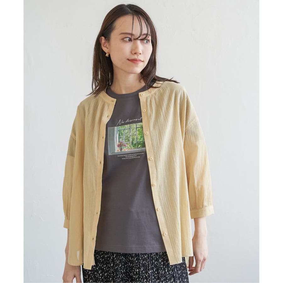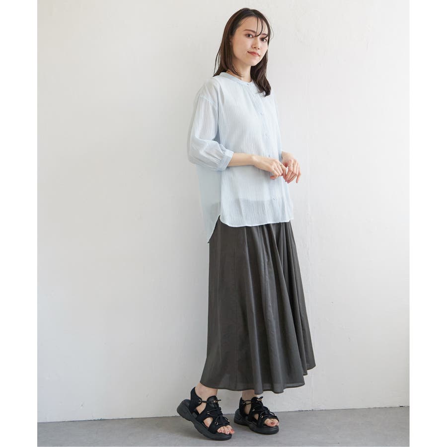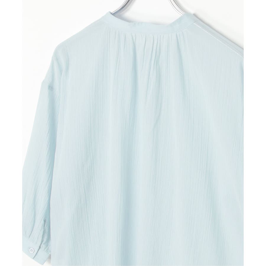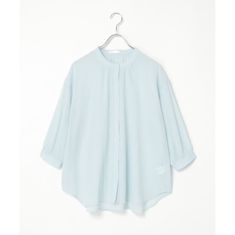 さらりとした楊柳(ようりゅう)生地のバンドカラーシャツ。