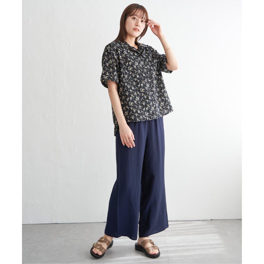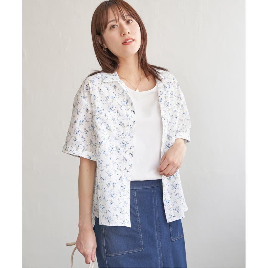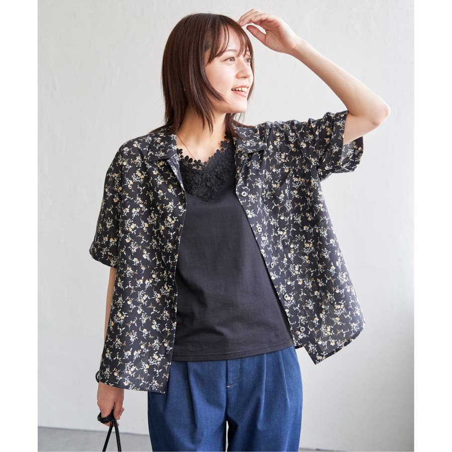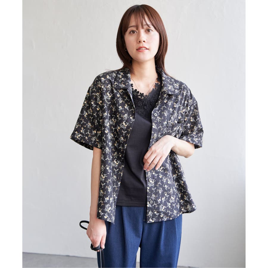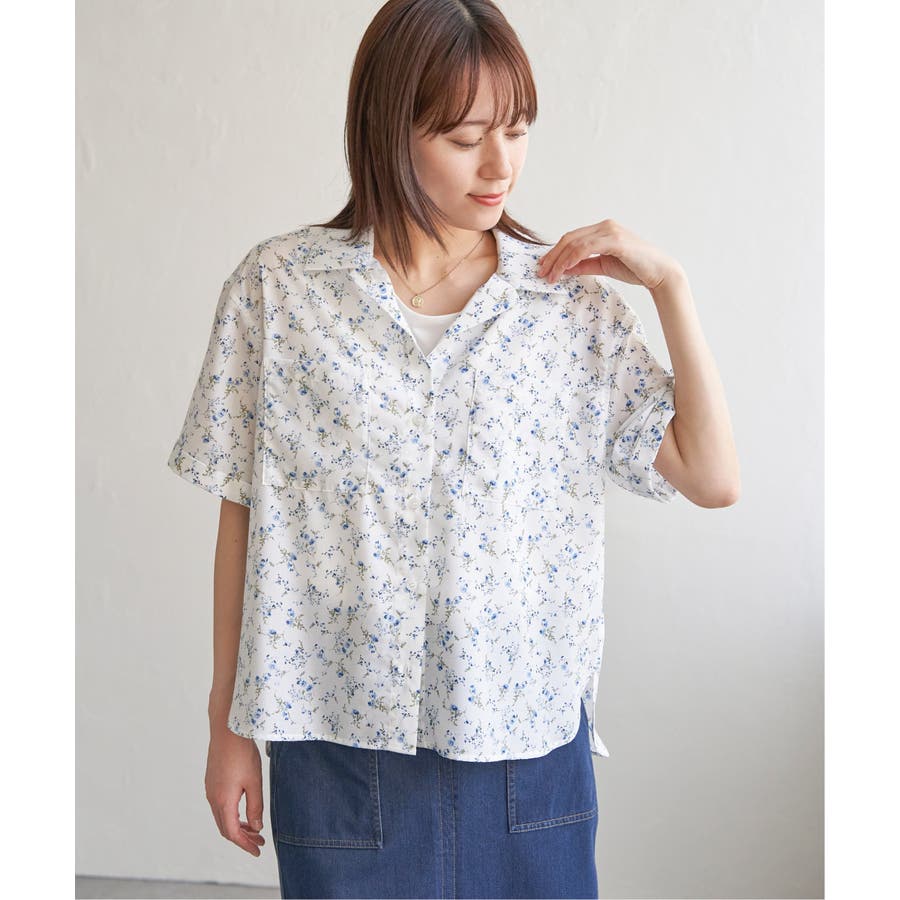 ボタニカルな花柄と無地の2パターンから選べる、ポケット付きのオープンカラーシャツ。