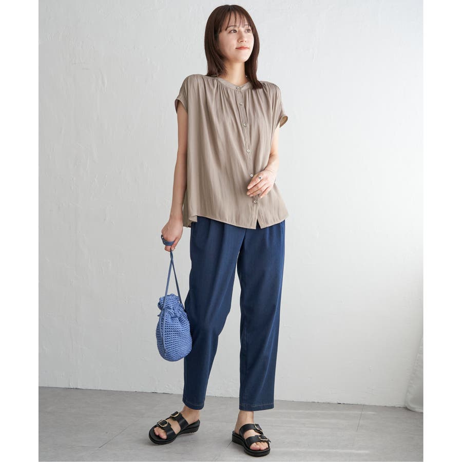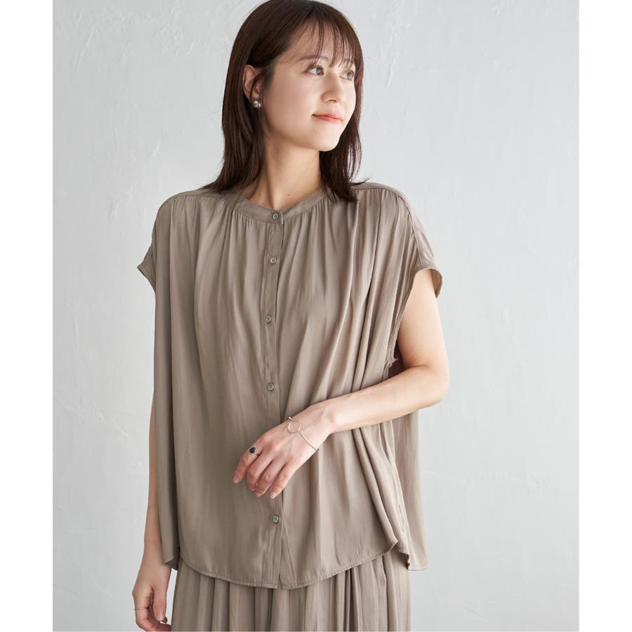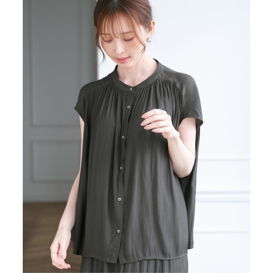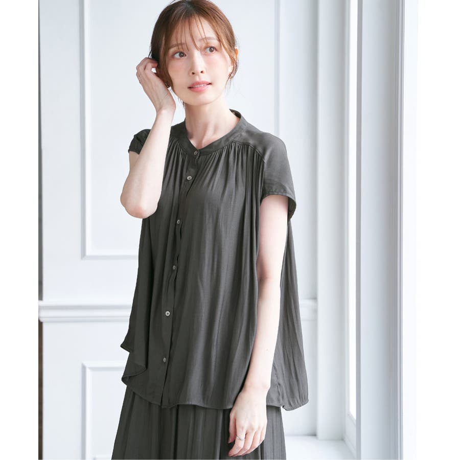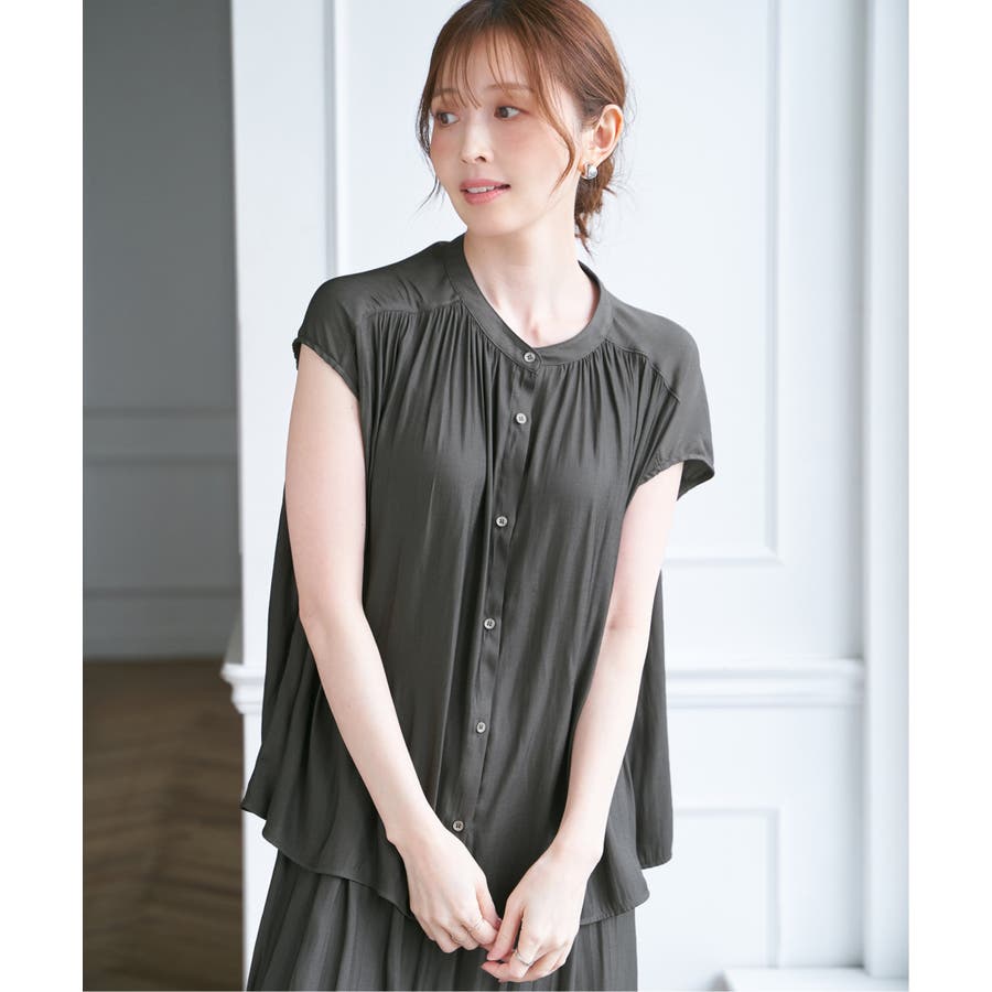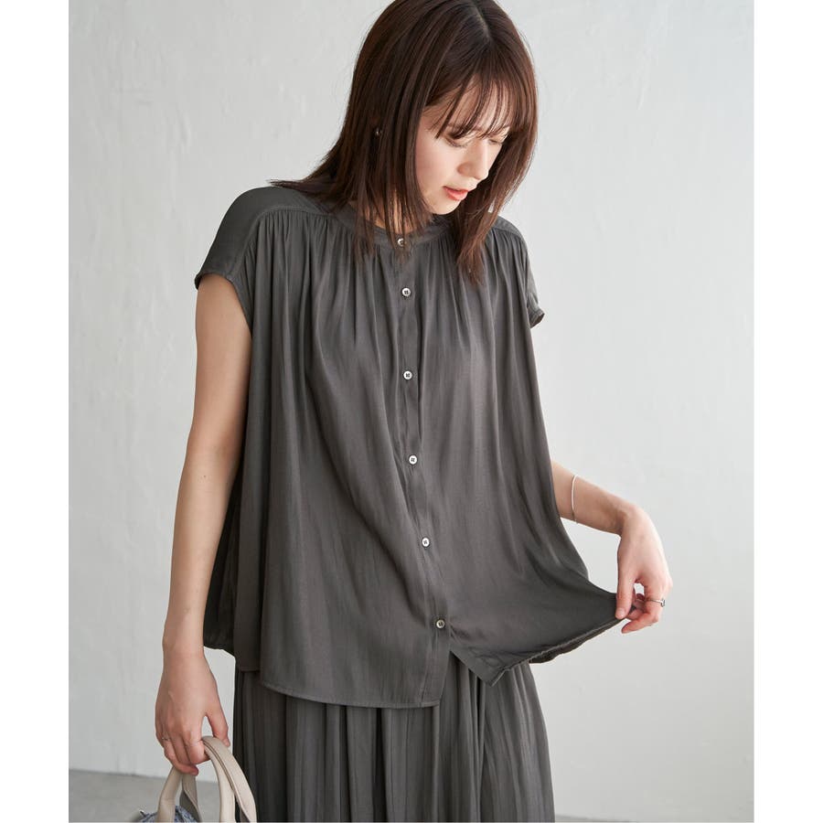 繊細なギャザーが引き立てる、上品でしなやかな着映えが叶う一枚です。