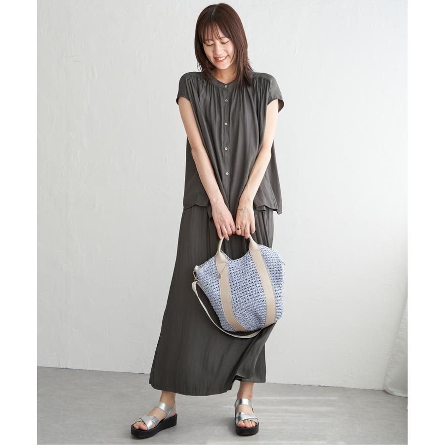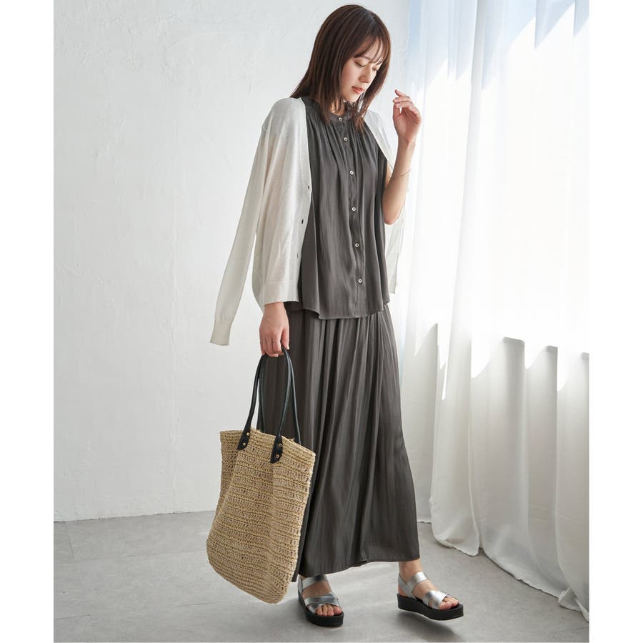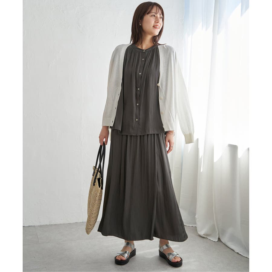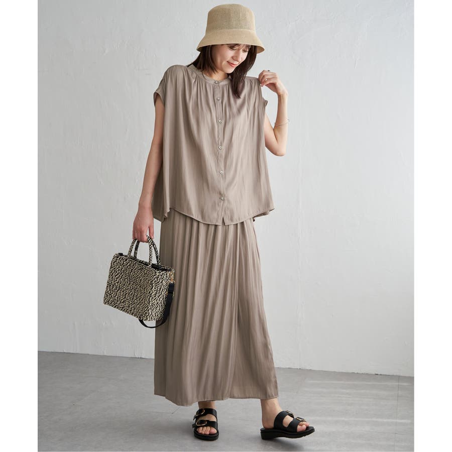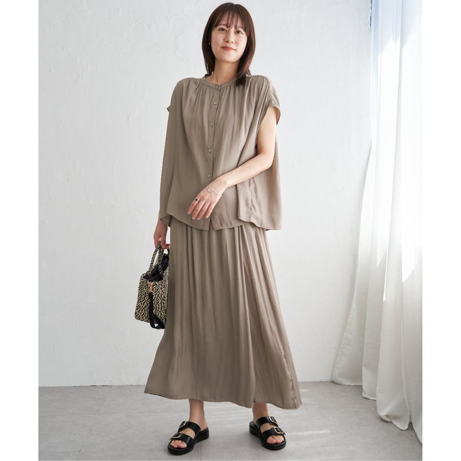 さらっと着るだけできれいめなシーンに活躍するブラウスは、同素材のスカートとセットアップで着用するとお仕事やお呼ばれにも着用できます。