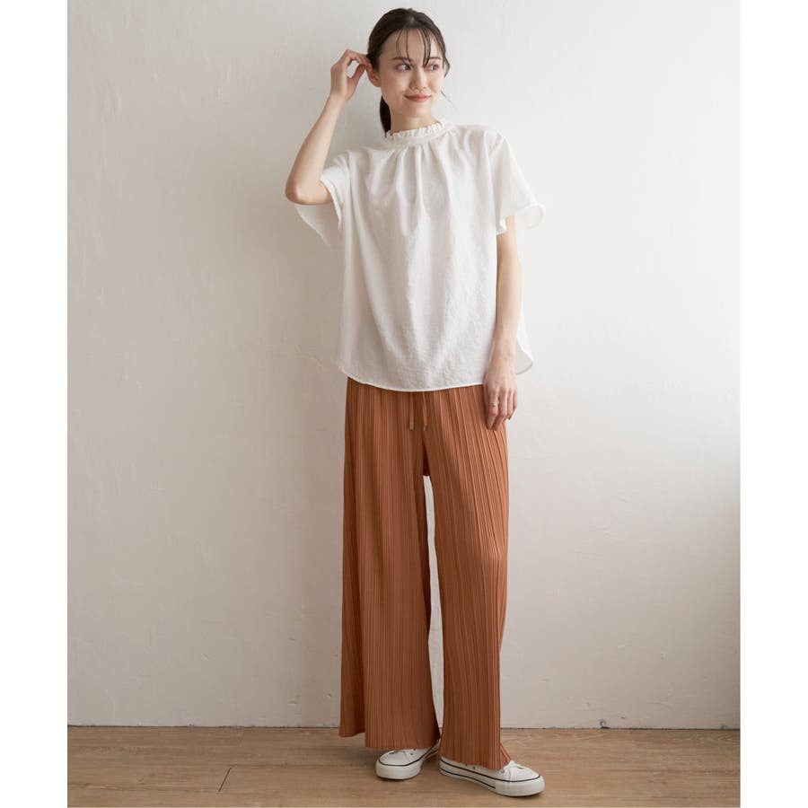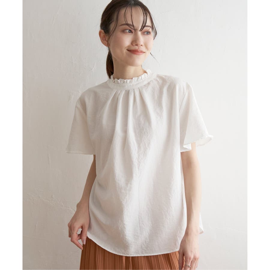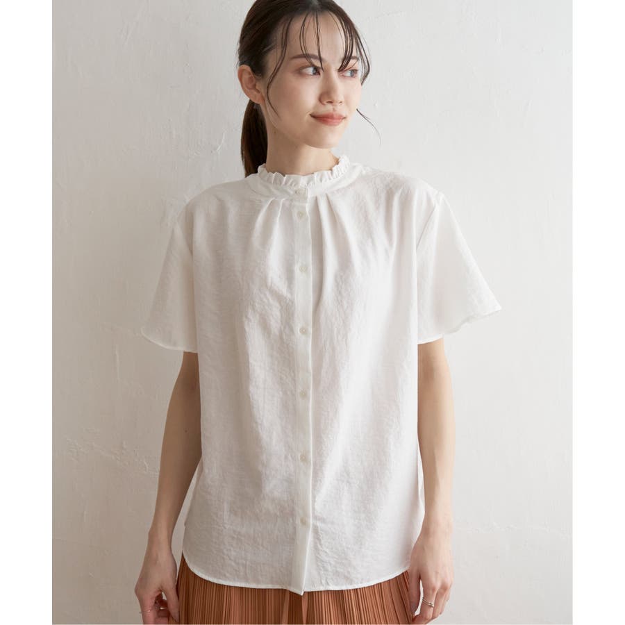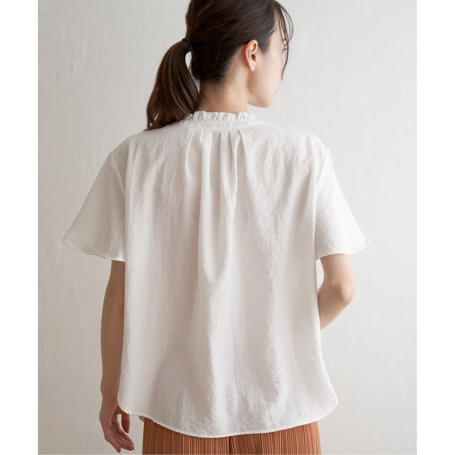 襟フリル2WAY半袖ブラウス