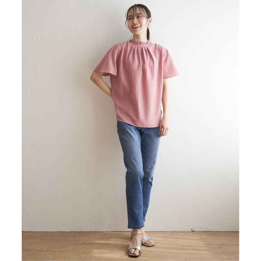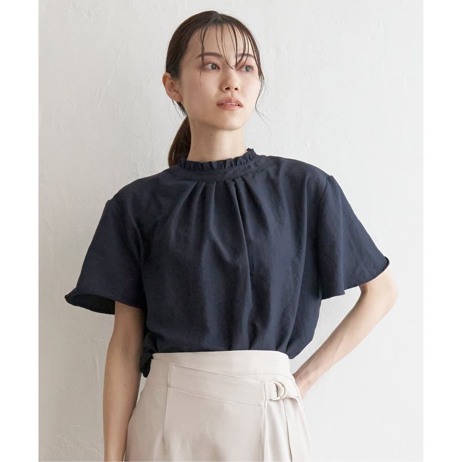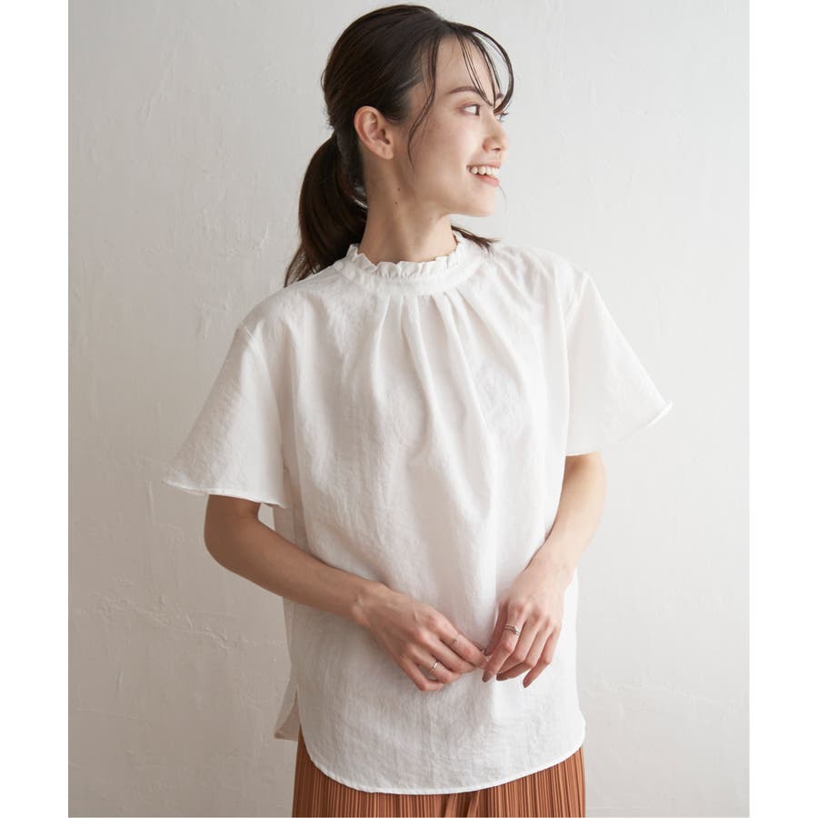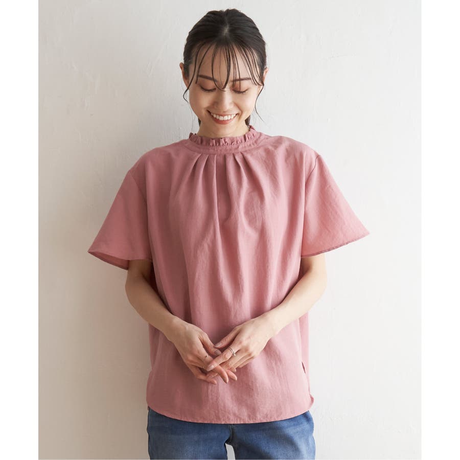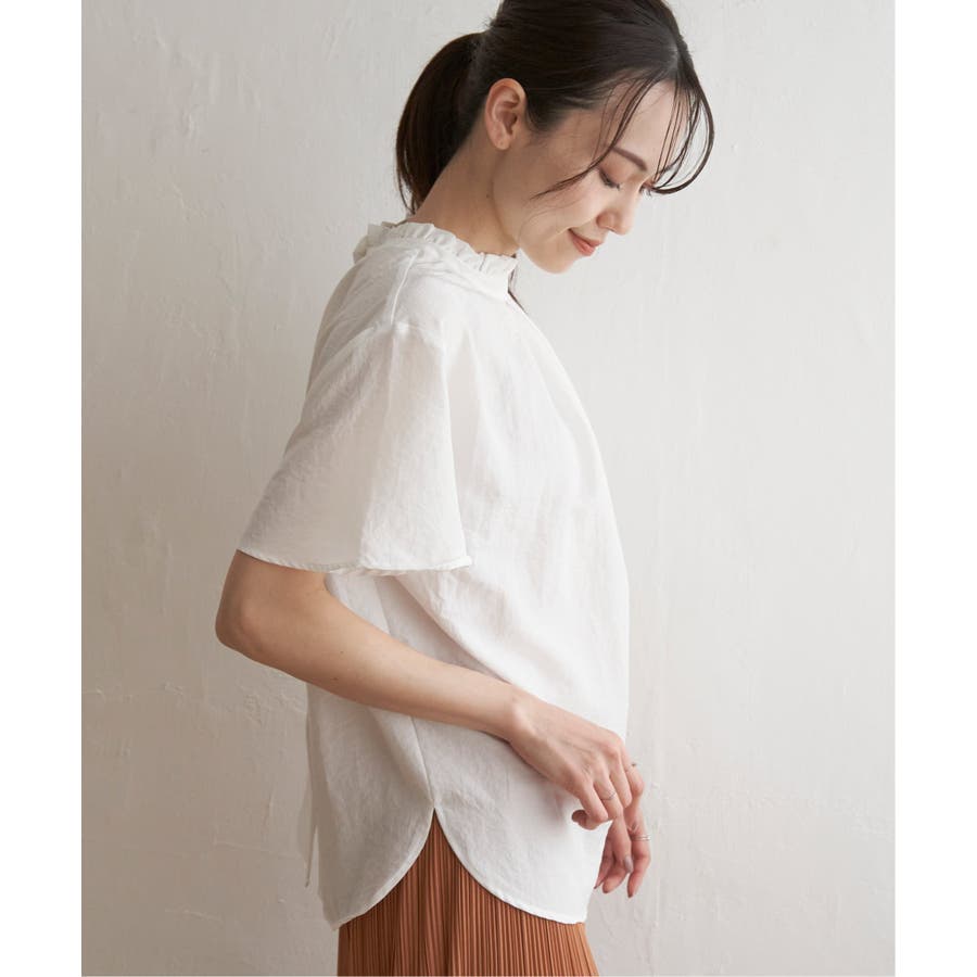 ikka 定番の襟フリルブラウスの半袖バージョン。