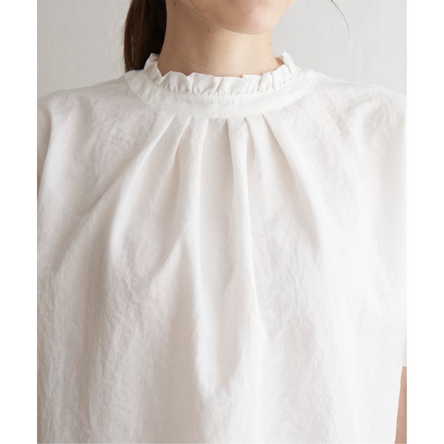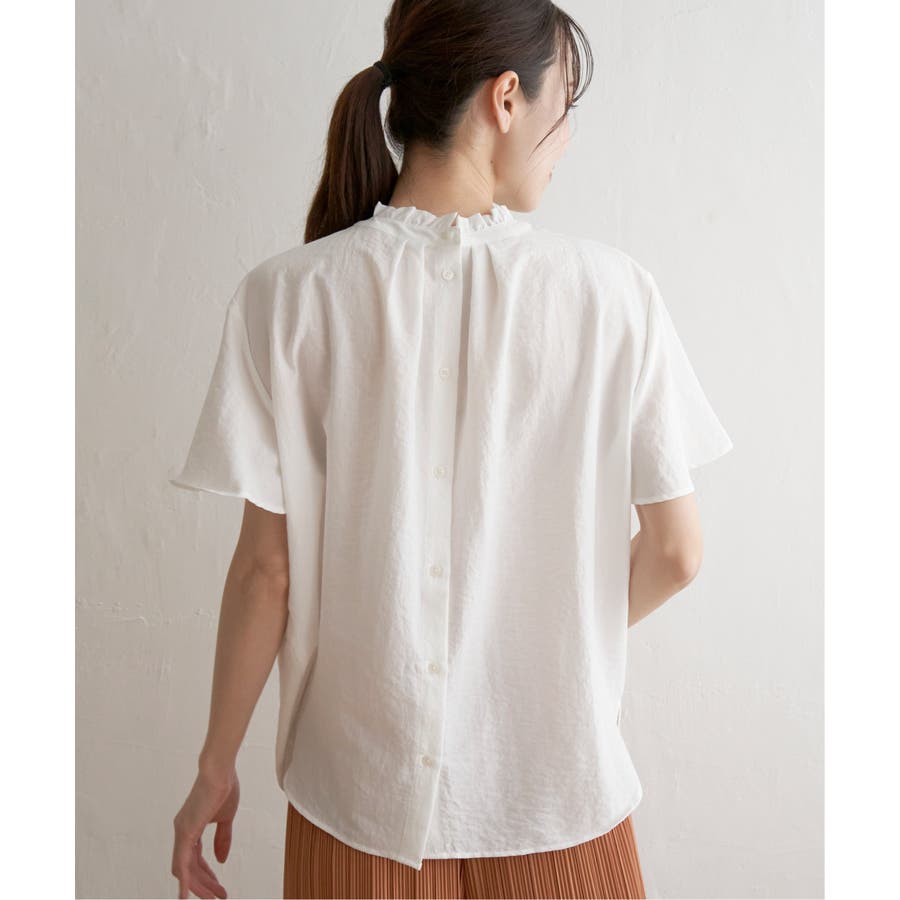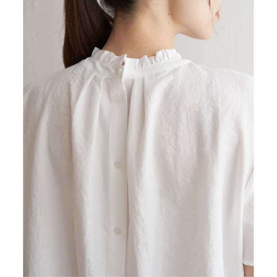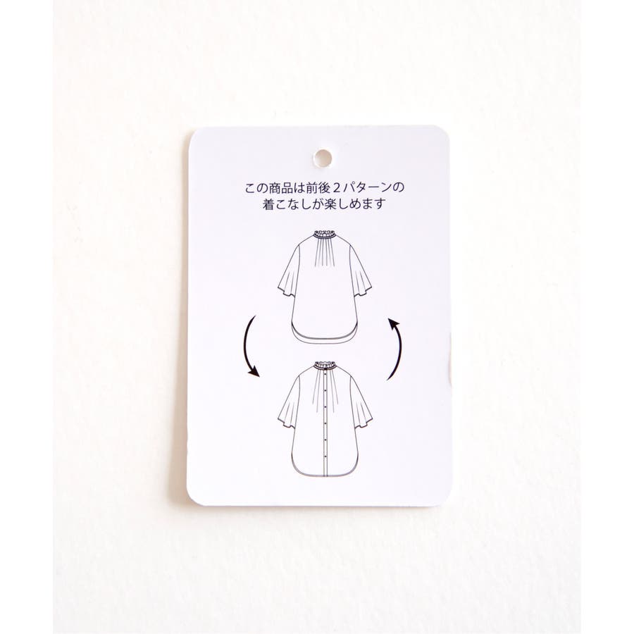 前後どちらを前にしても着用できる襟フリル付きのブラウス。