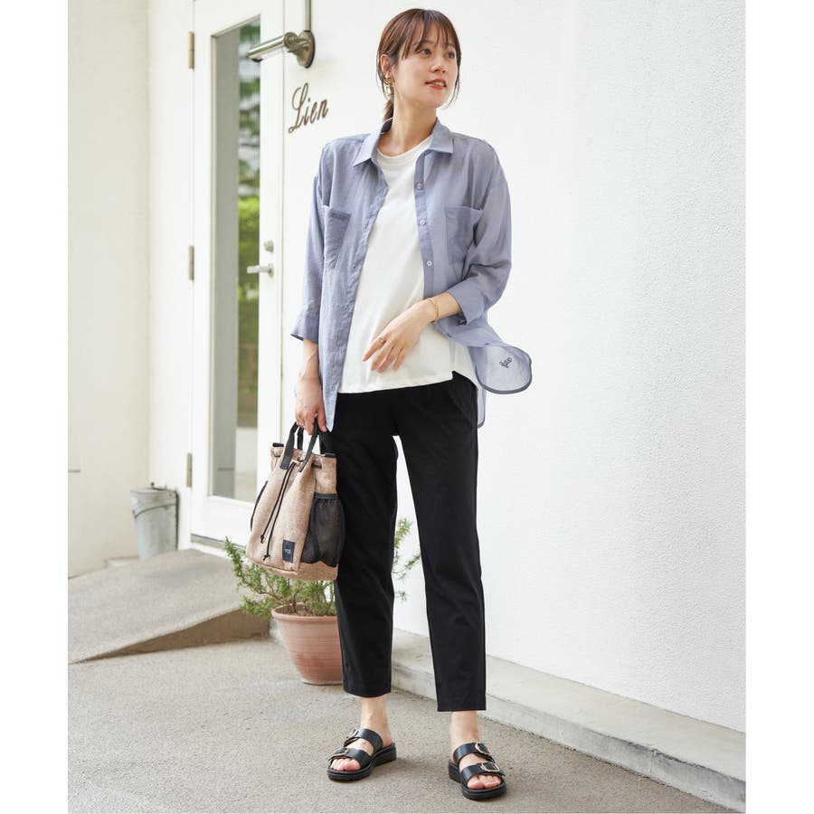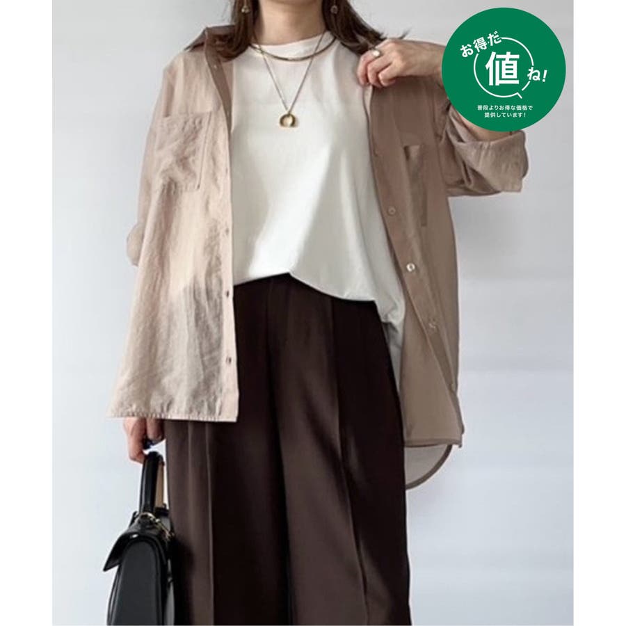 ハリ感のあるほどよいシアー素材のシャツと、肌触りのいい天竺カットソーのアンサンブルです。