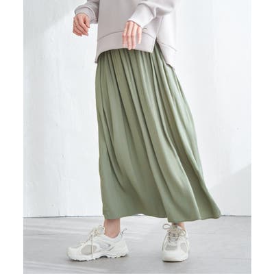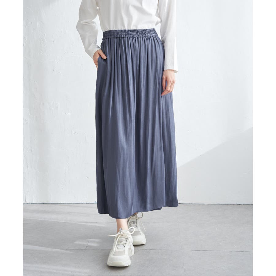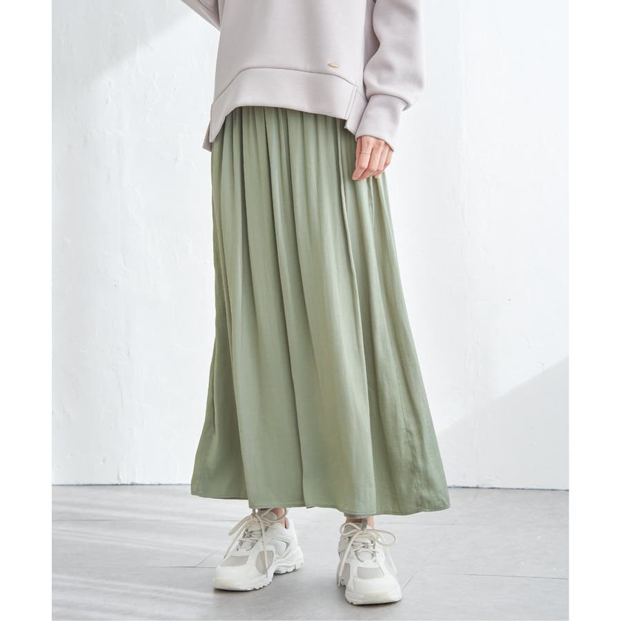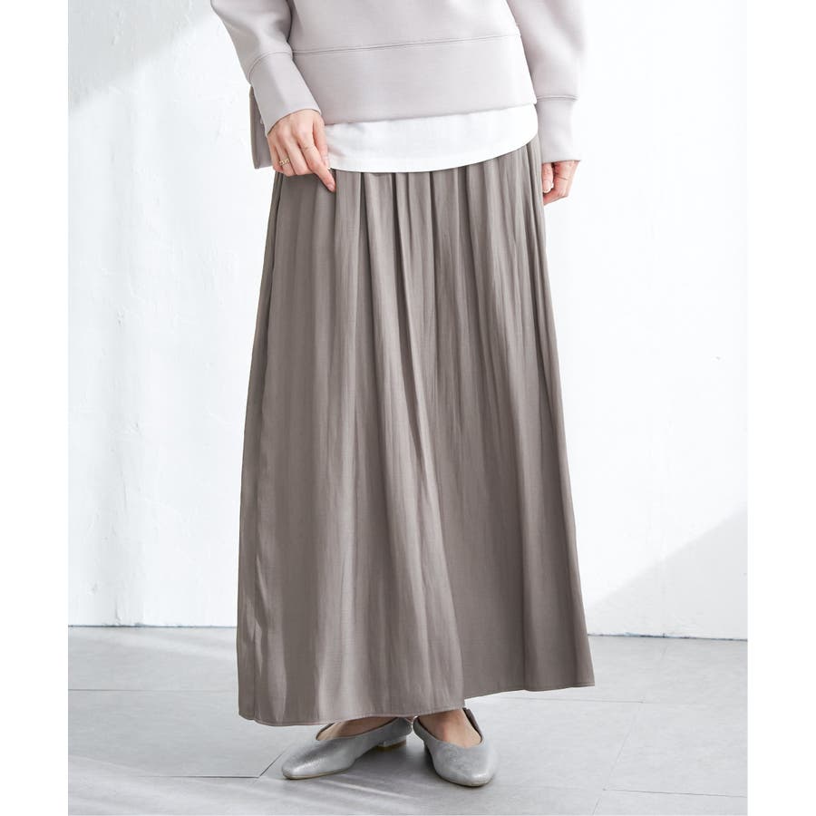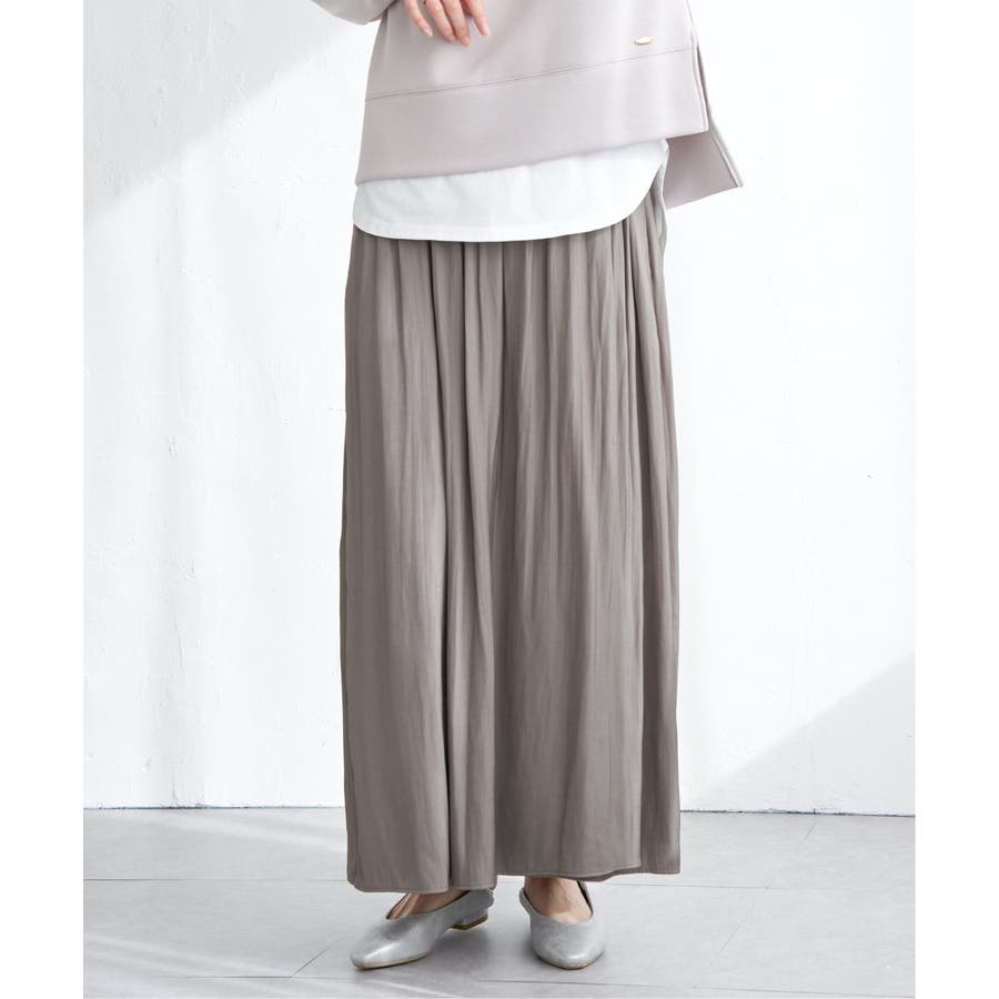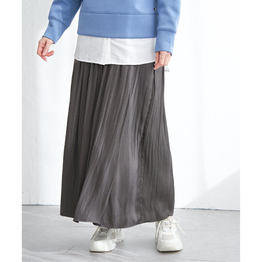 ・スカート見えと、きれいめな素材感が上品に演出