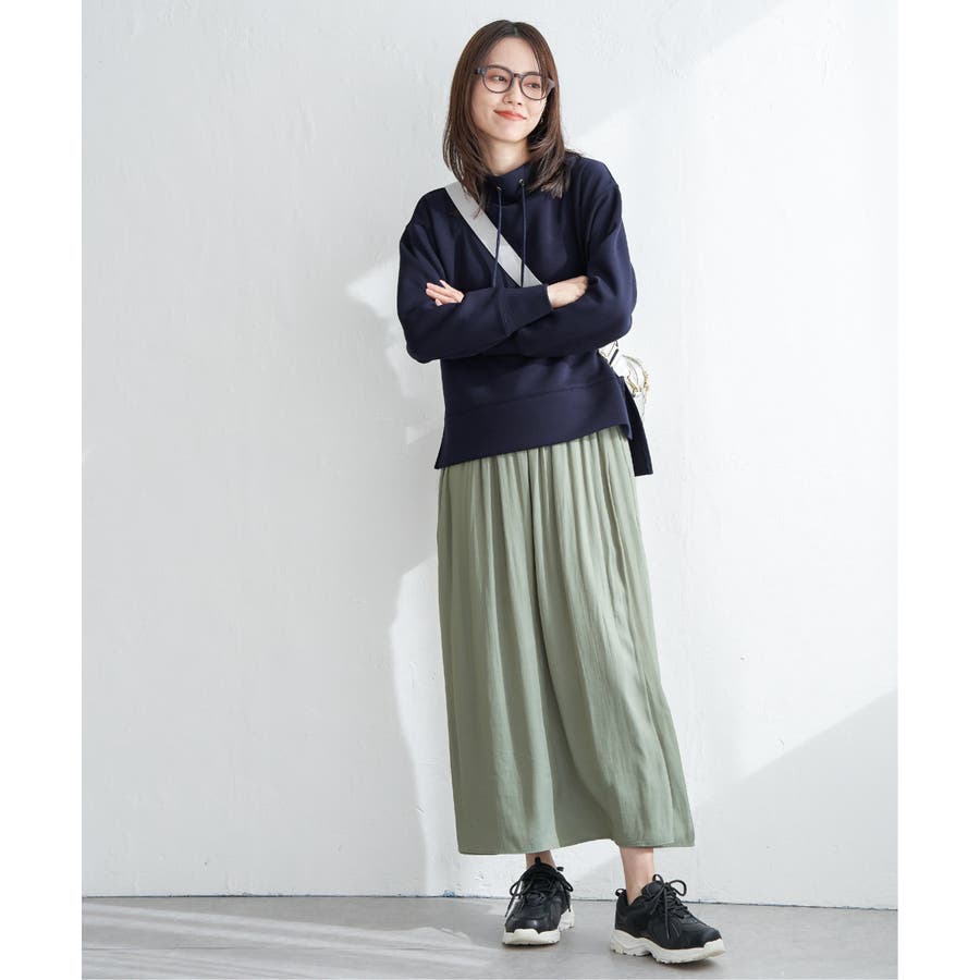 パーカーやスウェットと合わせてカジュアルスダウンしたり、シンプルなブラウスをインして、トップスをコンパクトにまとめればスカーチョのボリューム感がより引き立ちます。
