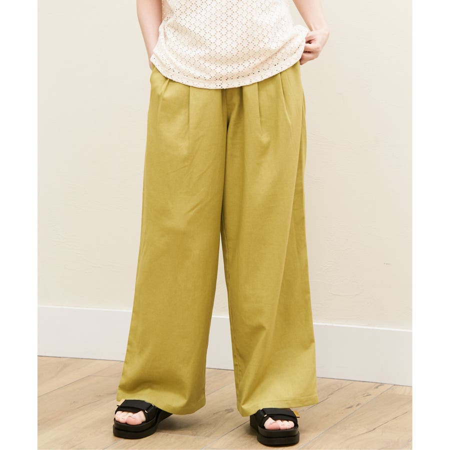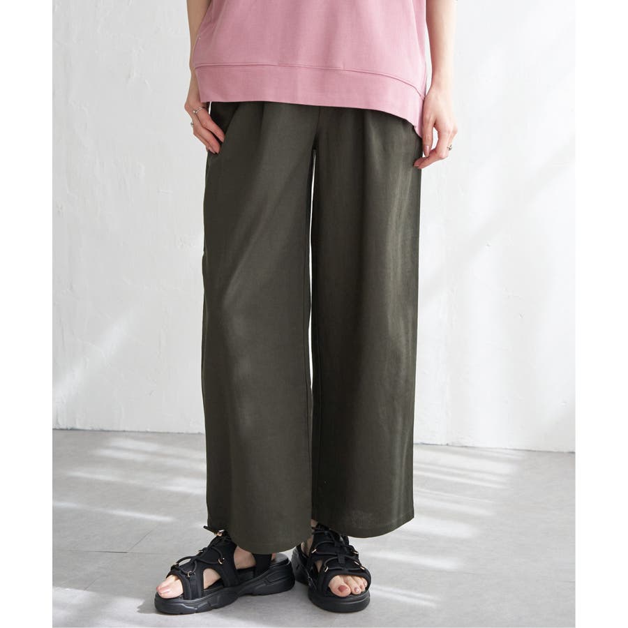 麻混素材を使用したイージーパンツ。