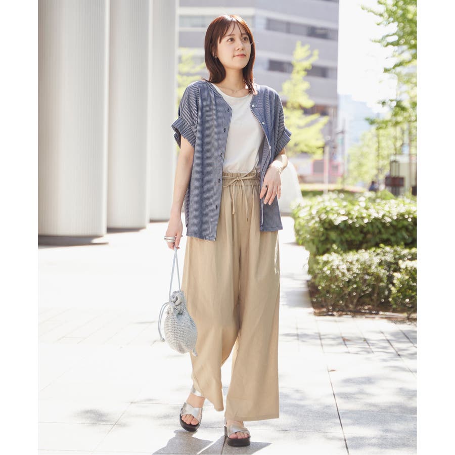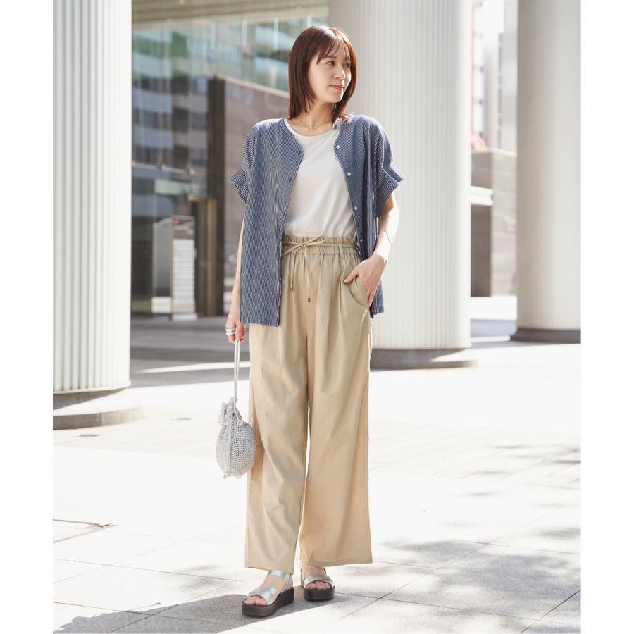 麻混ベルト付きイージーパンツ