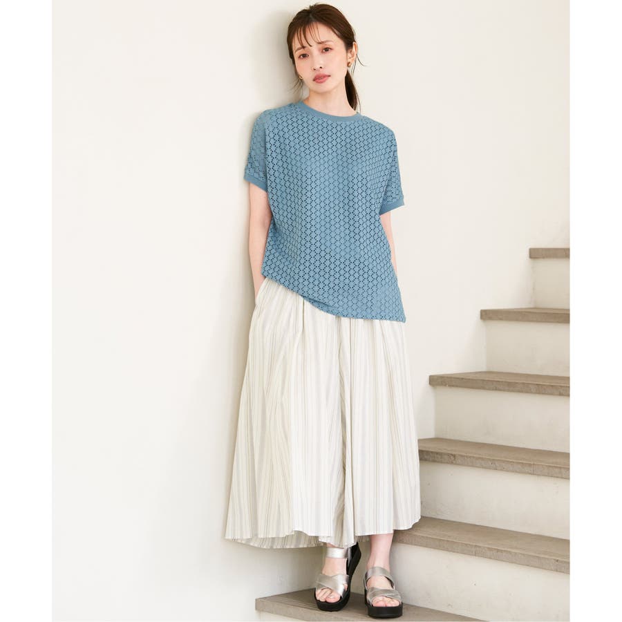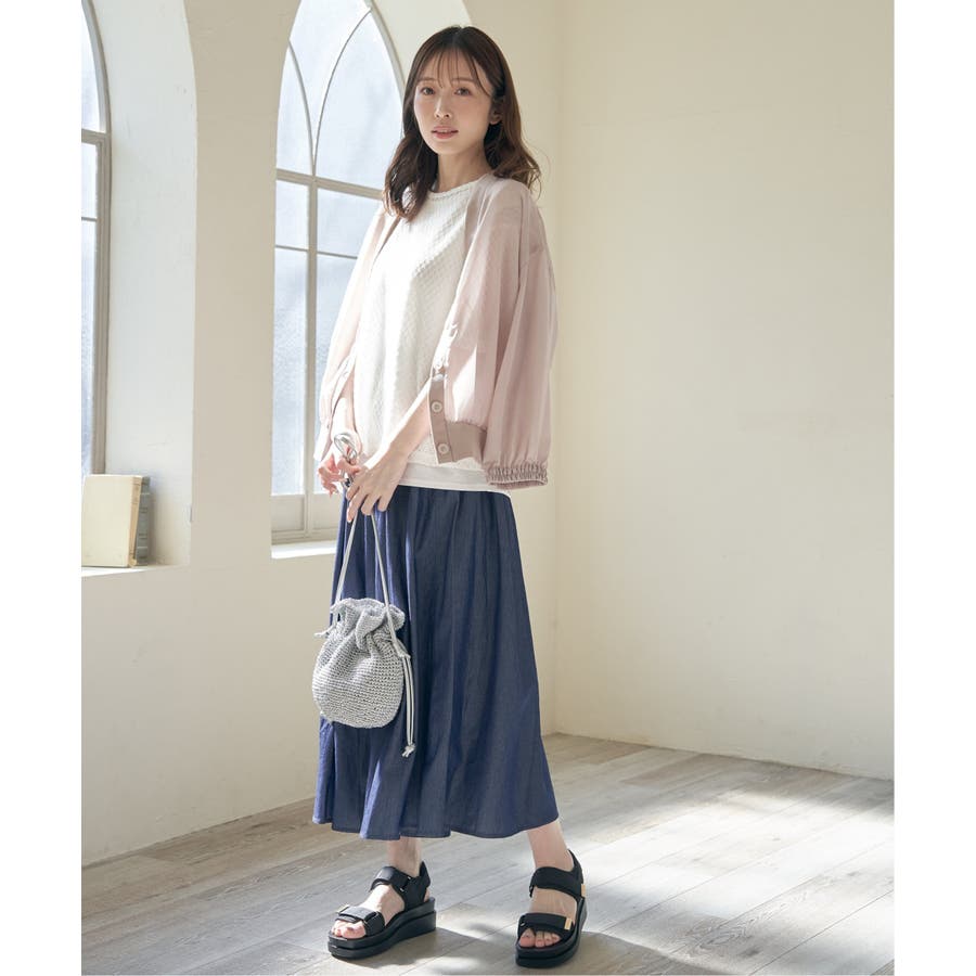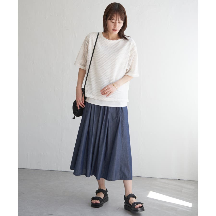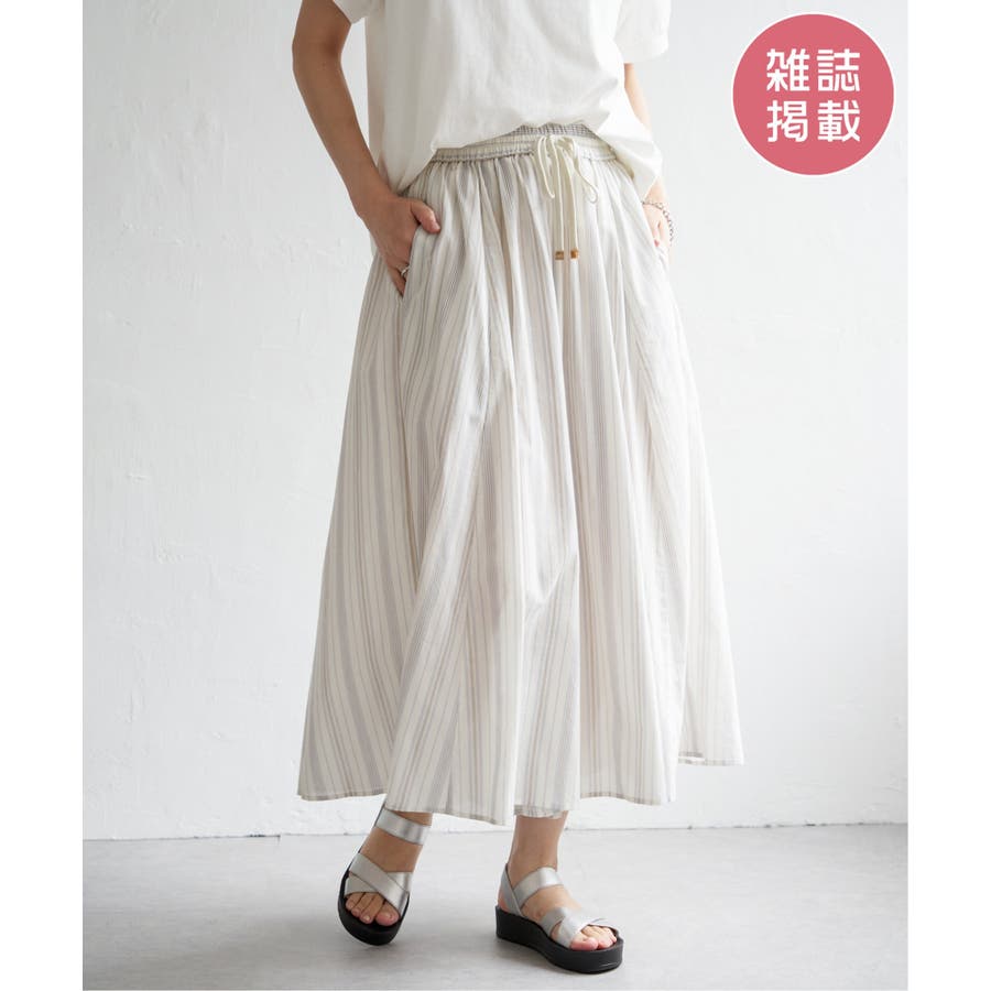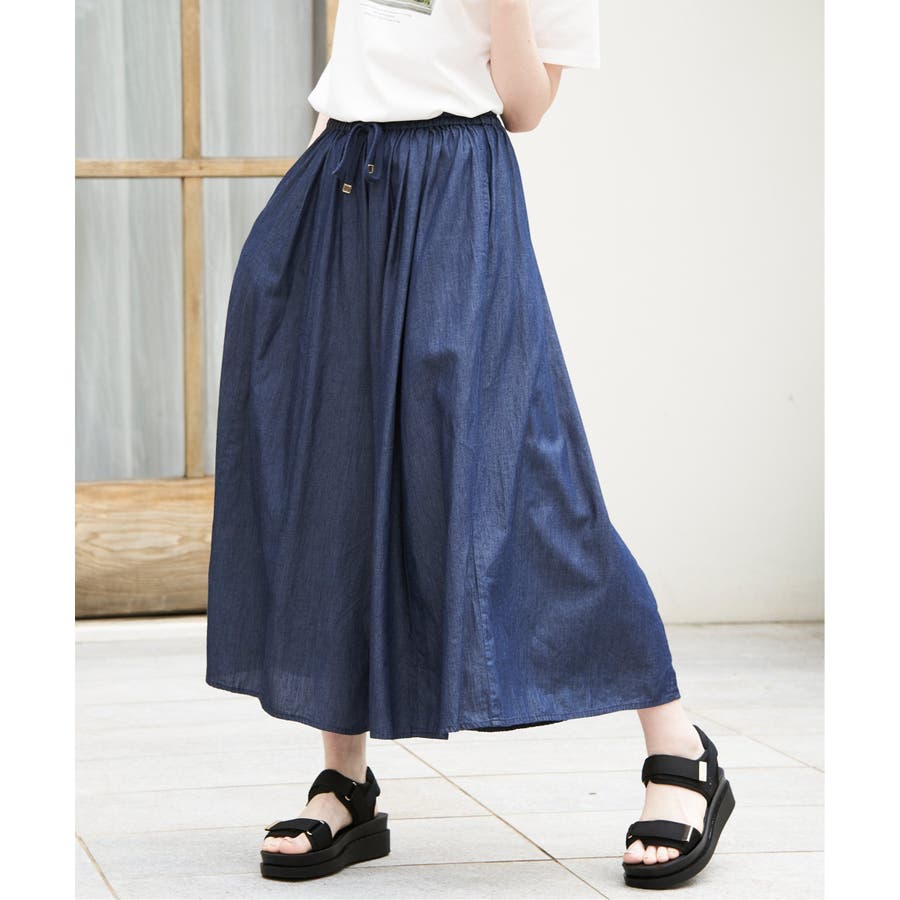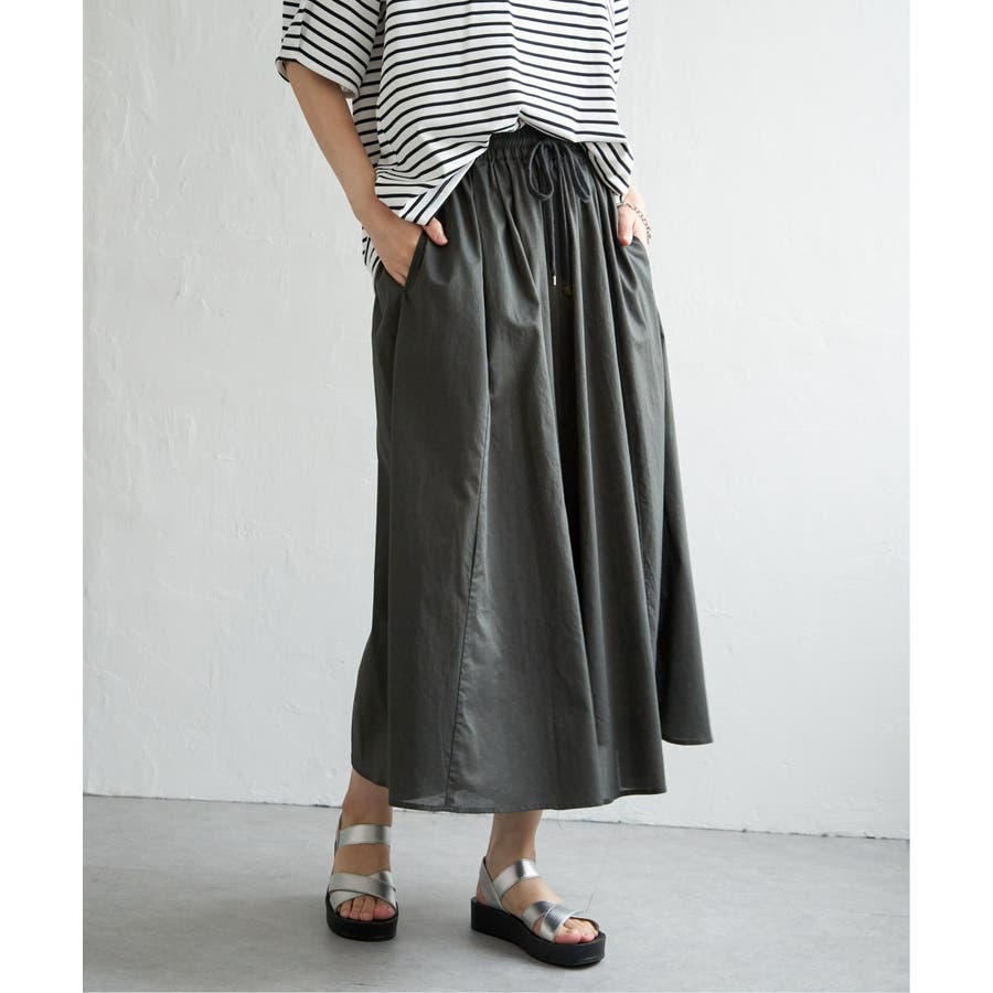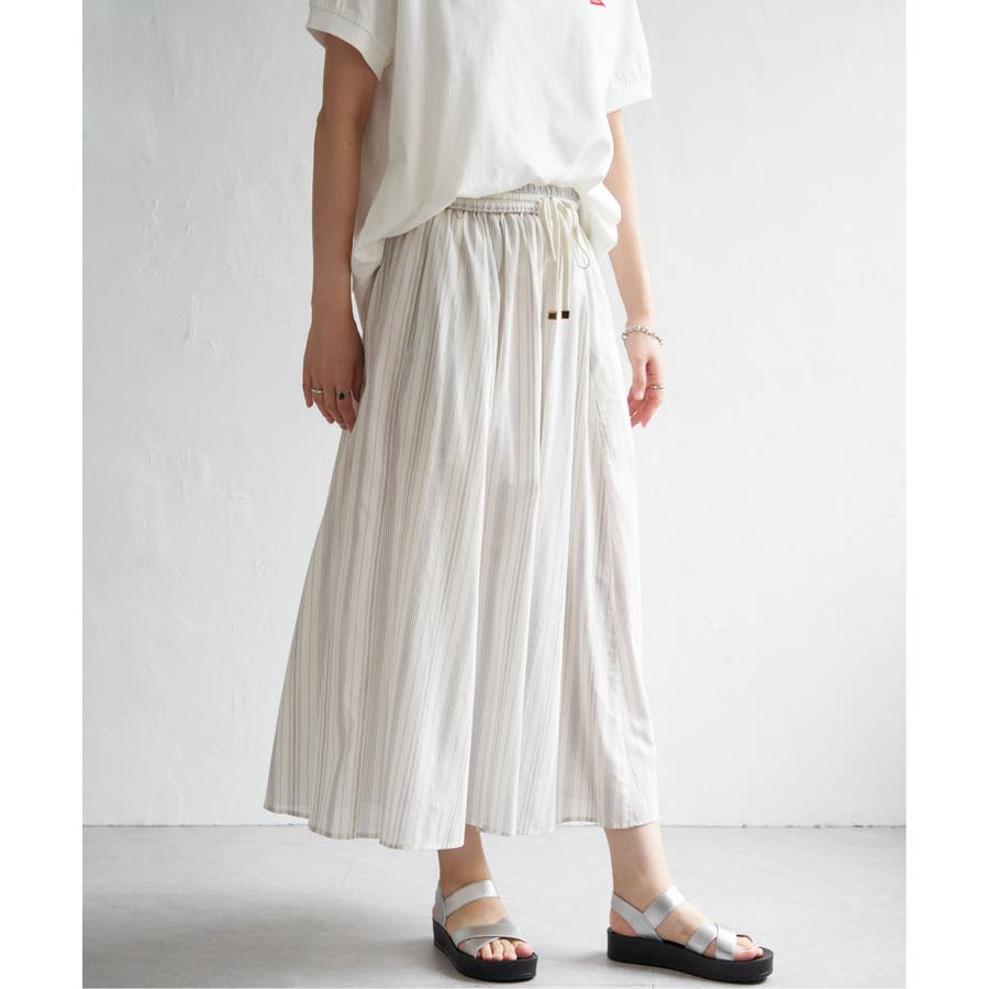 足さばきの良いミモレ丈で、総ゴムのウエストでお気軽にご着用いただけます。