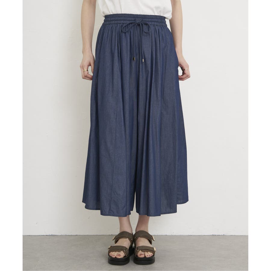 風になびくスカートのようなワイドパンツで軽やかに纏う素材感とシルエットが特徴的。