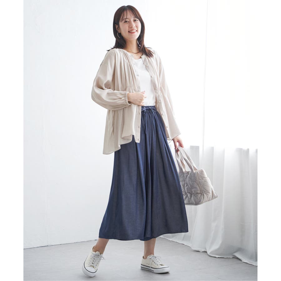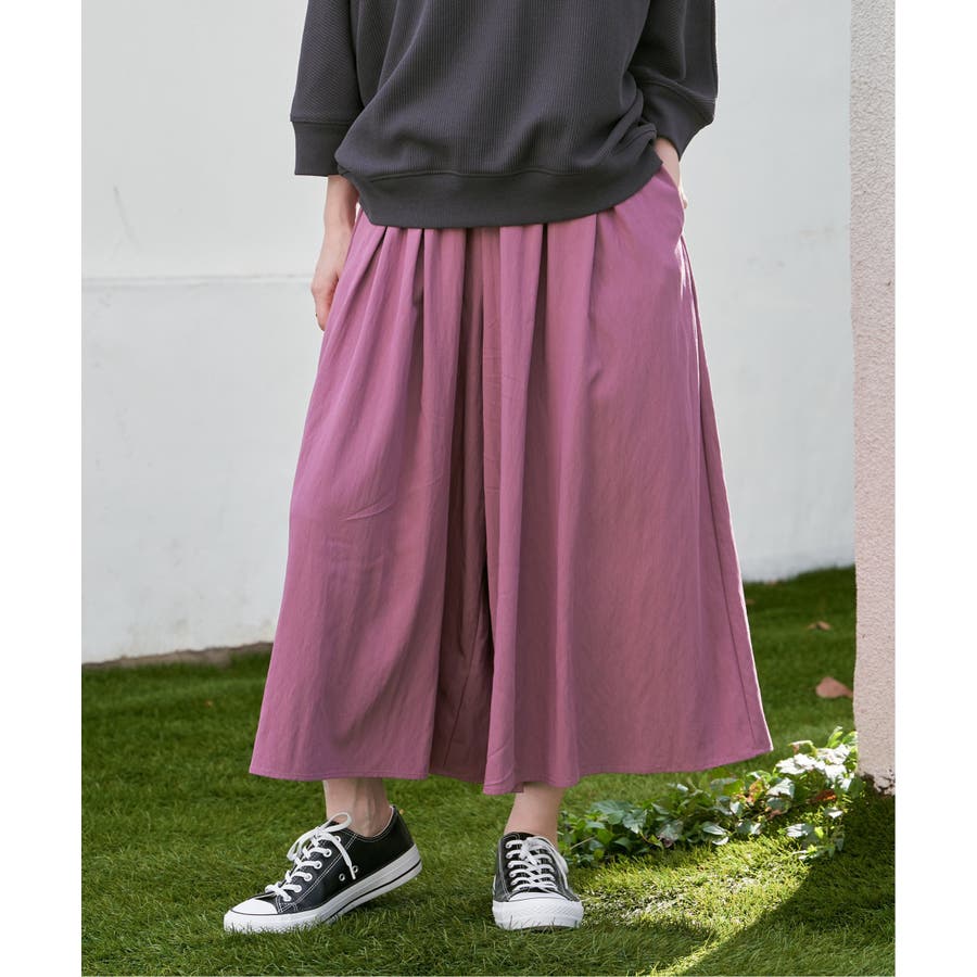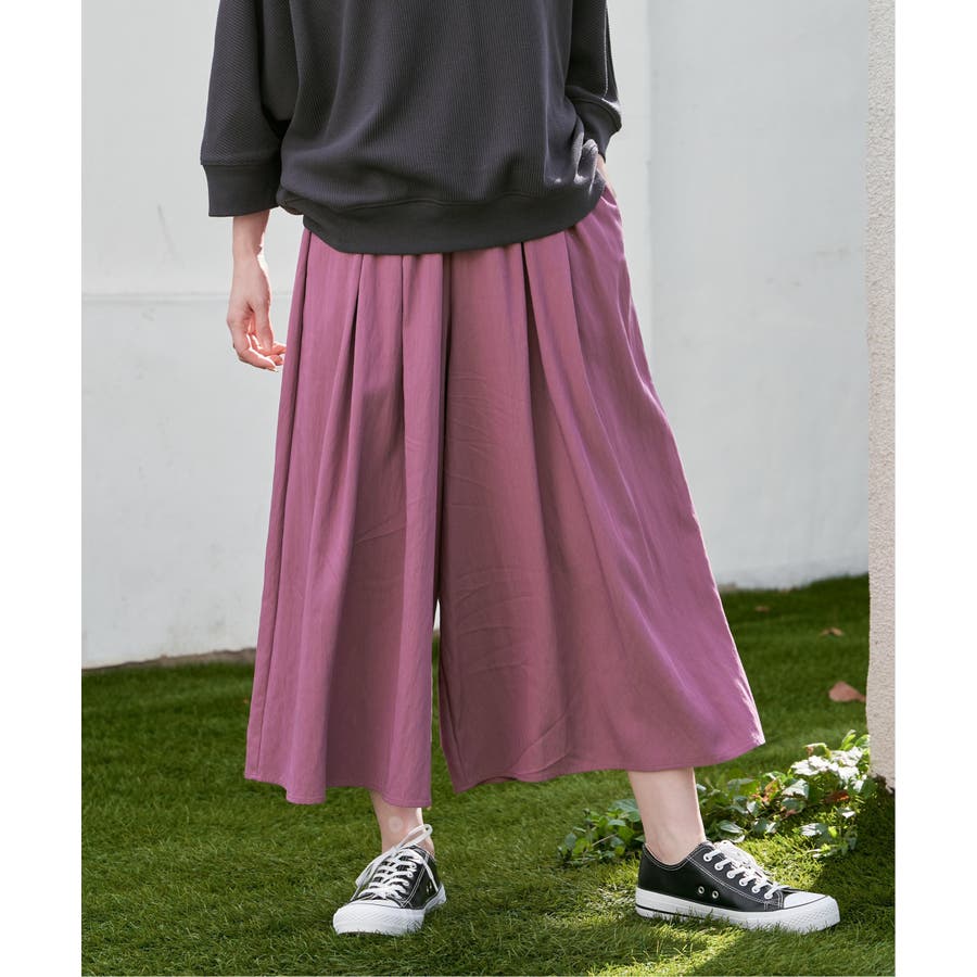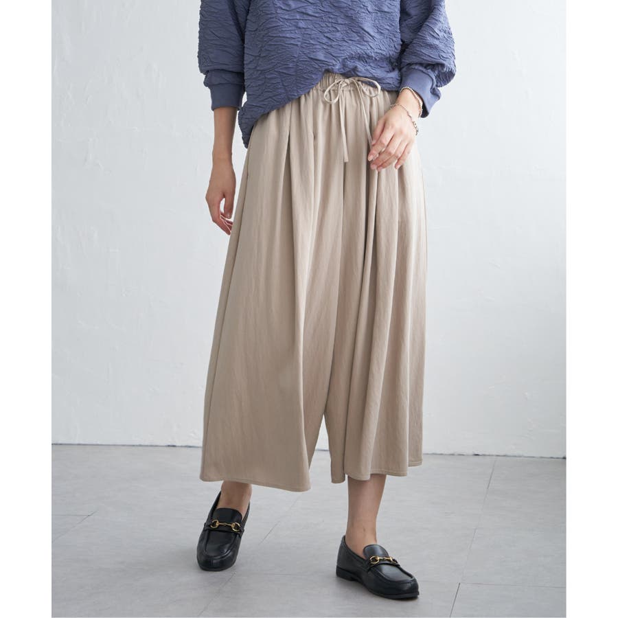 ウエストにタックとギャザーを寄せた、ボリュームのあるゆったりスカーチョです。