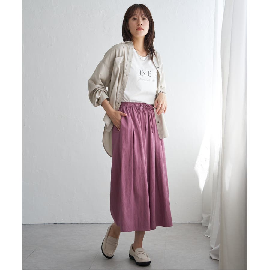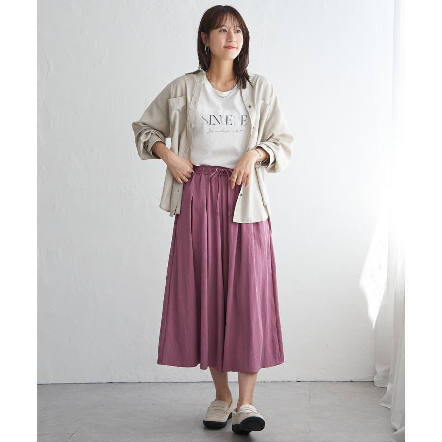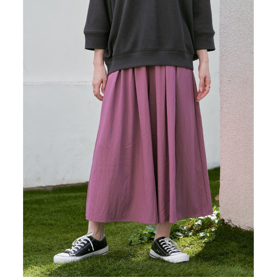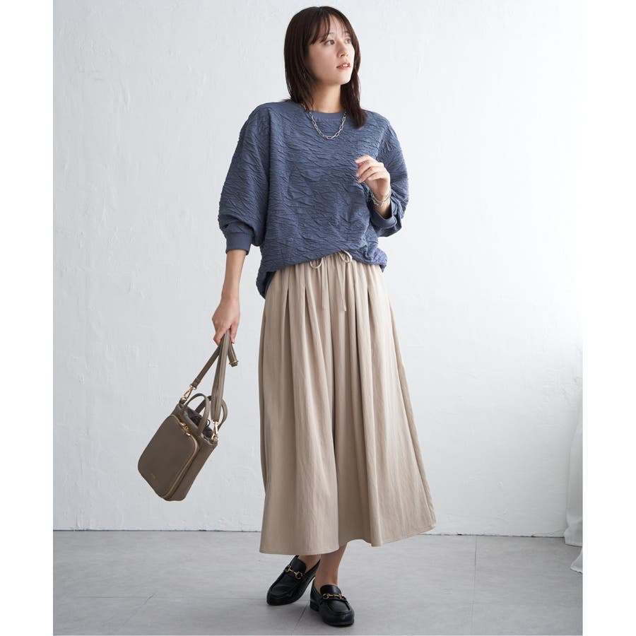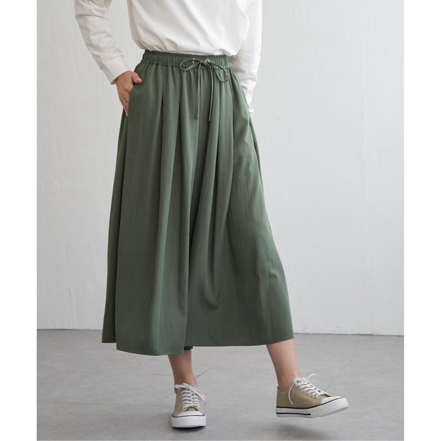 ウエストにタックとギャザーを寄せた、ボリュームのあるゆったりスカーチョです。
