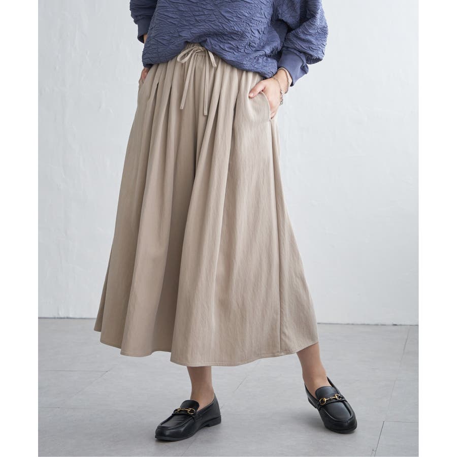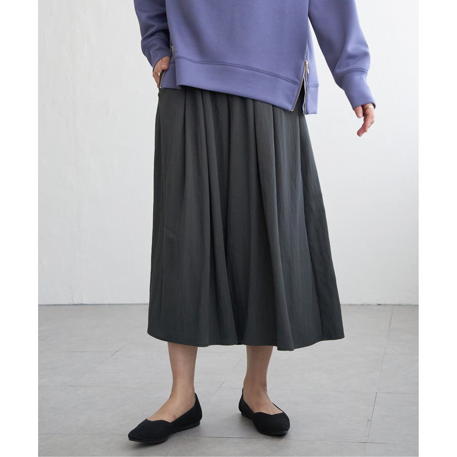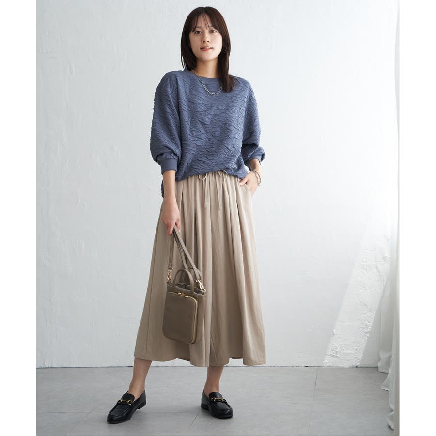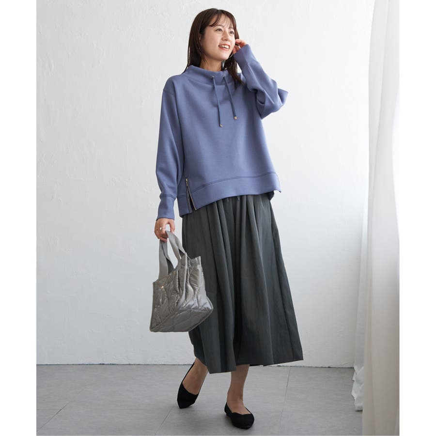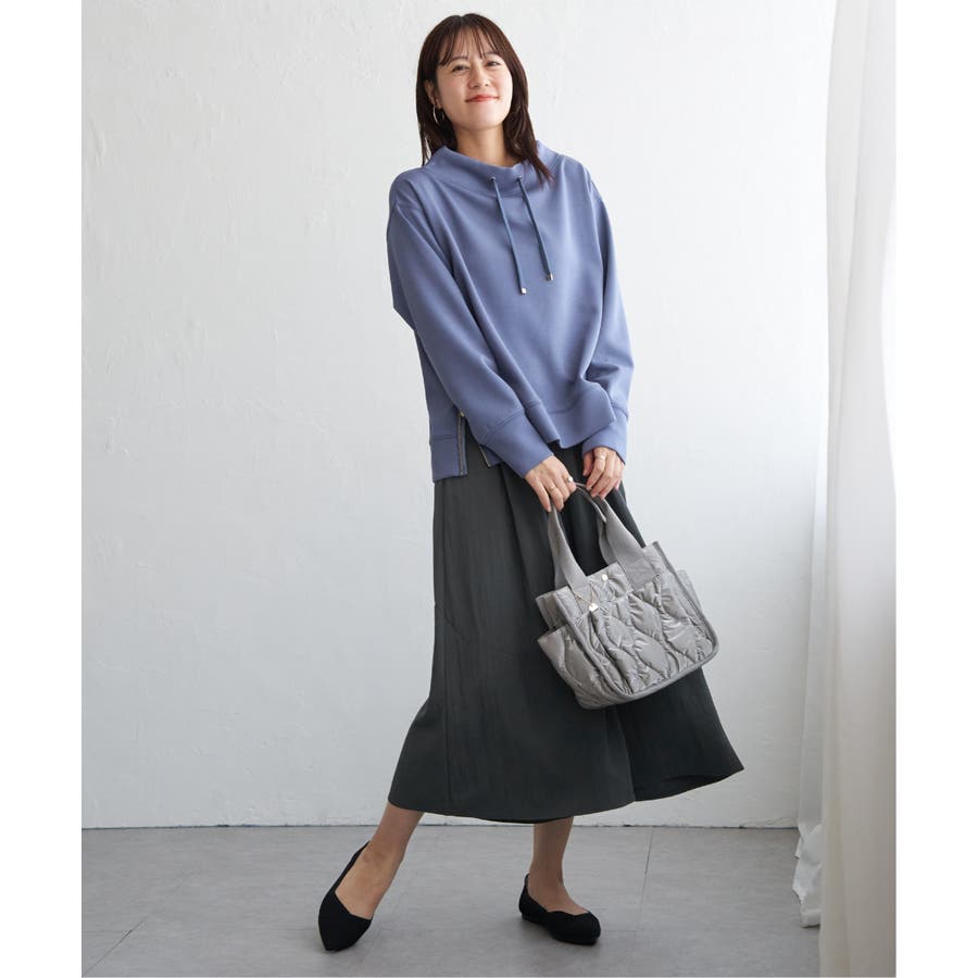 ・カジュアルな表面感で落ち感があり、ニットと好相性なツルりとした素材を使用