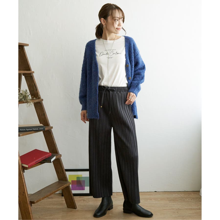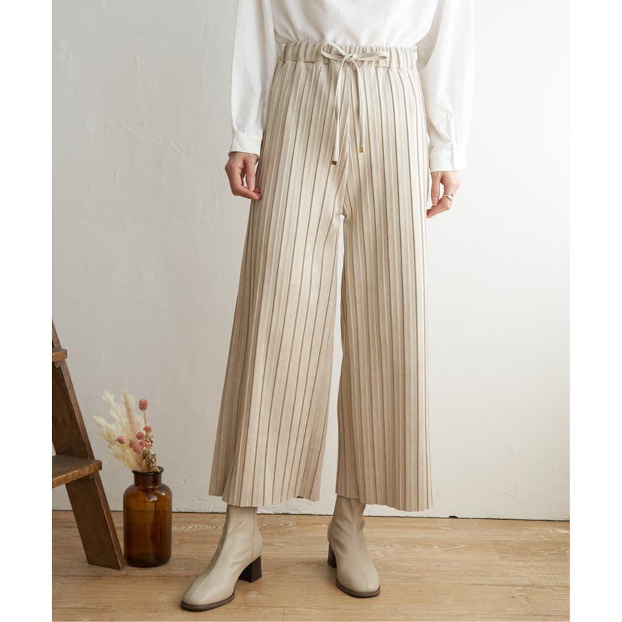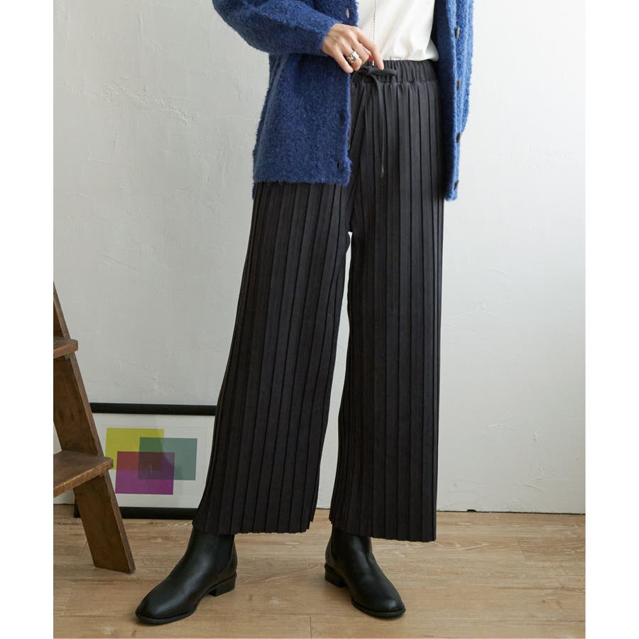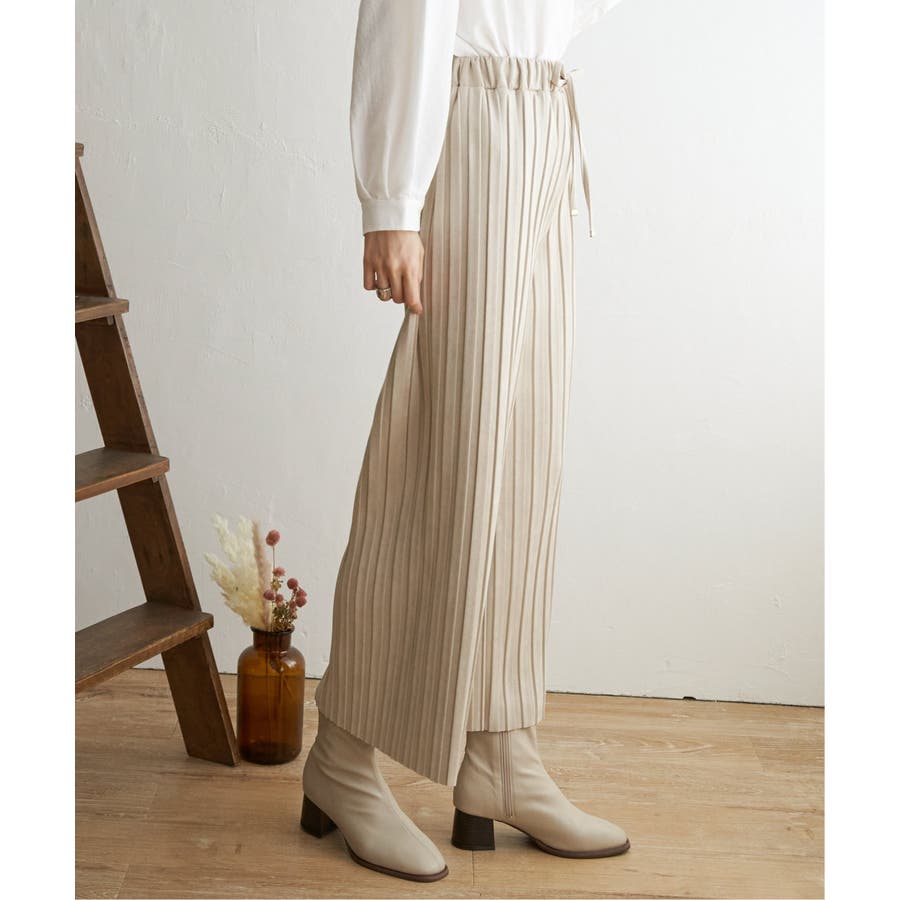 細すぎず太すぎないほどよい幅のプリーツで、足が細長く見えるワイドパンツです。