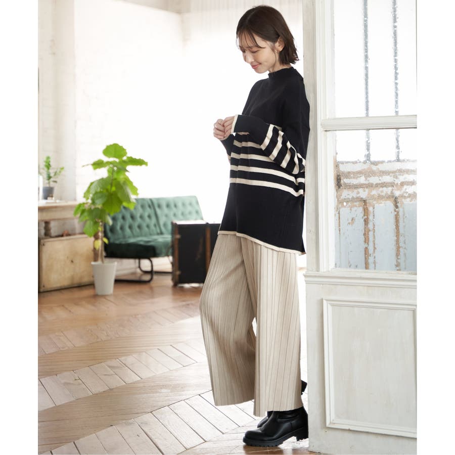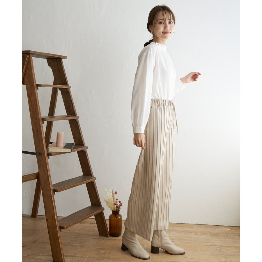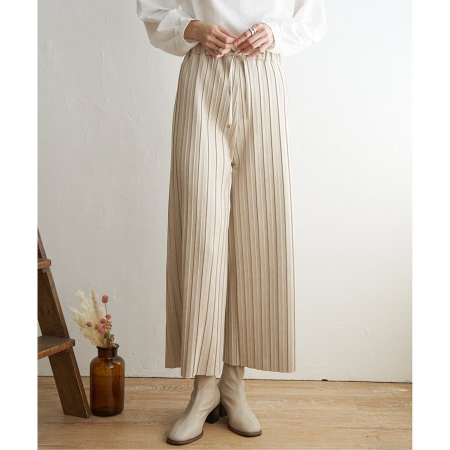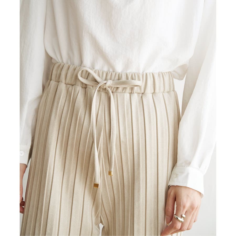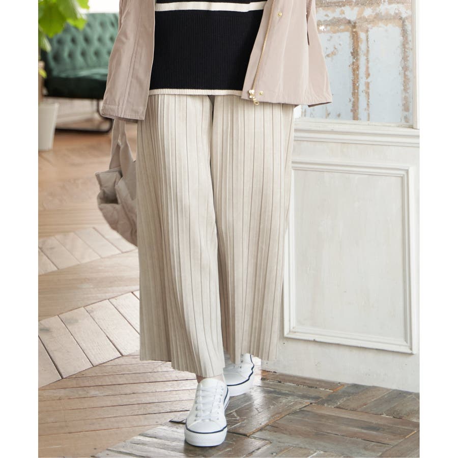 細すぎず太すぎないほどよい幅のプリーツで、足が細長く見えるワイドパンツです。