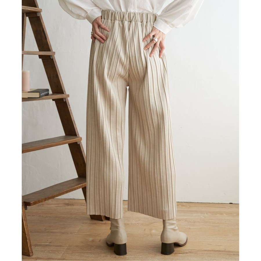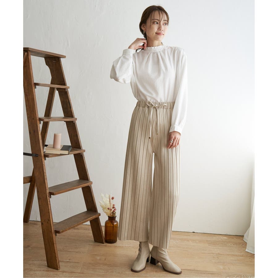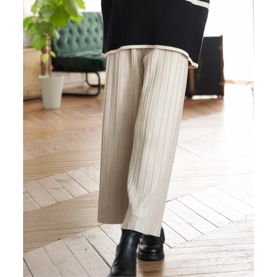 すっきりとした縦長ラインを演出してくれるプリーツワイドパンツ。