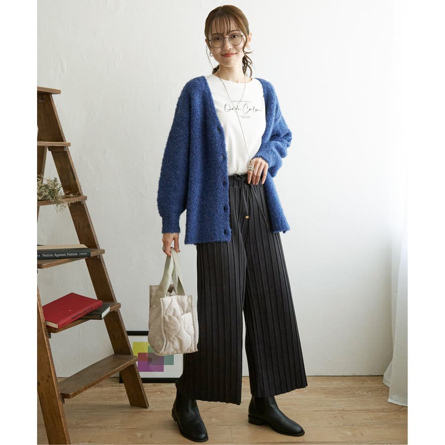 プリーツの表情がしっかり出ているため、シンプルなトップスでも物足りなさがなく、簡単に今っぽいコーディネートが完了します。
