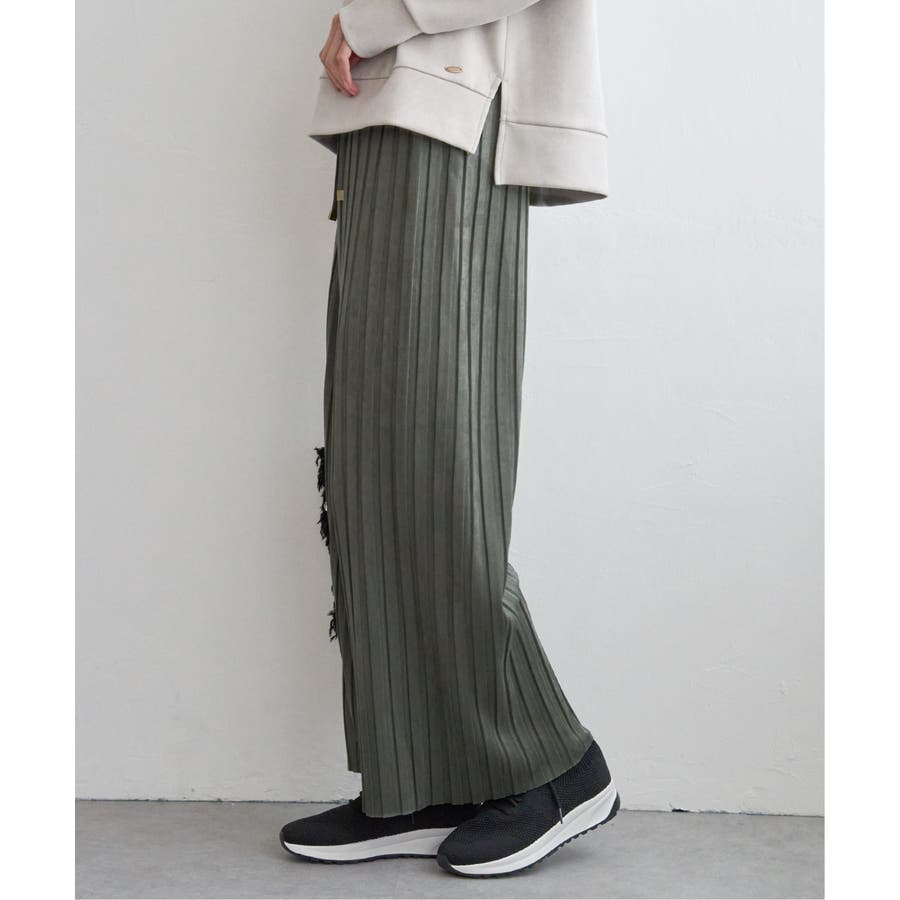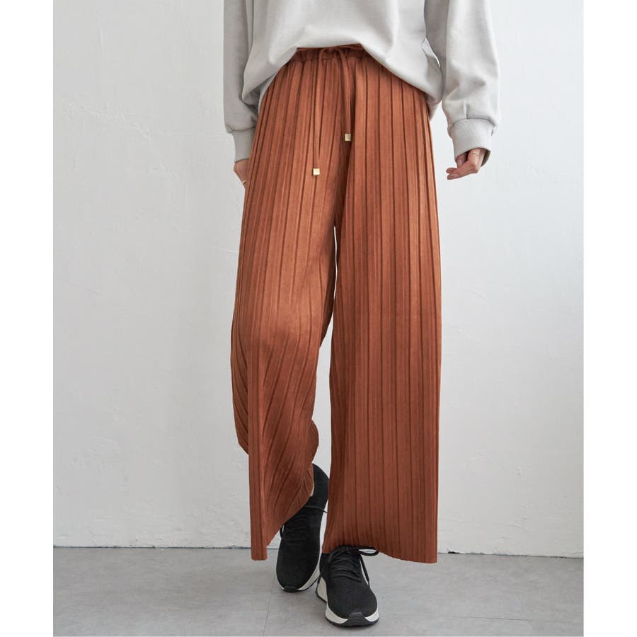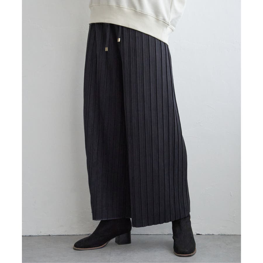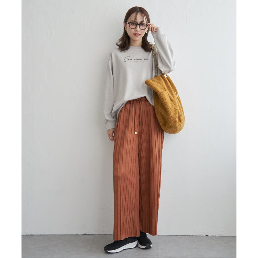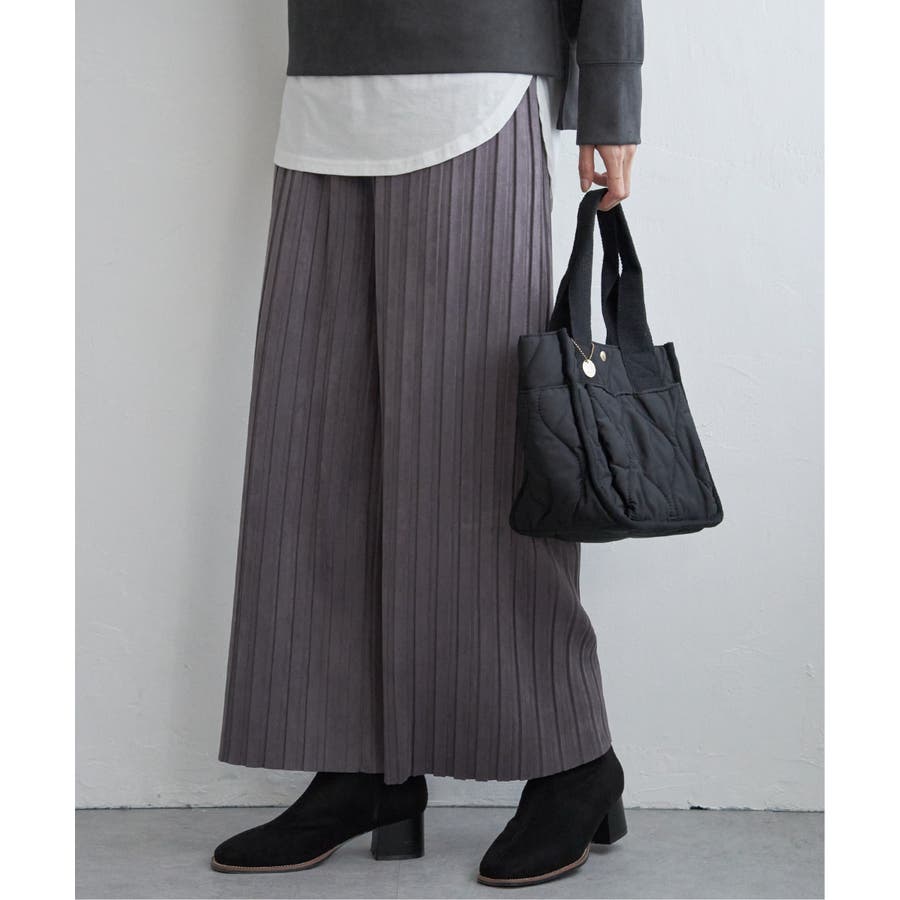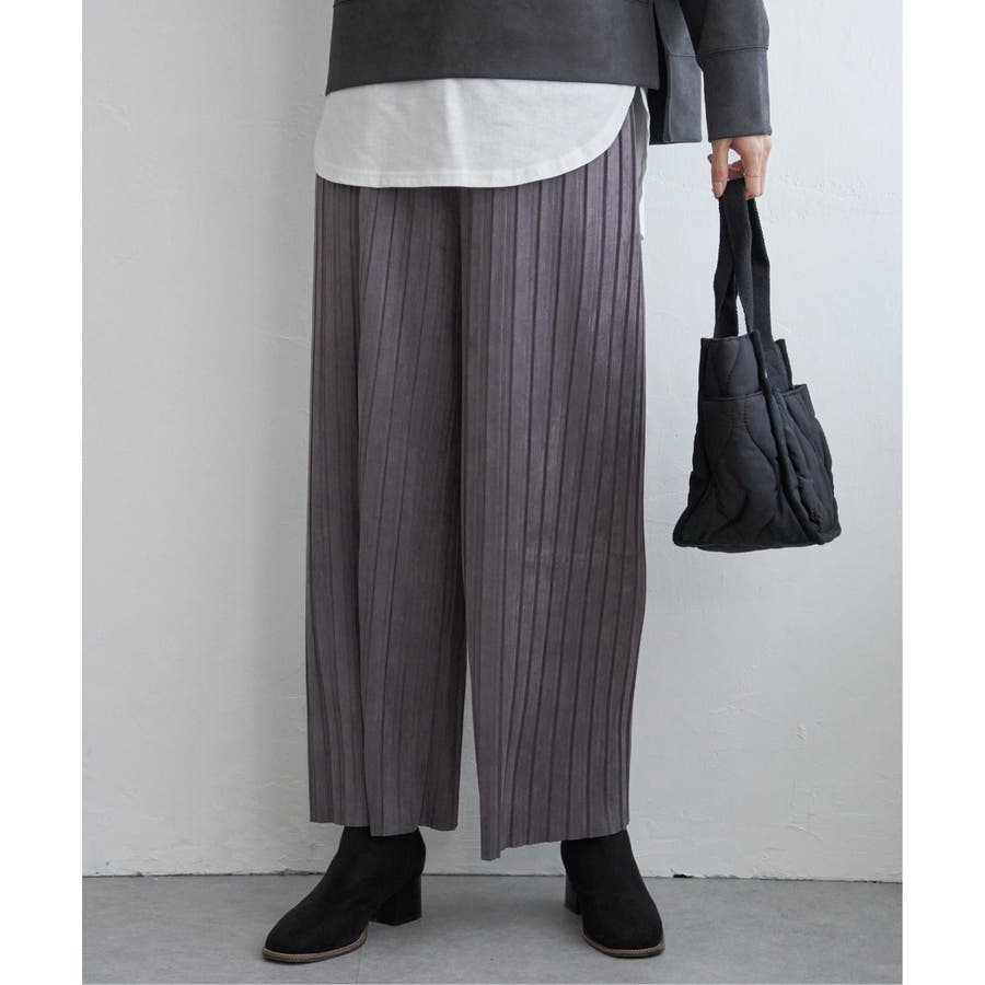 秋冬コーデに馴染む、しっとりとした風合いのスエード風ワイドパンツ。
