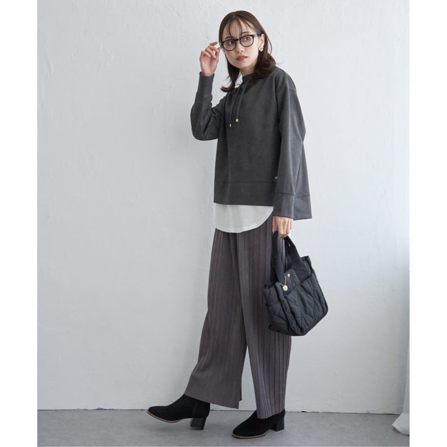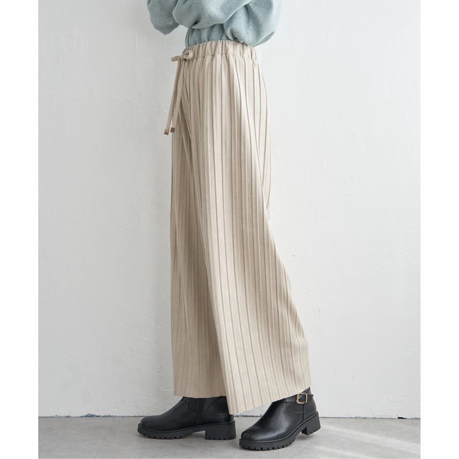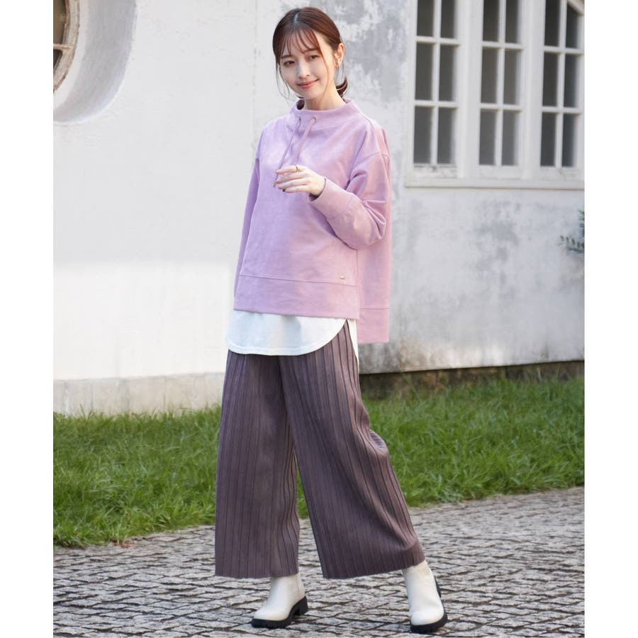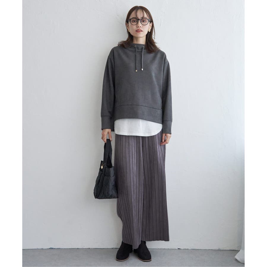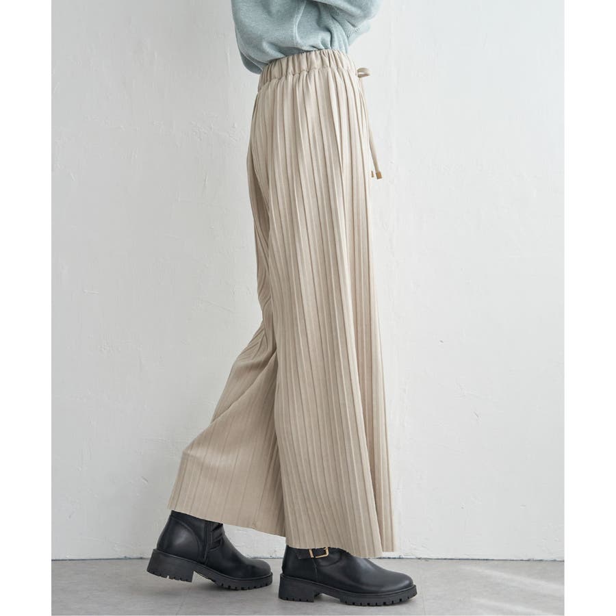 秋冬コーデに馴染む、しっとりとした風合いのスエード風ワイドパンツ。