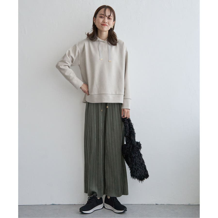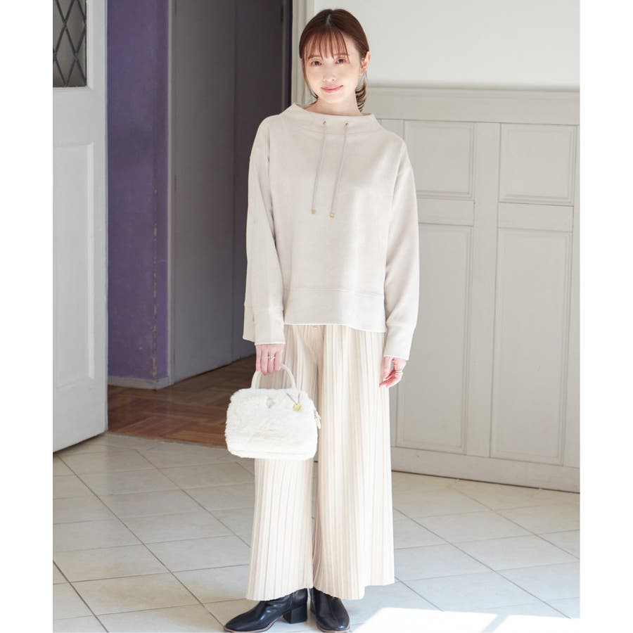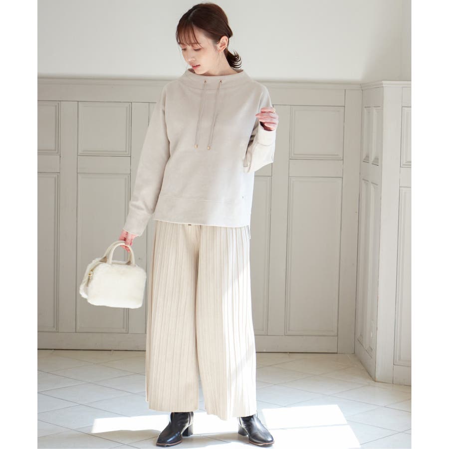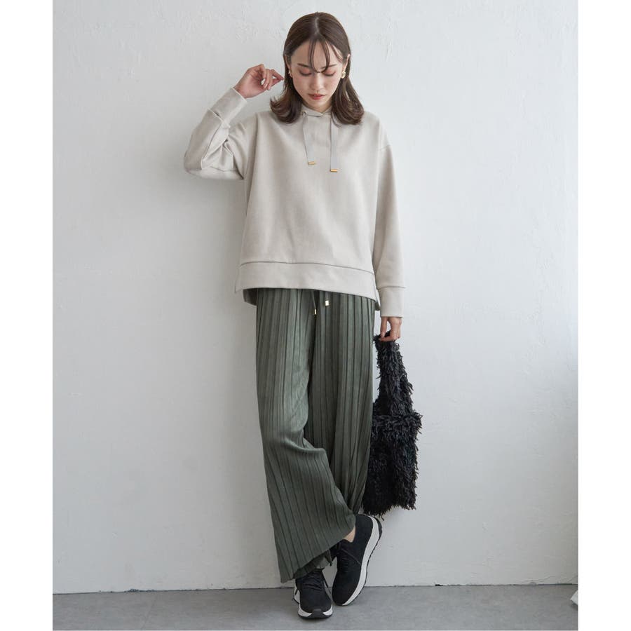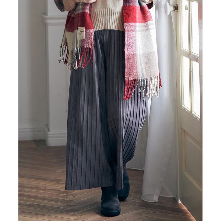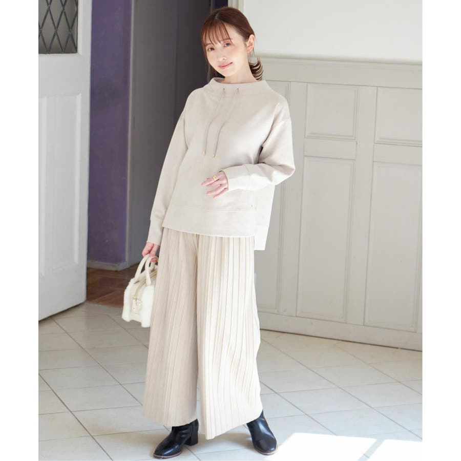 秋冬コーデに馴染む、しっとりとした風合いのスエード風ワイドパンツ。