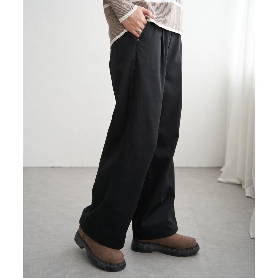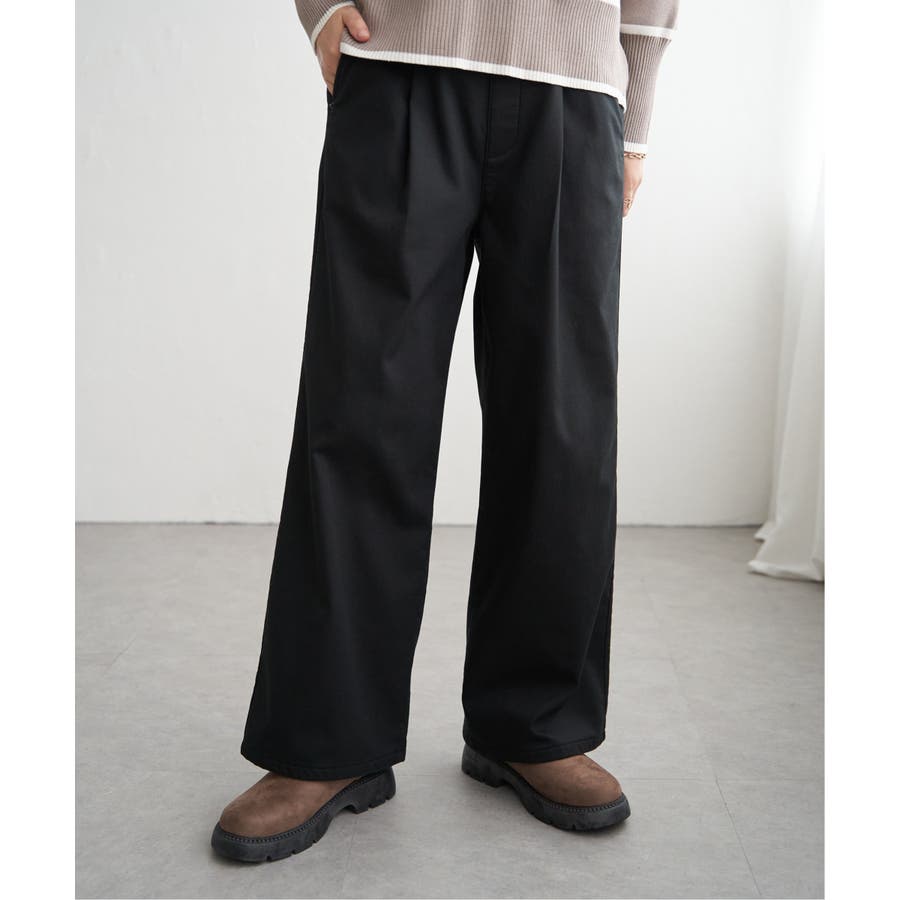 裏側に起毛素材を貼り合わせた寒い季節にぴったりのワイドパンツ。