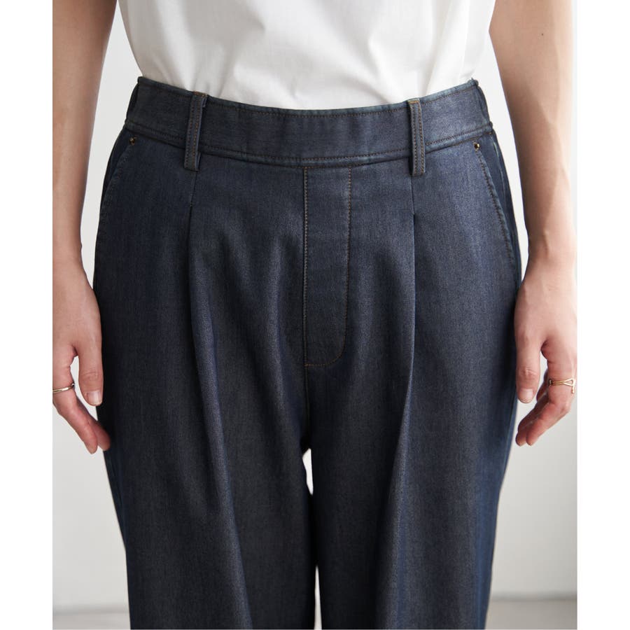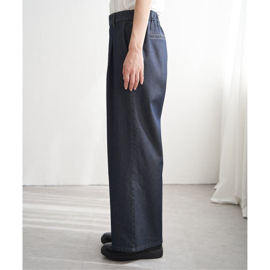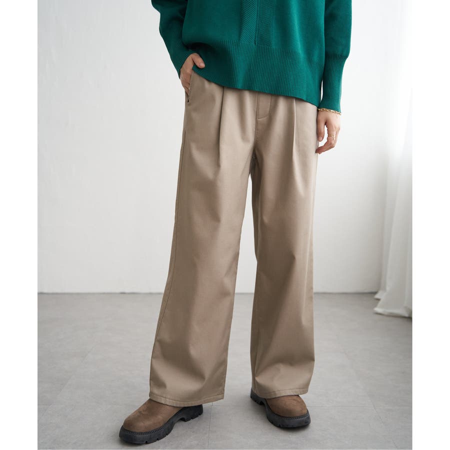 ウエストにワンタックが入ったワイドパンツ。
