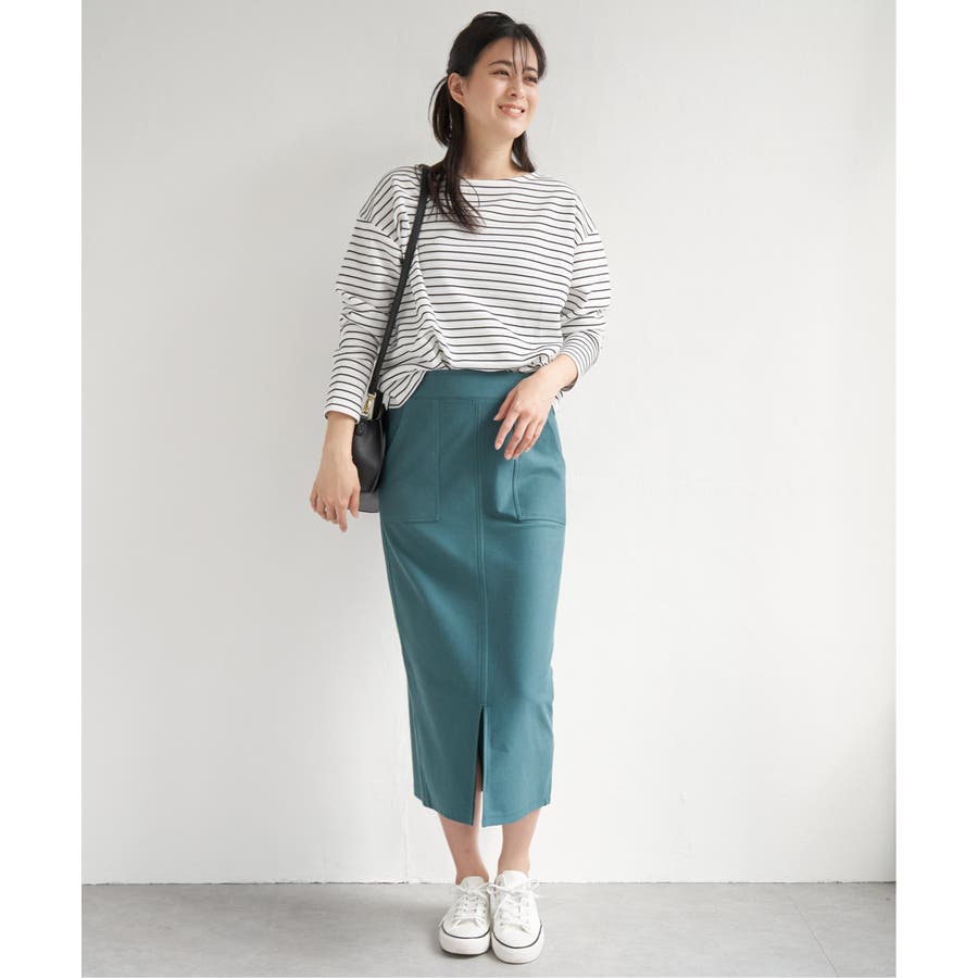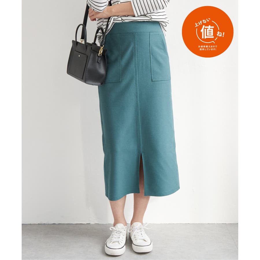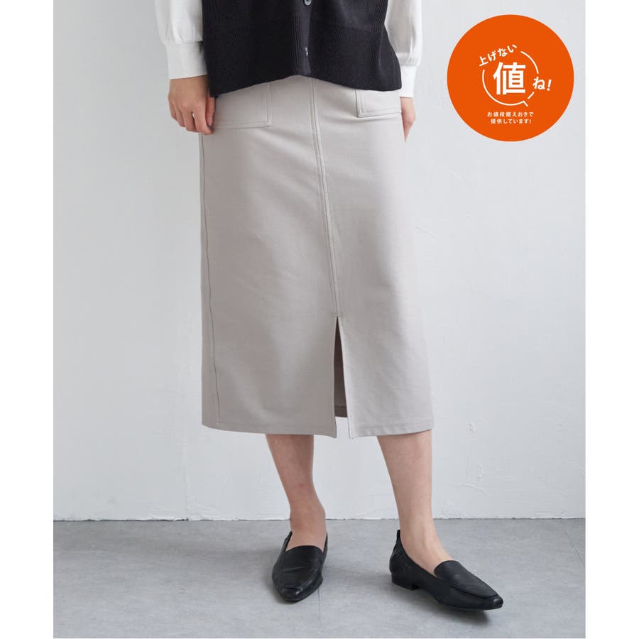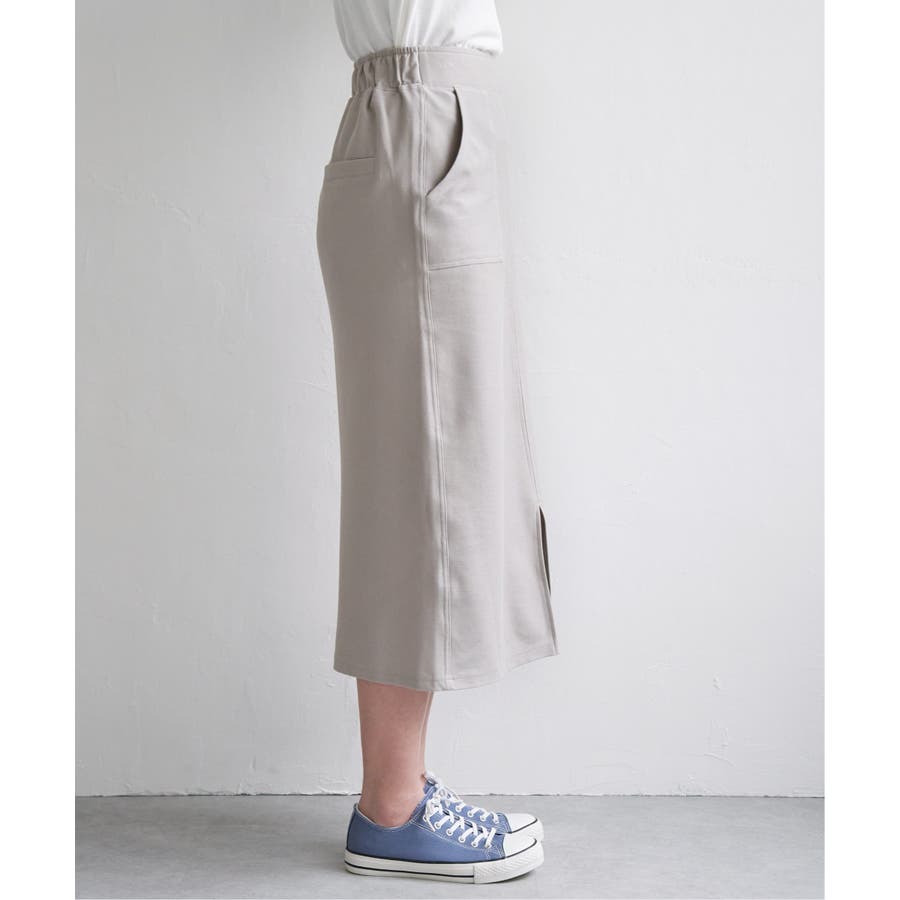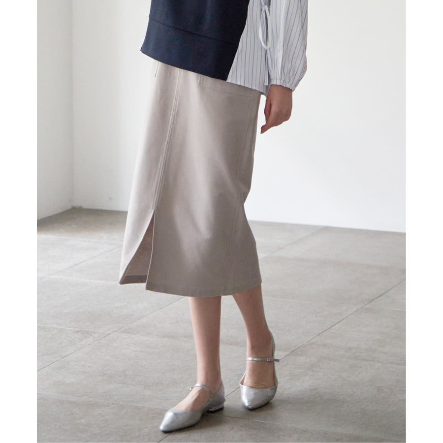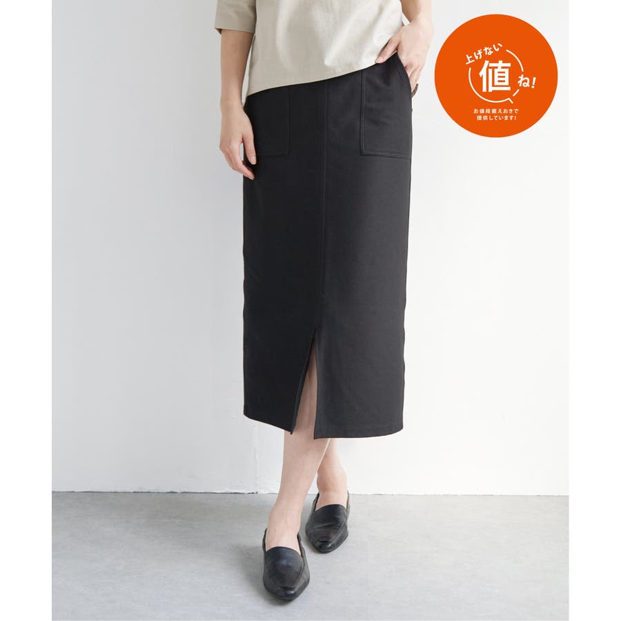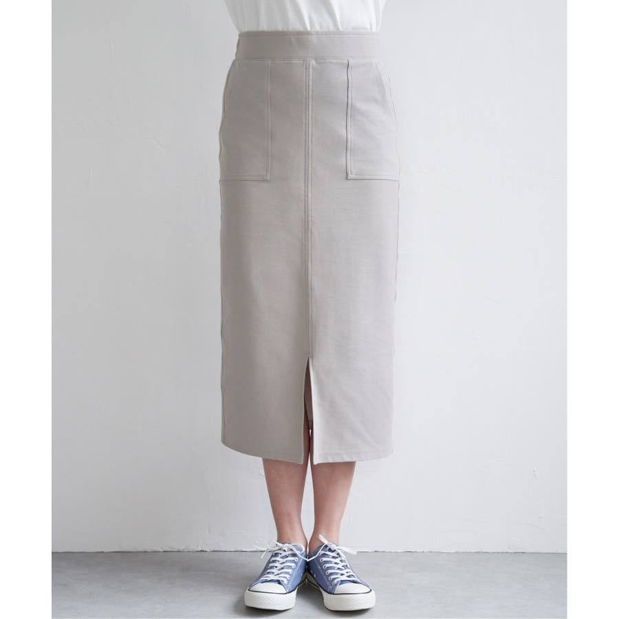 アウトポケットがポイントの着回しのしやすいイージータイトスカート。