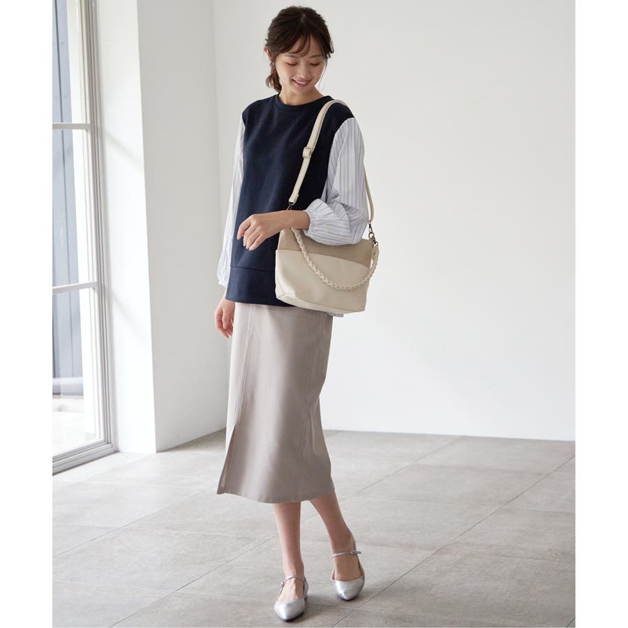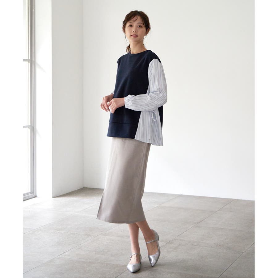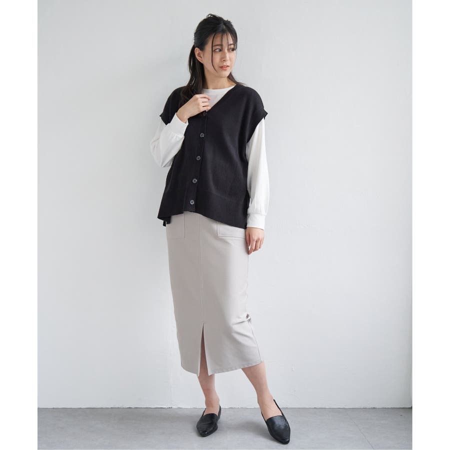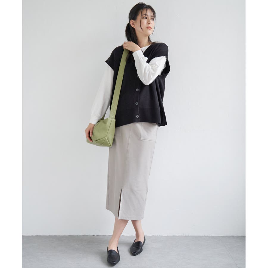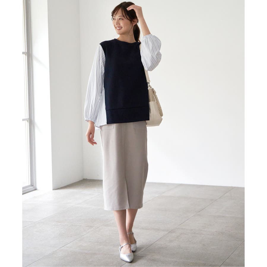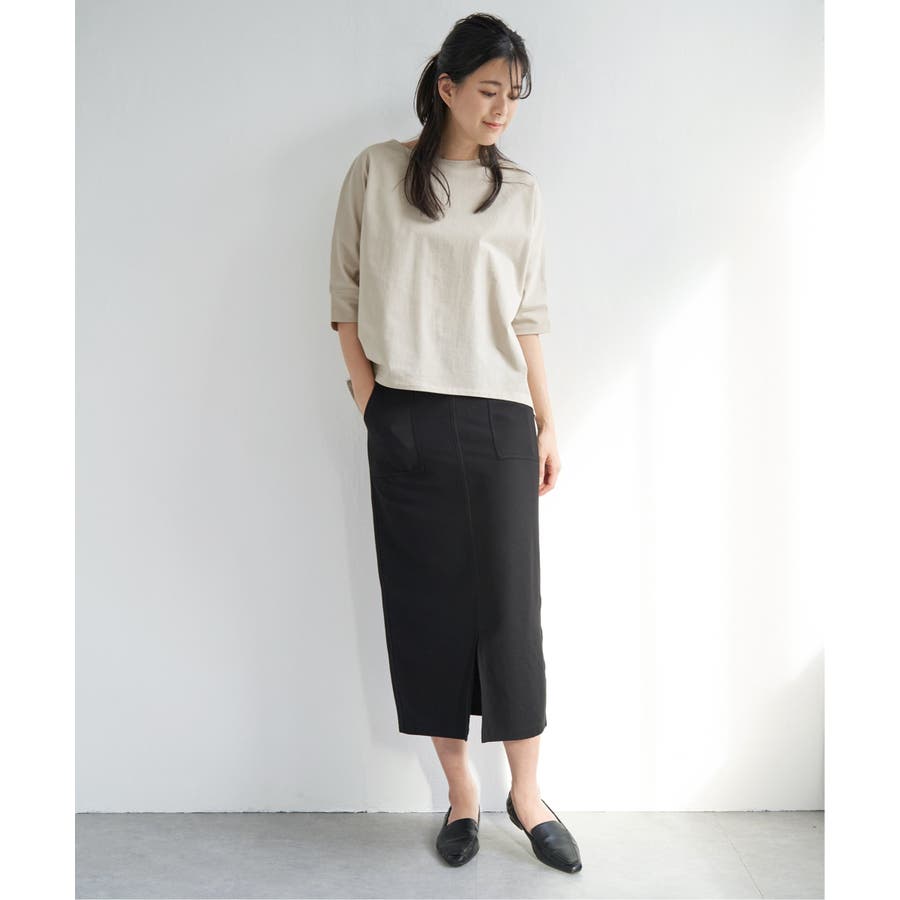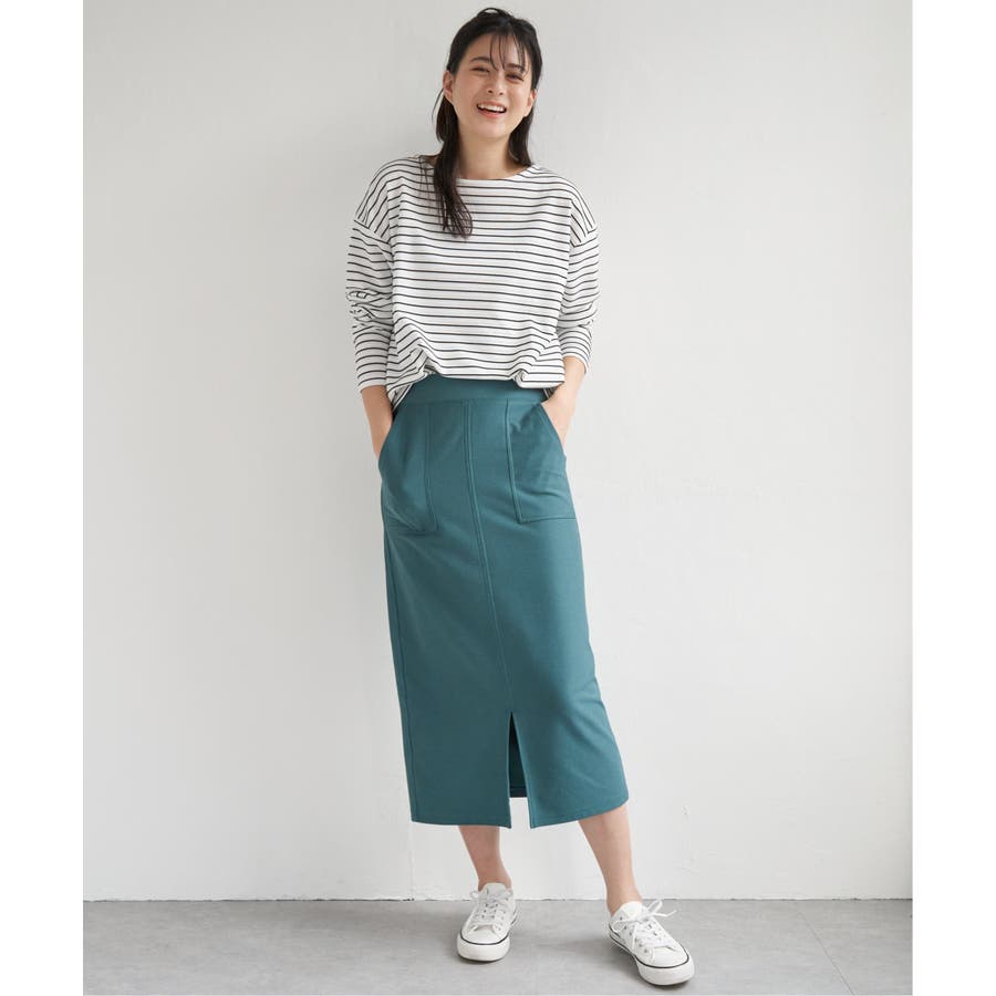 アウトポケットがポイントの着回しのしやすいイージータイトスカート。