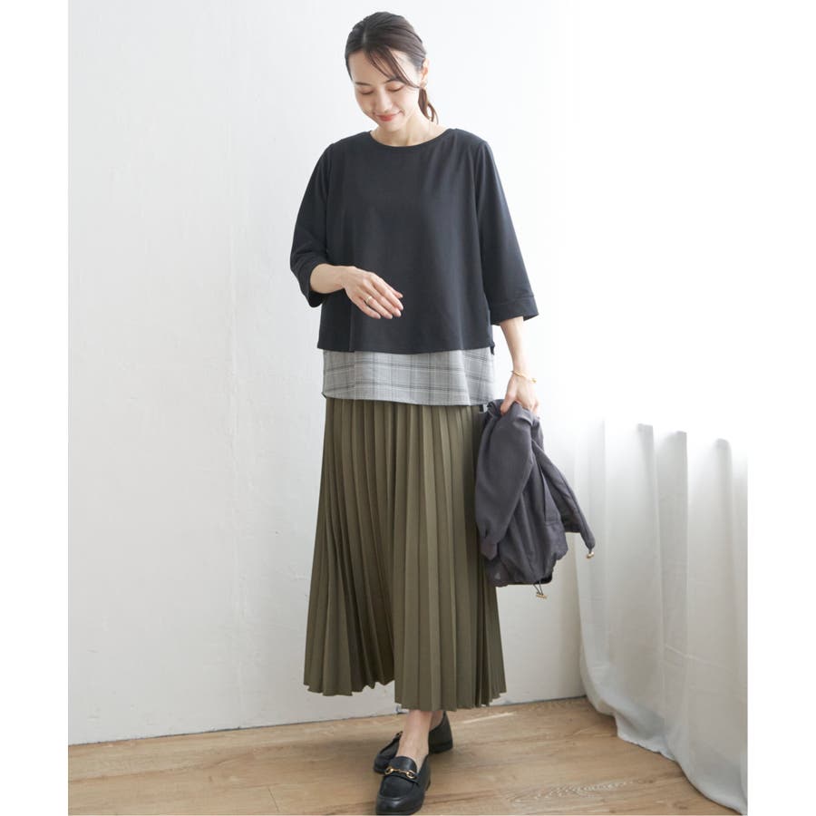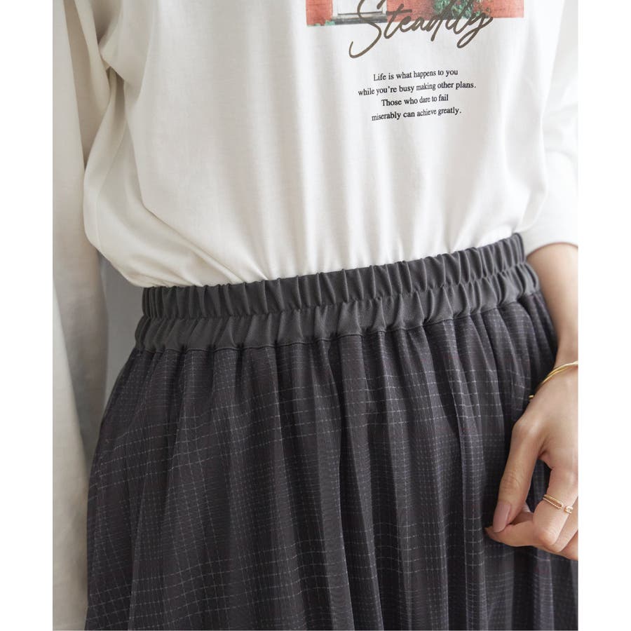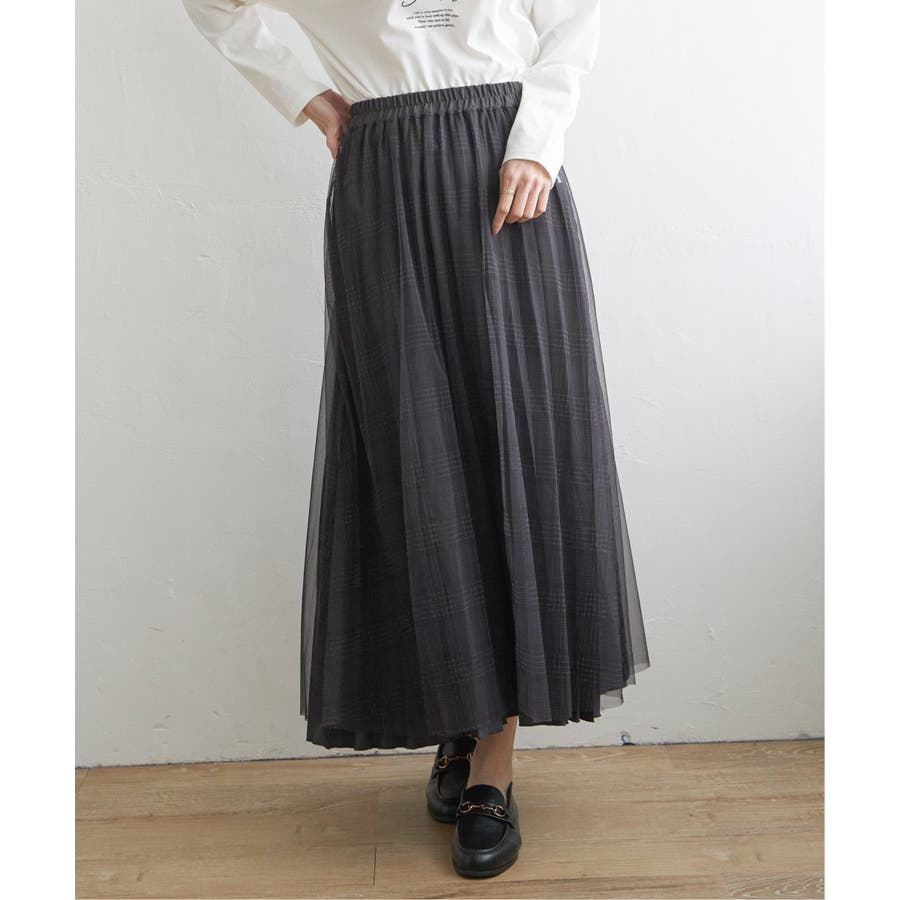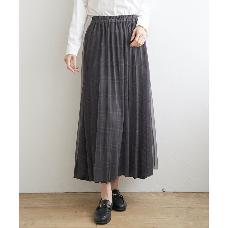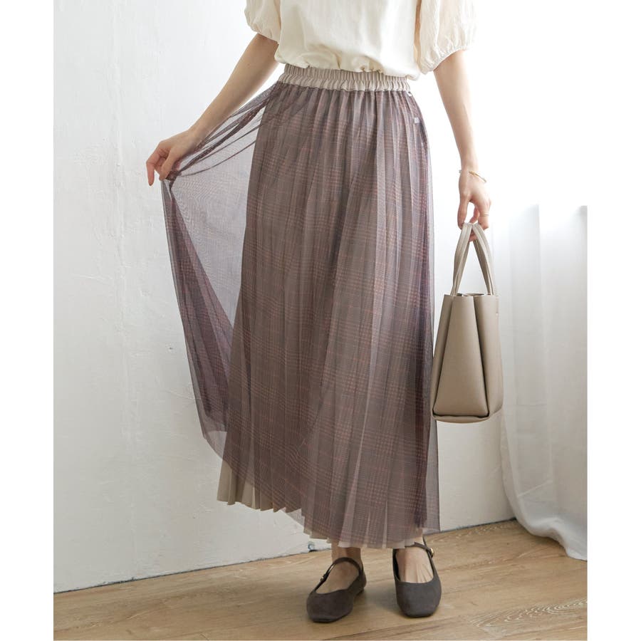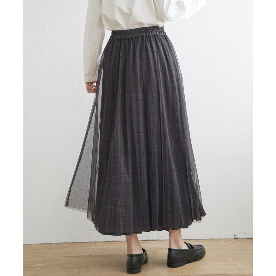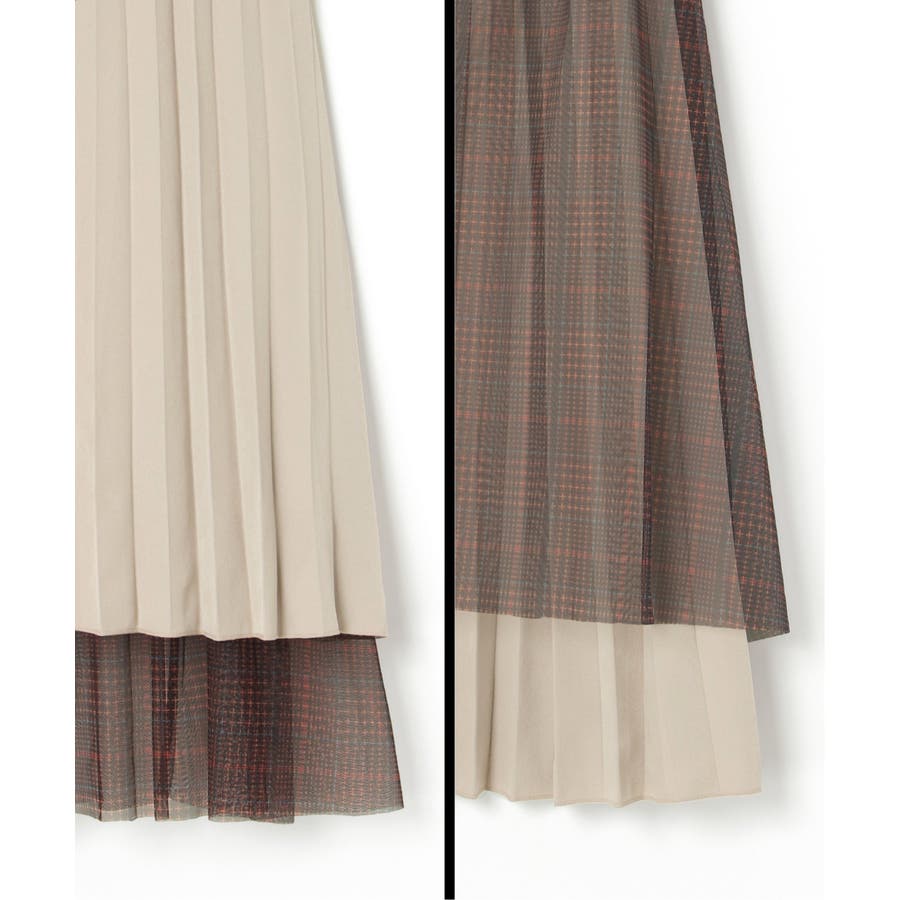 ベーシックな中肉素材プリーツ×今季らしいチュール素材にチェックプリントの2枚仕立て。