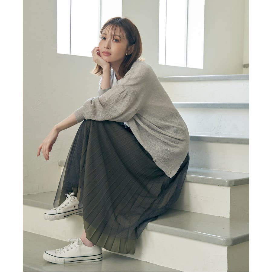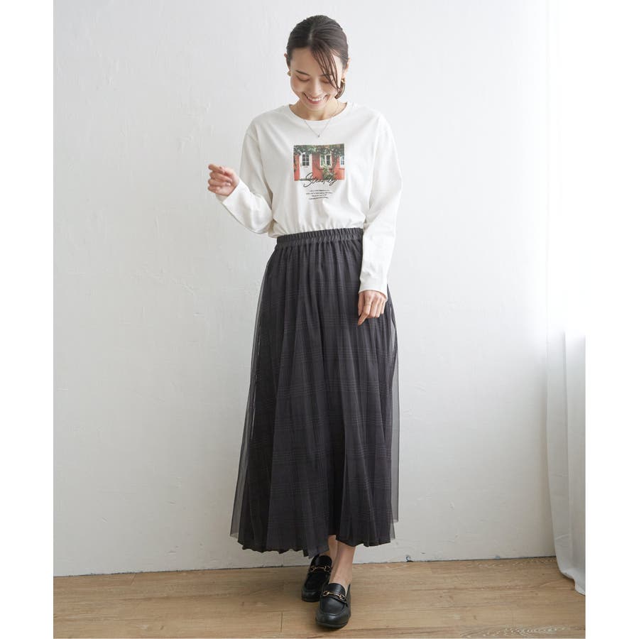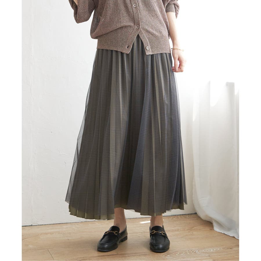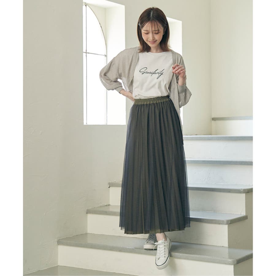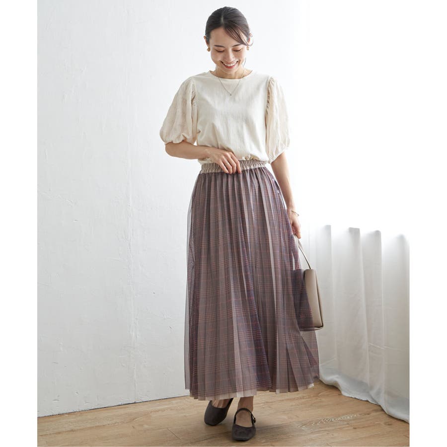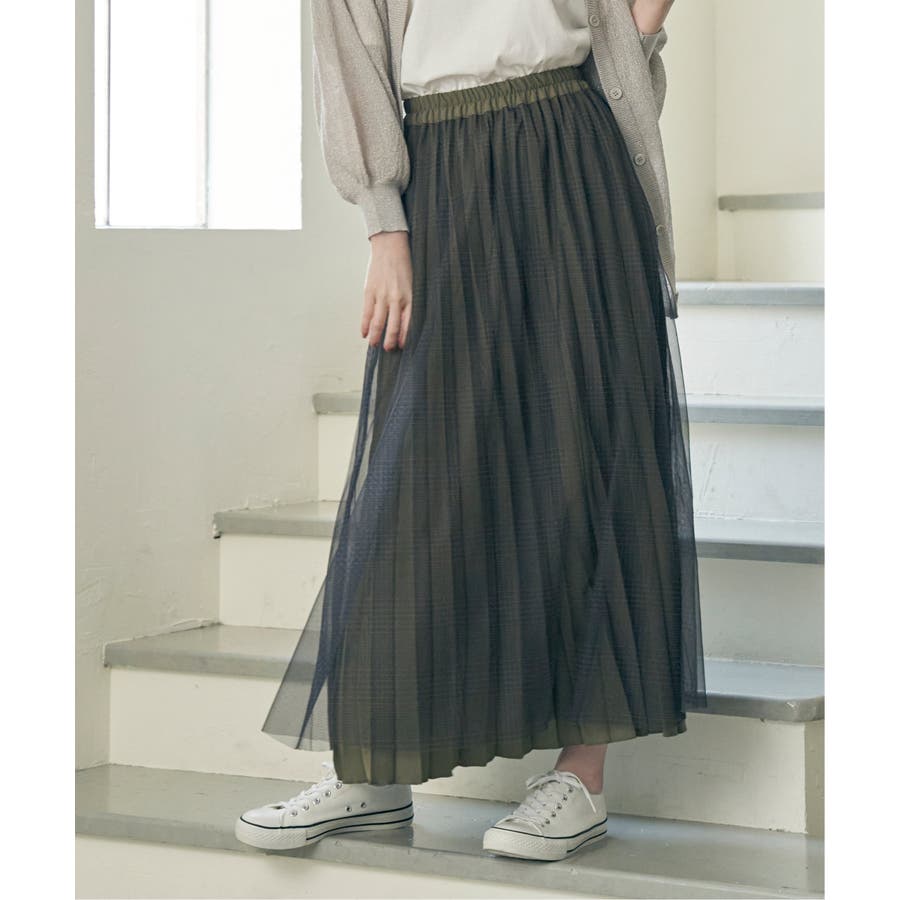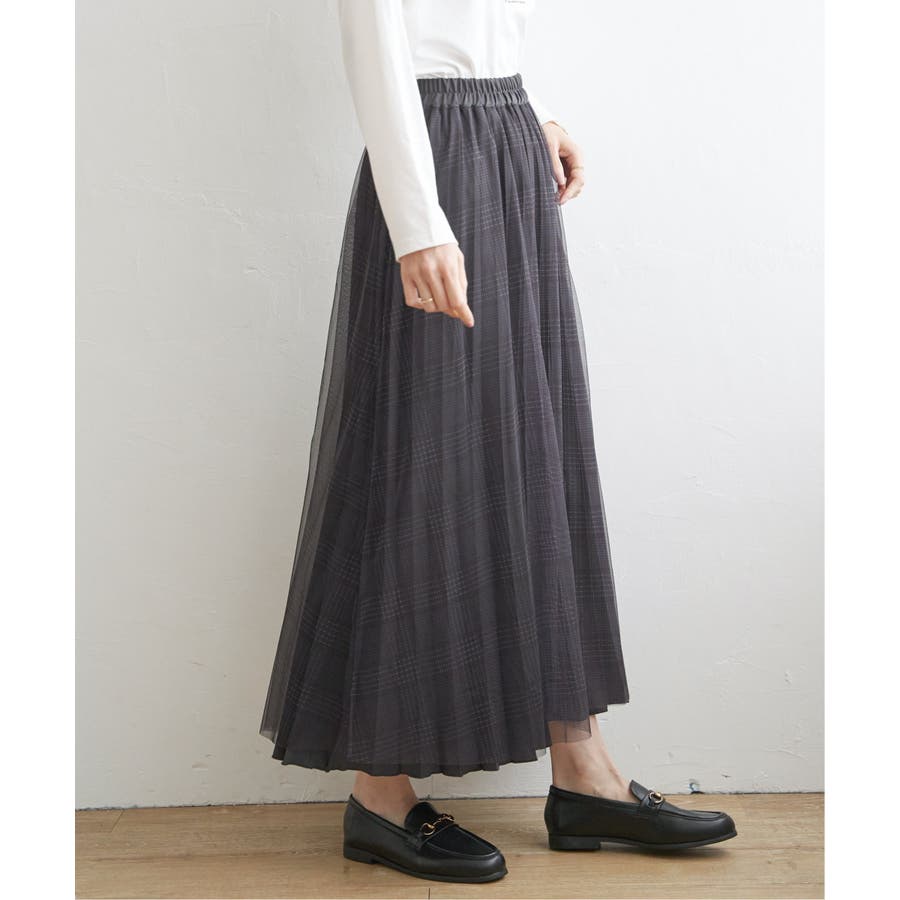 きちんとブラウスや柄物トップスと合わせる時は無地のプリーツスカート、シンプルなトップスの時はチュールチェックなどアレンジを楽しめます。
