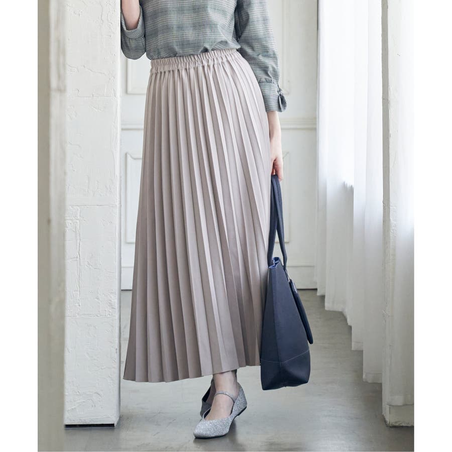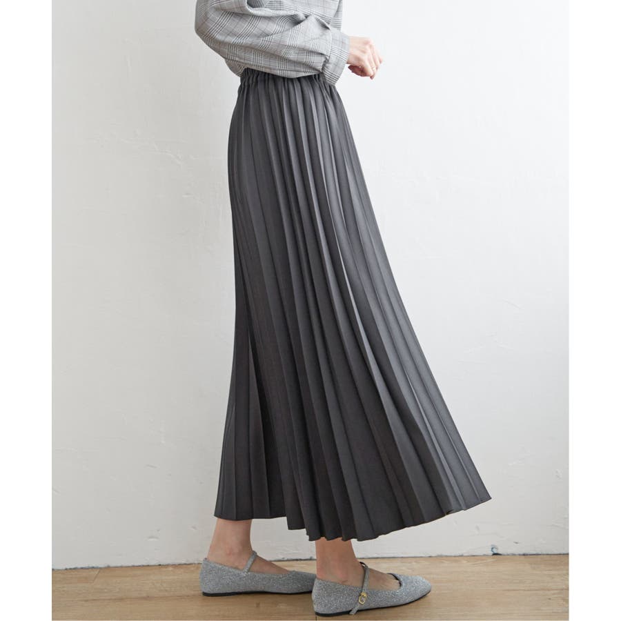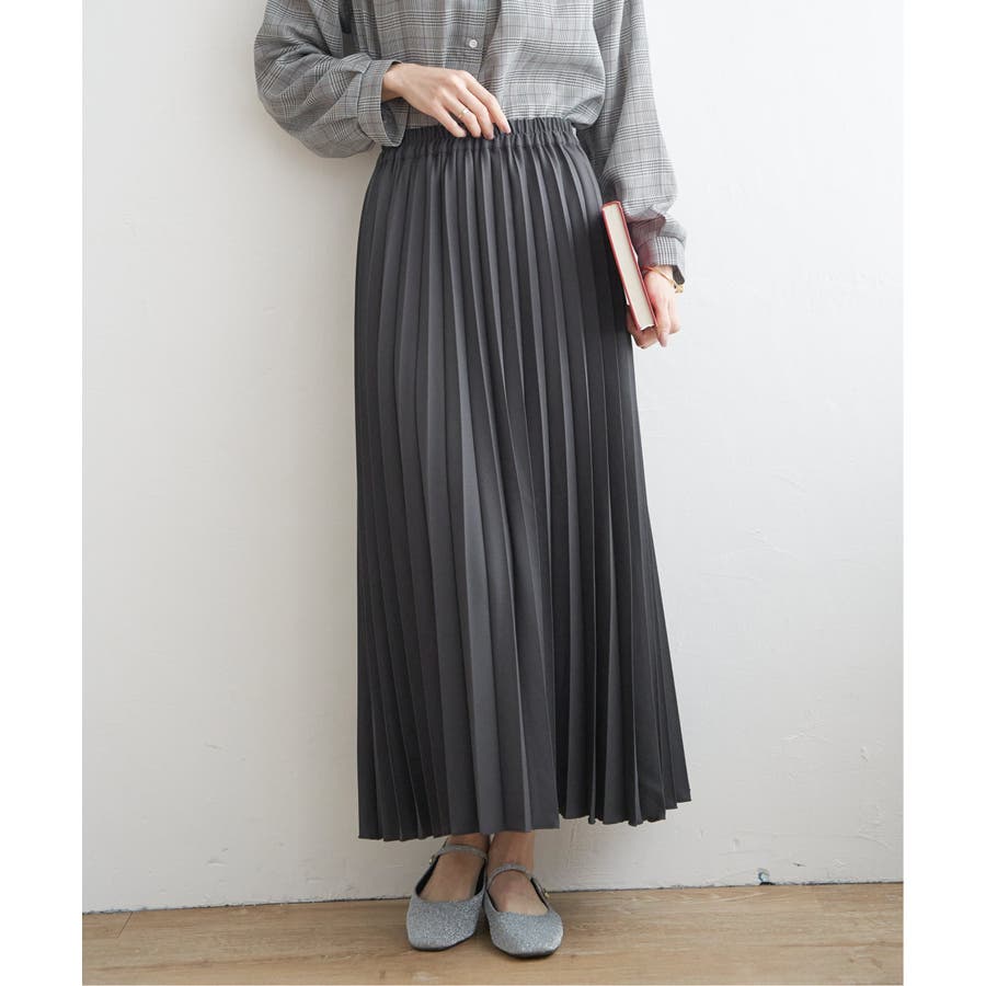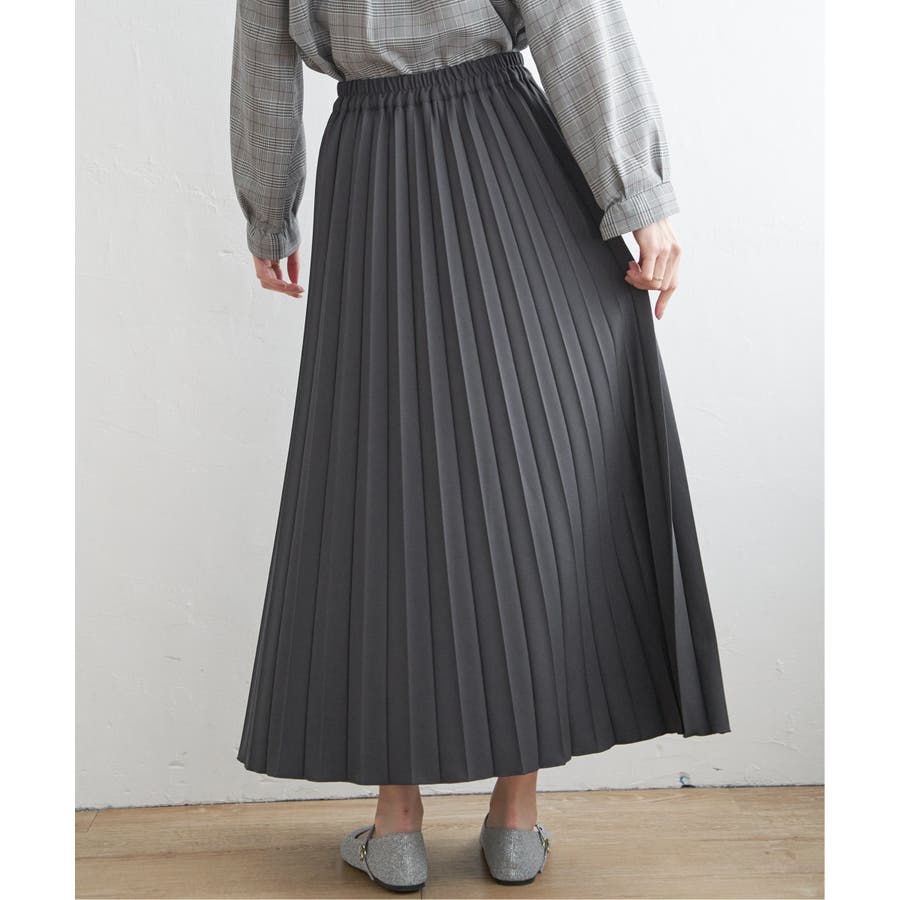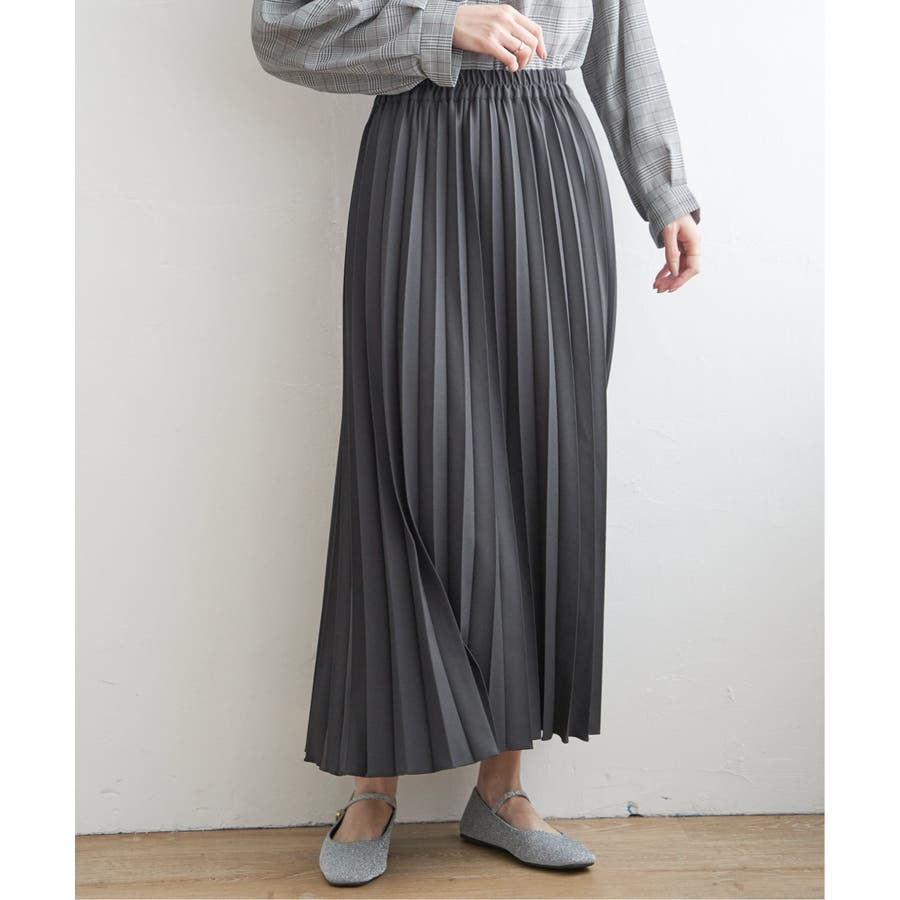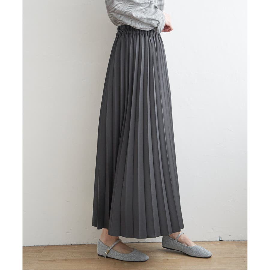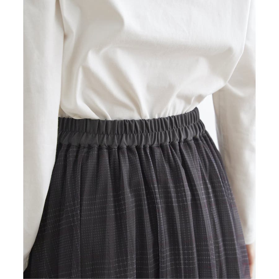 無地とシアーチェック、リバーシブルで着回せるプリーツスカート。