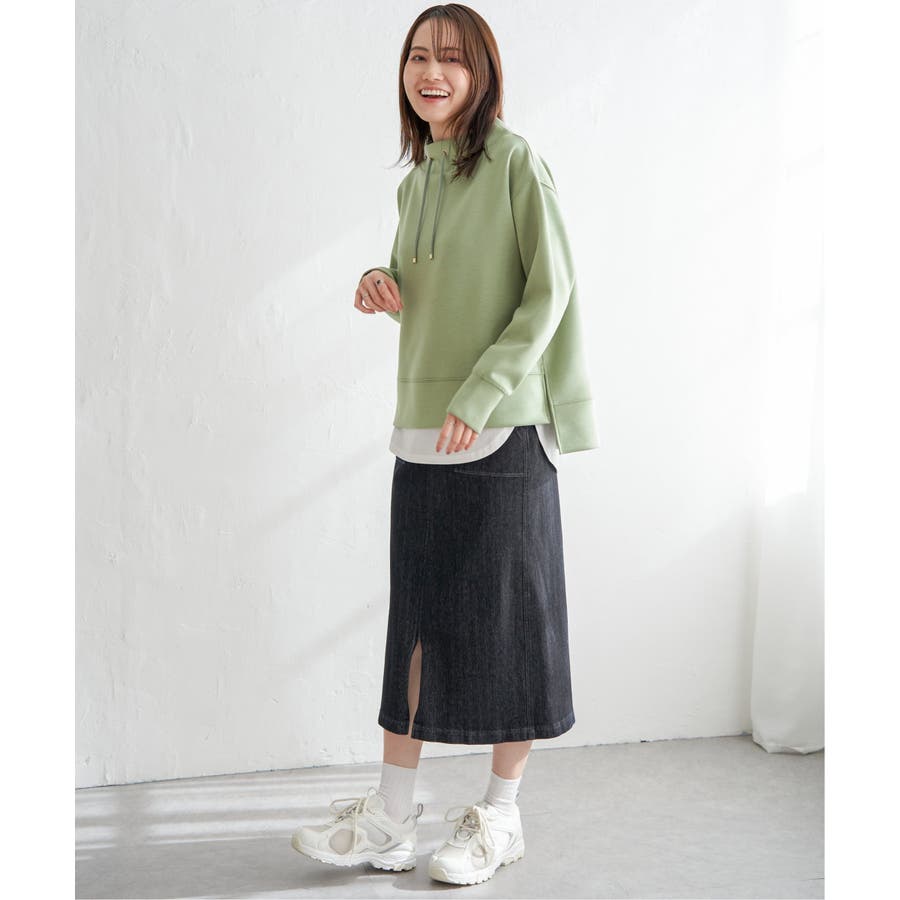 体のラインを拾わない肉感の素材だから、タイトスカートでも気兼ねなく着こなしていただけます。
