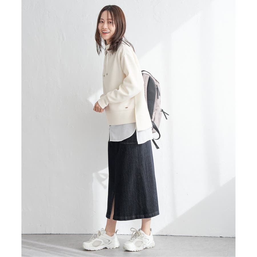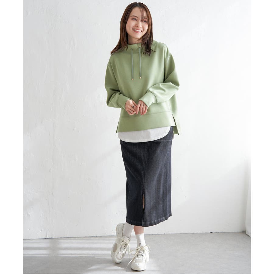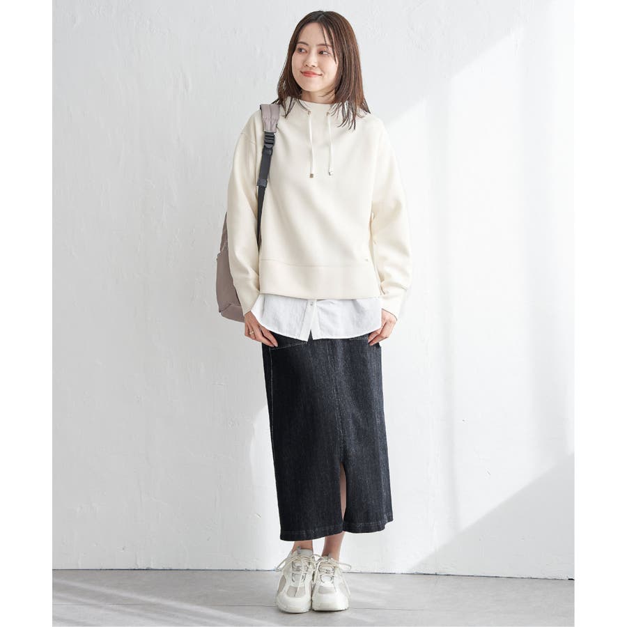 体のラインを拾わない肉感の素材だから、タイトスカートでも気兼ねなく着こなしていただけます。