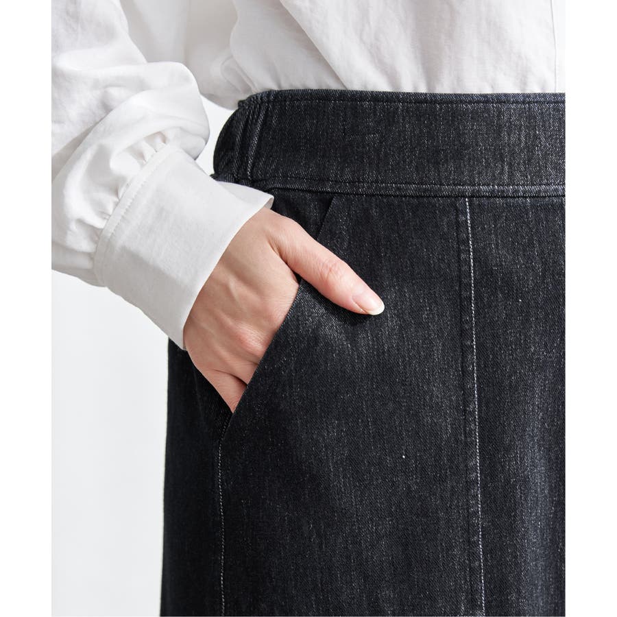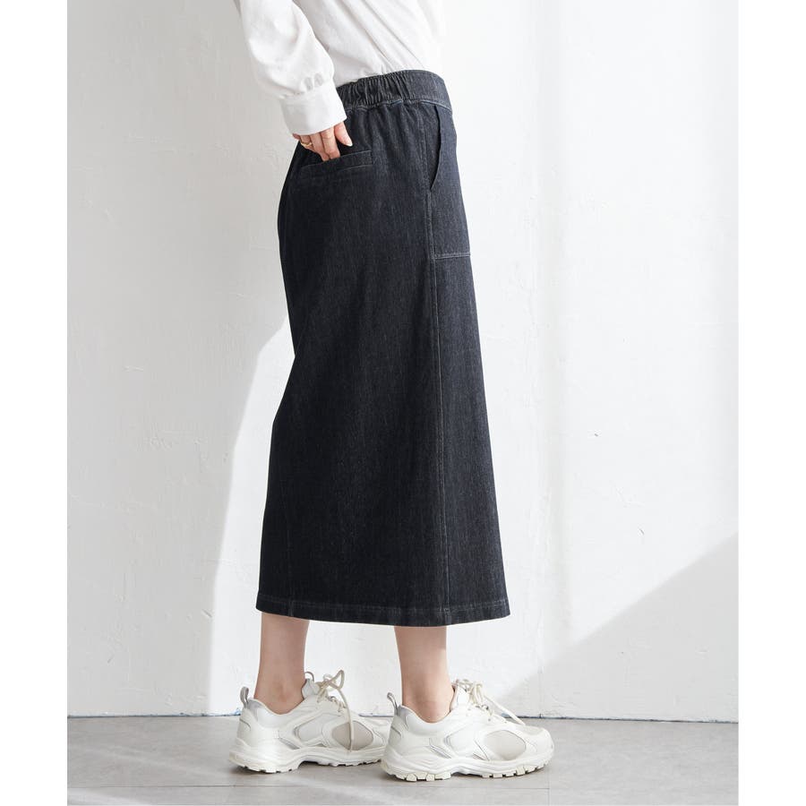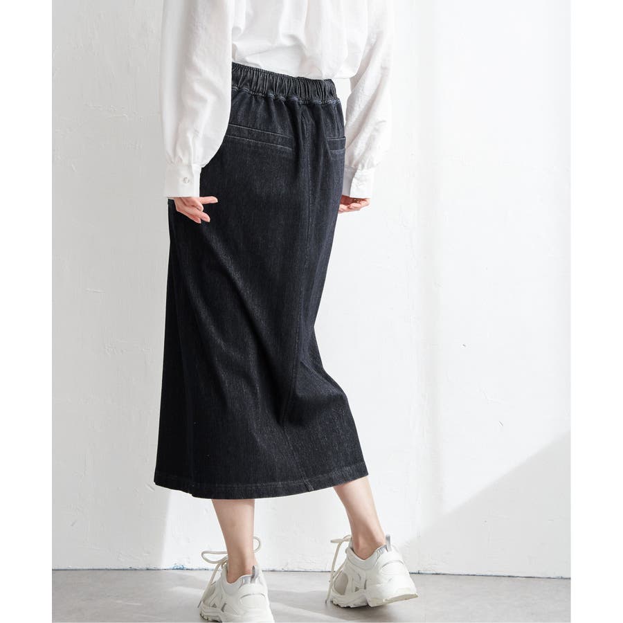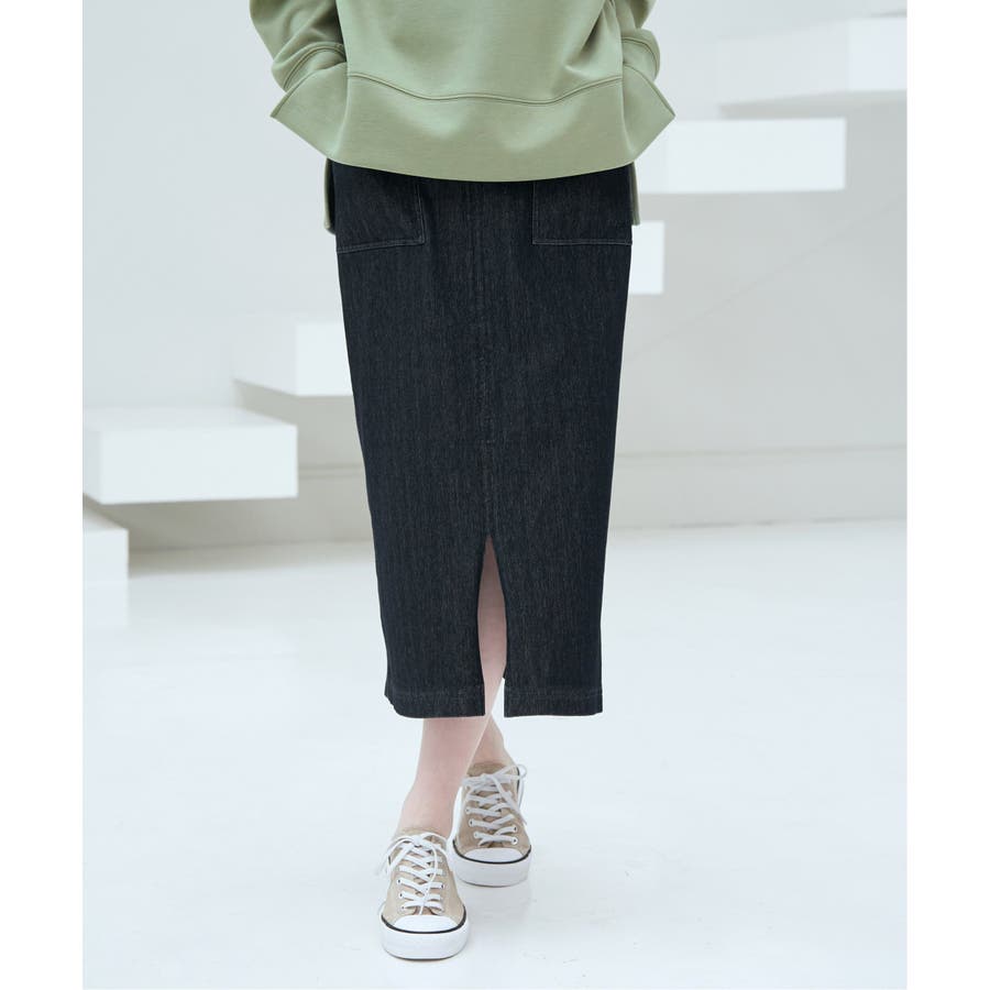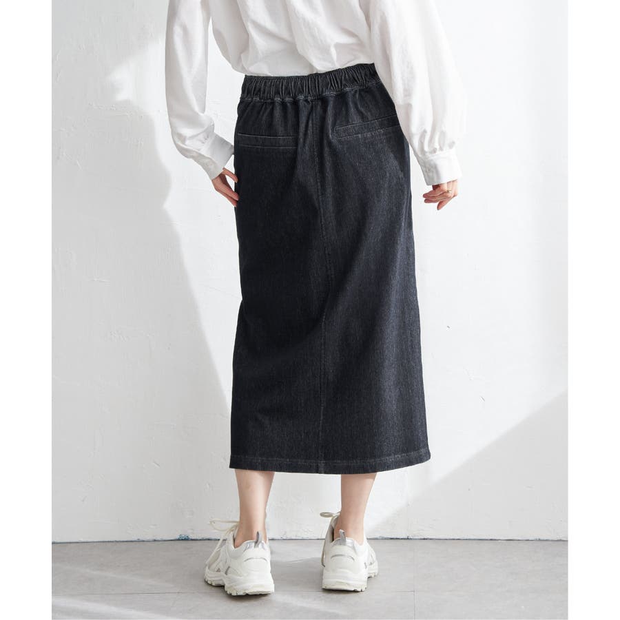 後ろウエストゴム仕様で脱ぎ履きもラクチンながら、タイトシルエットがしっかりとスタイルアップを叶えてくれるのがうれしいポイント。