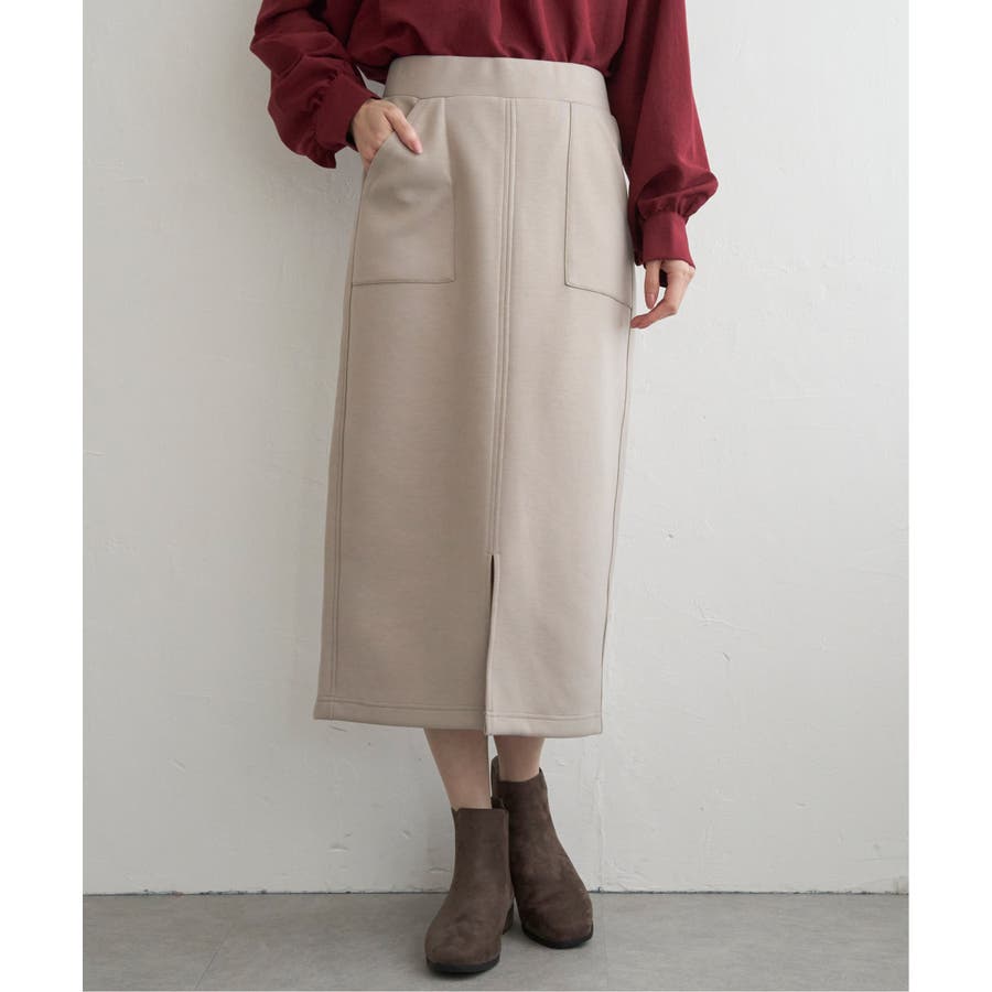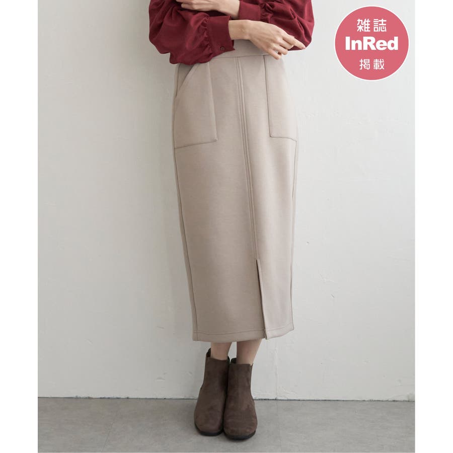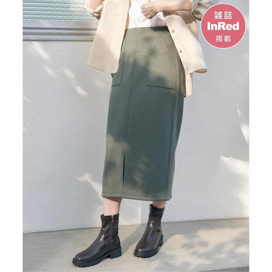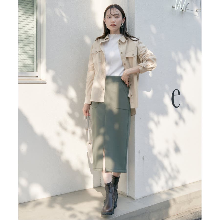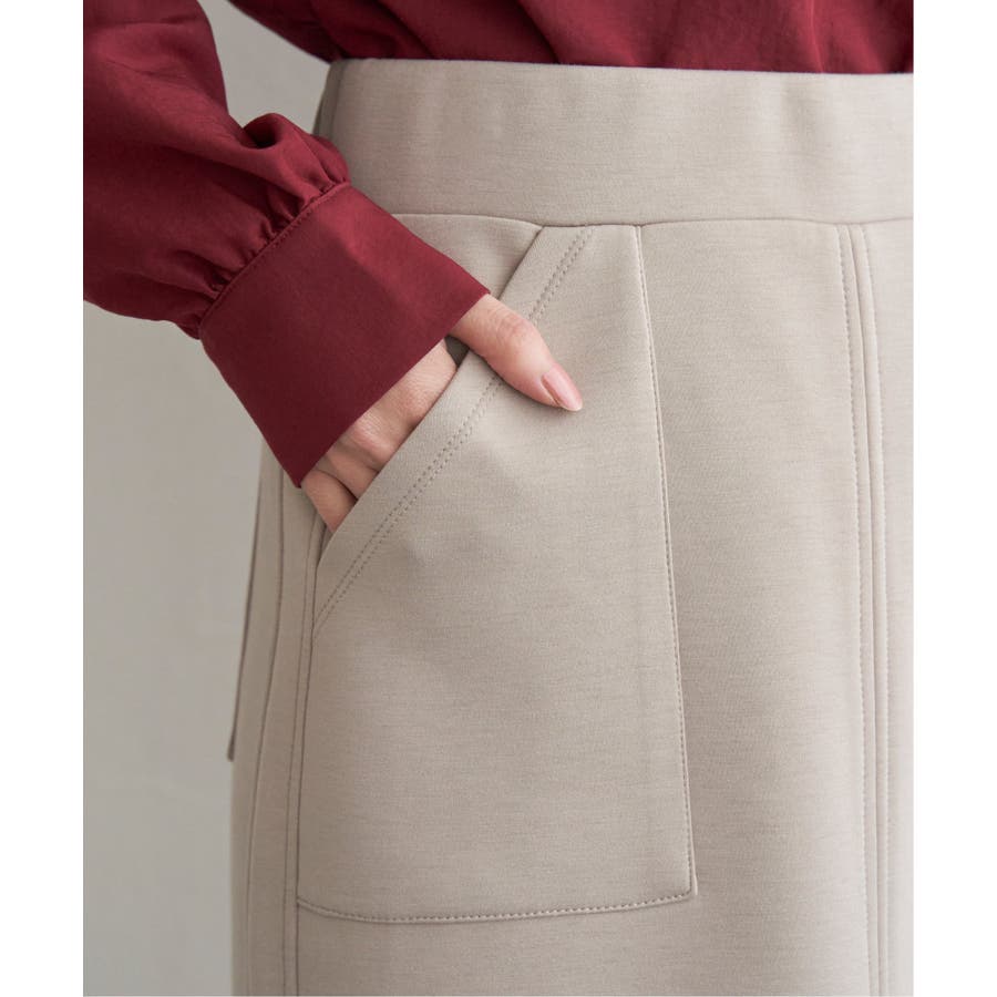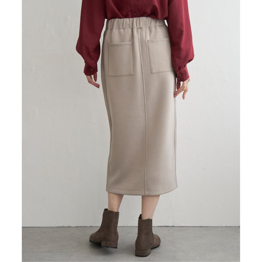 腰回りのアウトポケットが、キレイめカジュアルなタイトスカート。