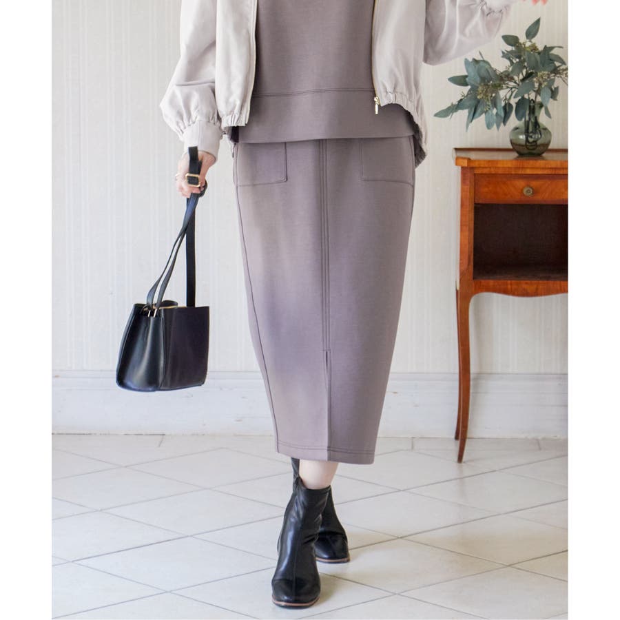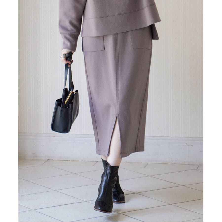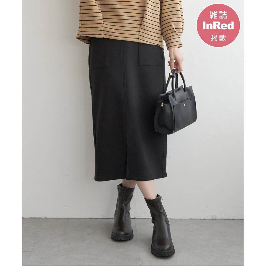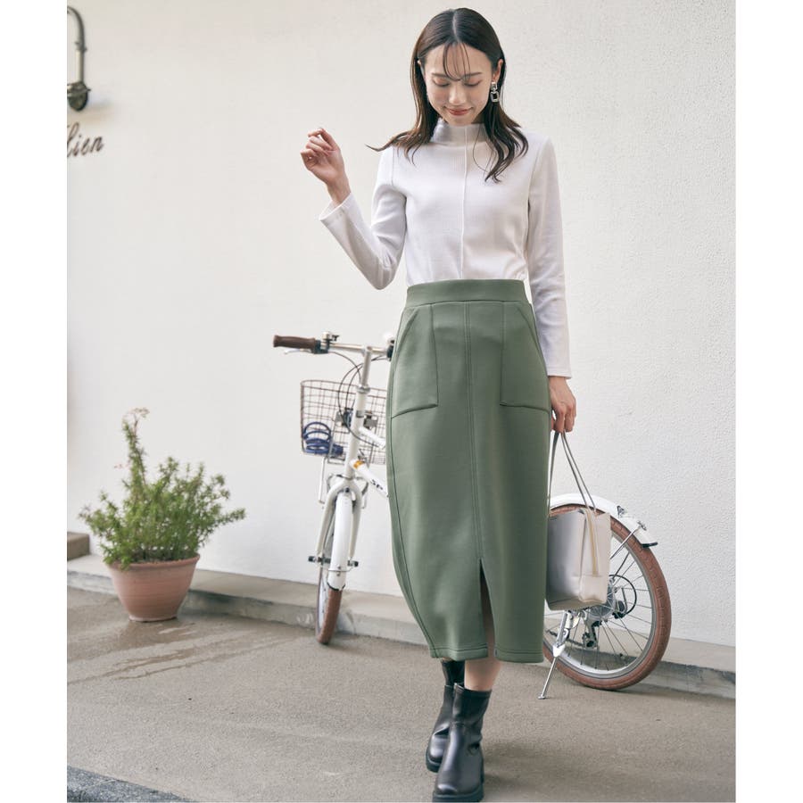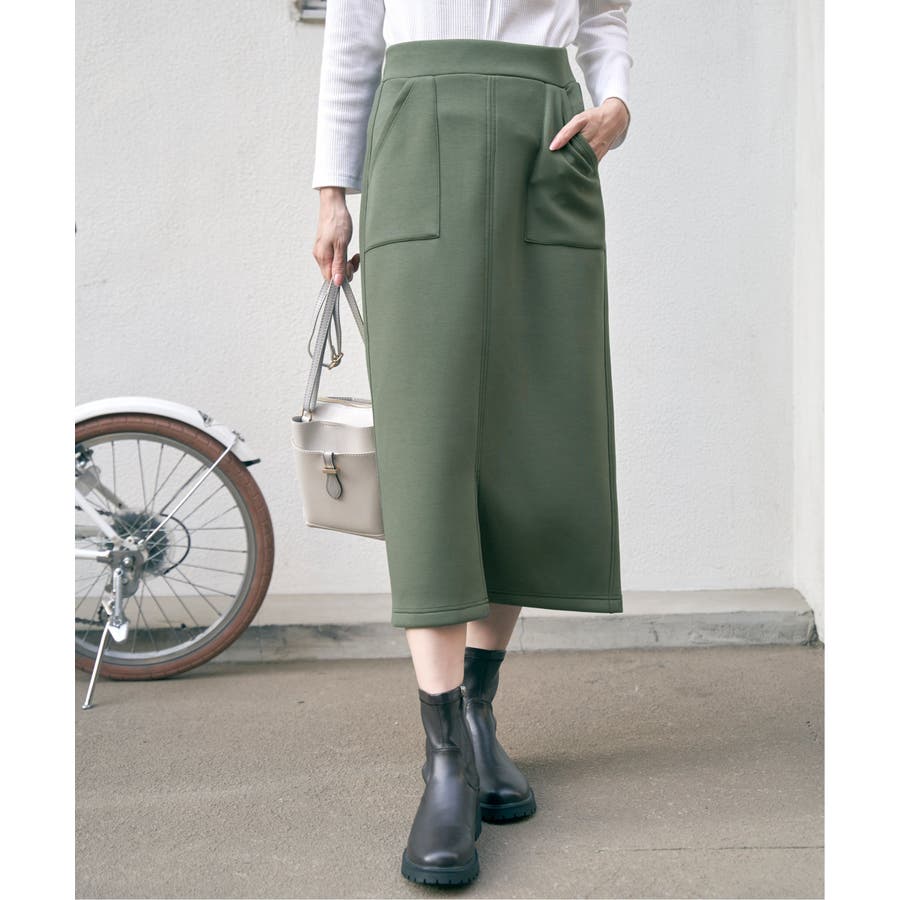 腰回りのアウトポケットが、キレイめカジュアルなタイトスカート。