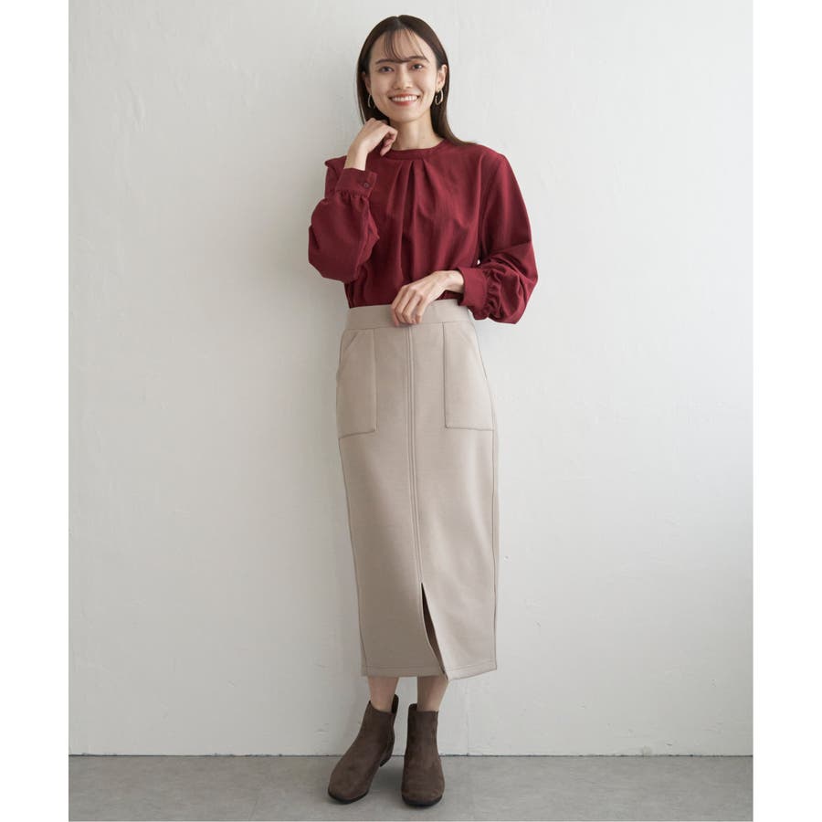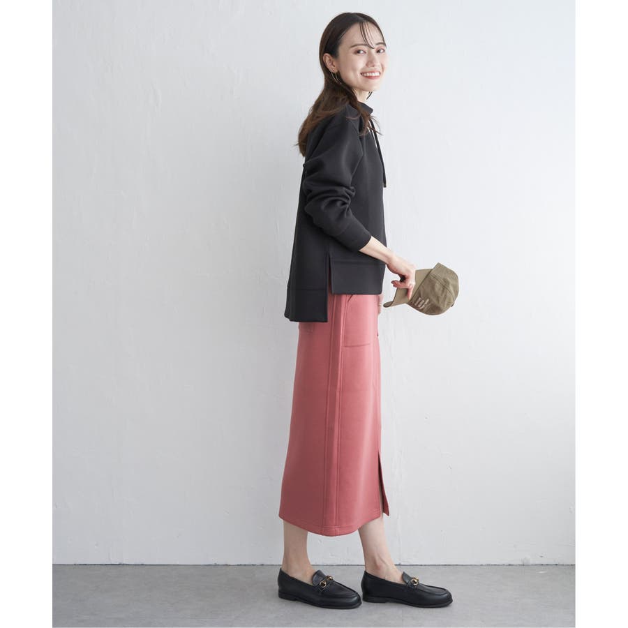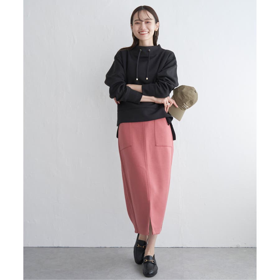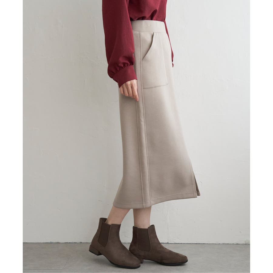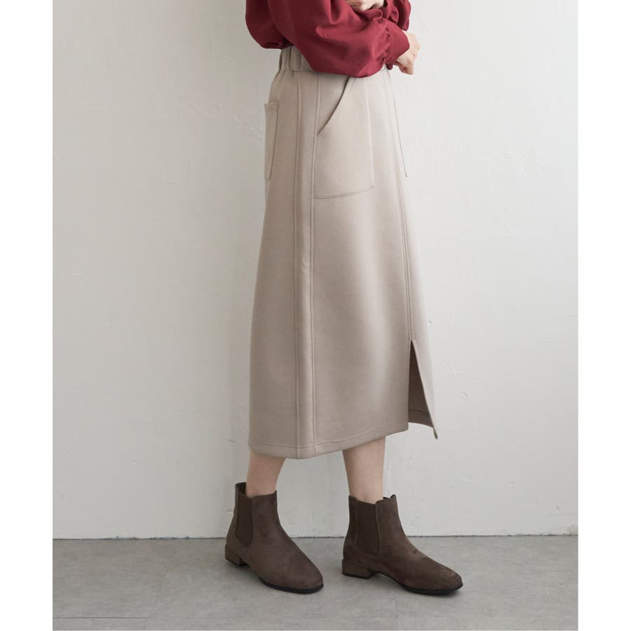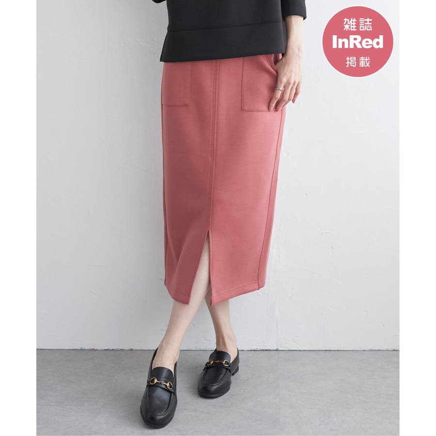 腰回りのアウトポケットが、キレイめカジュアルなタイトスカート。