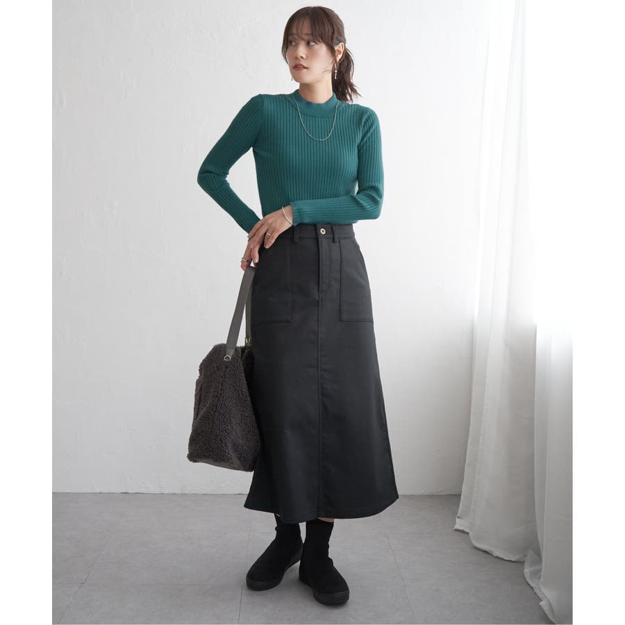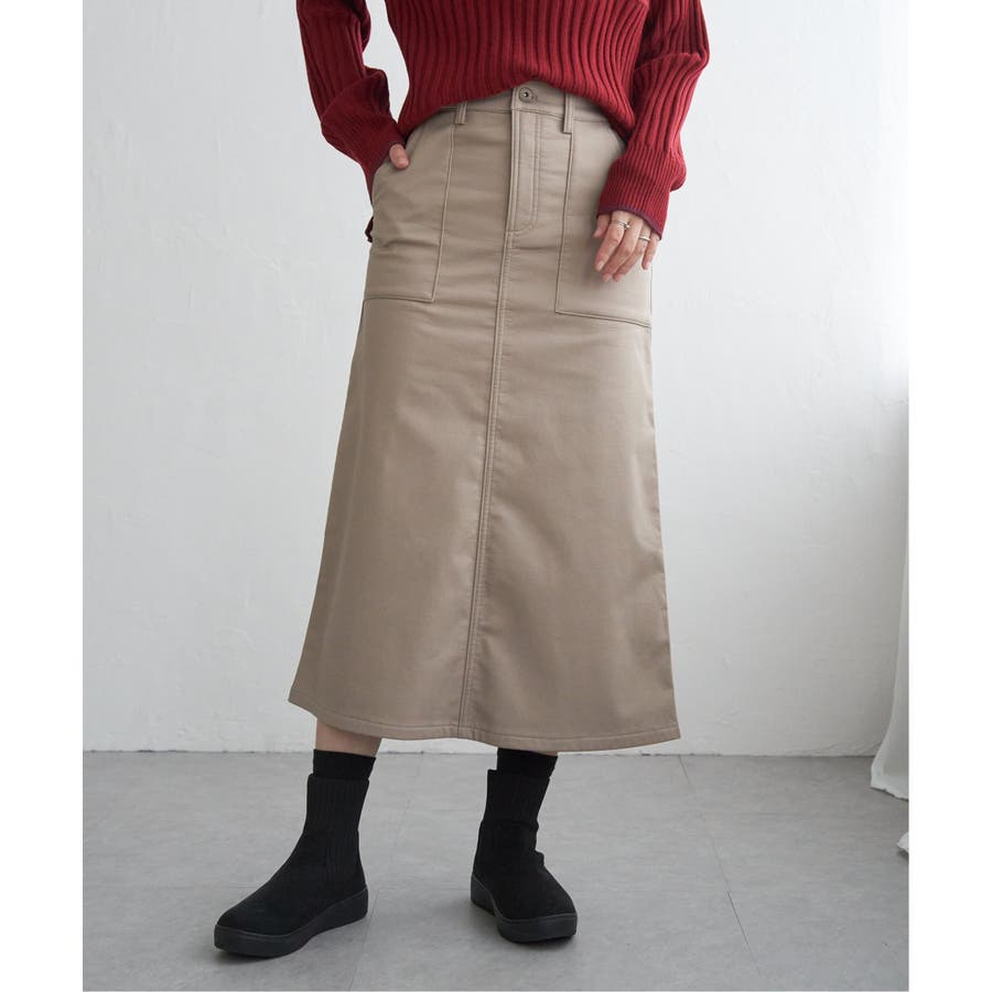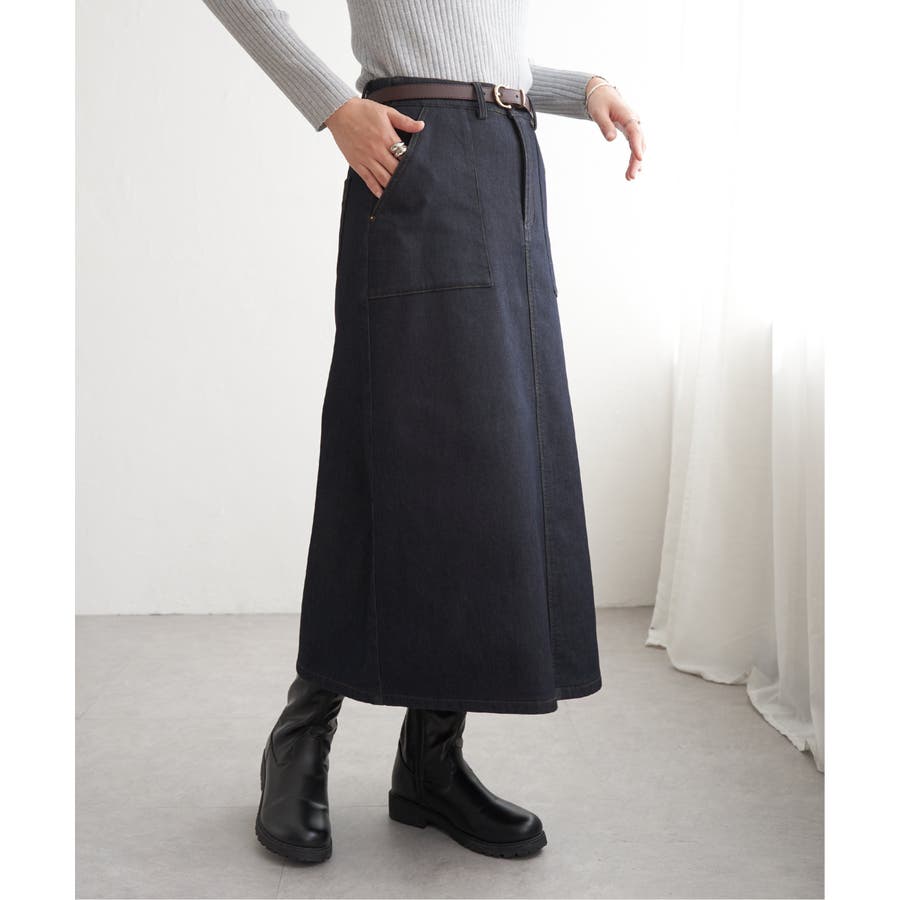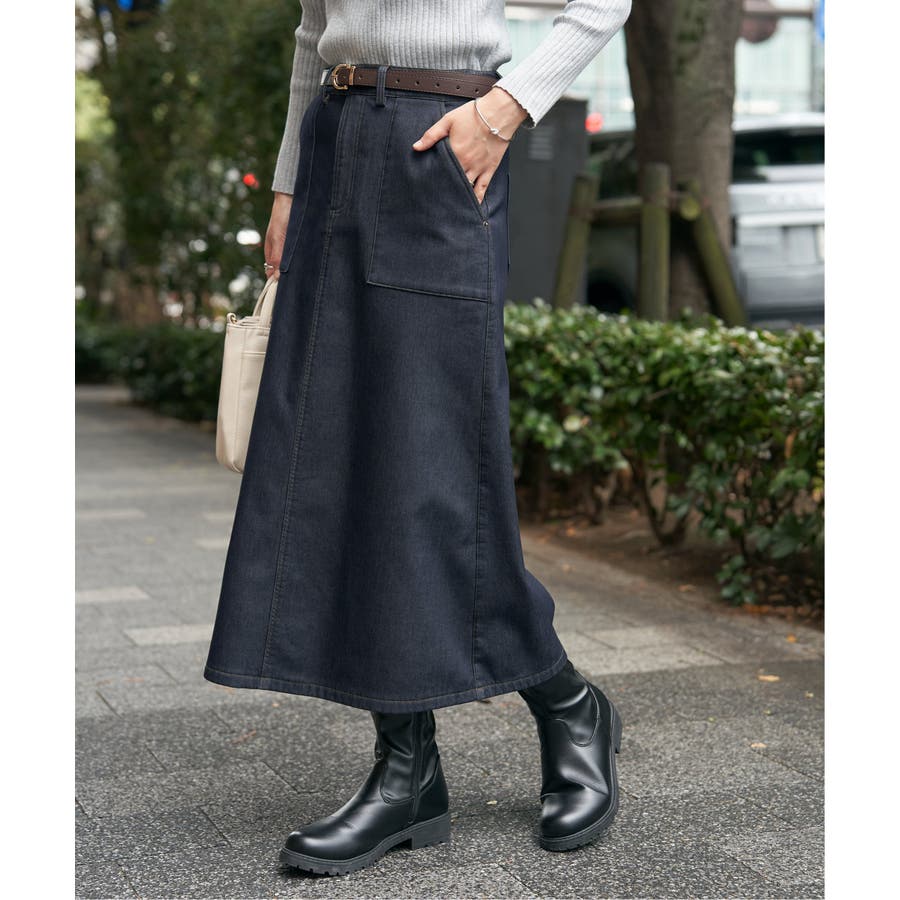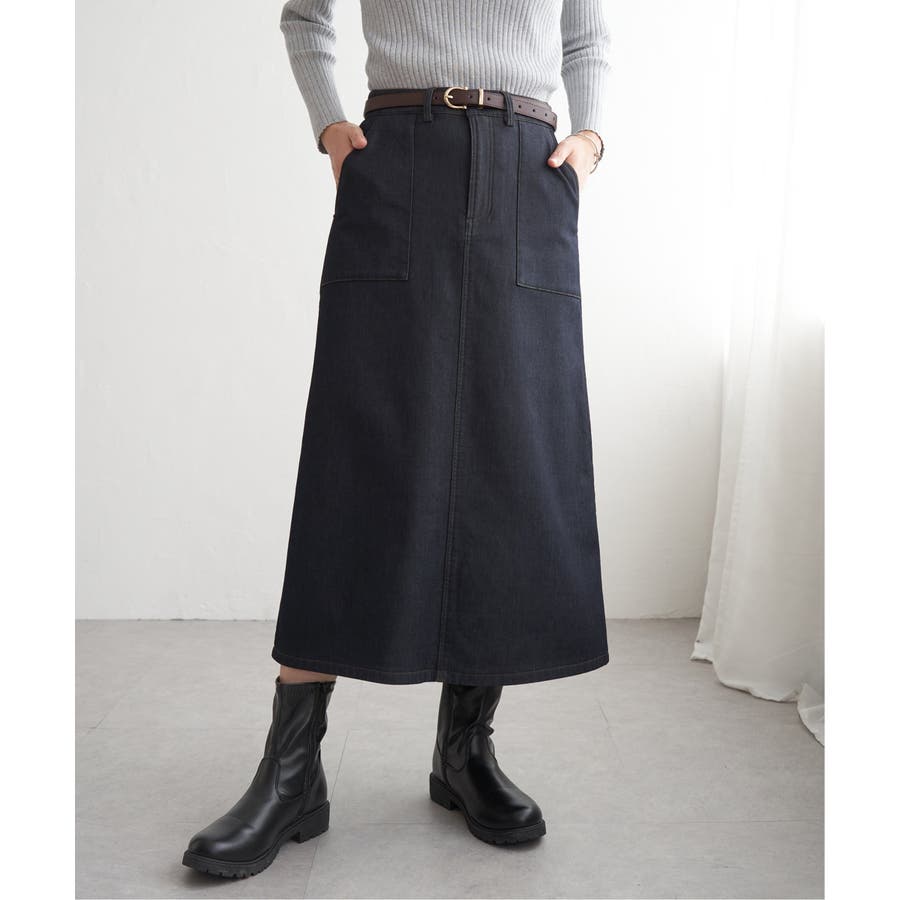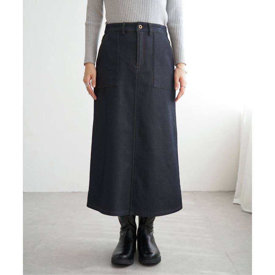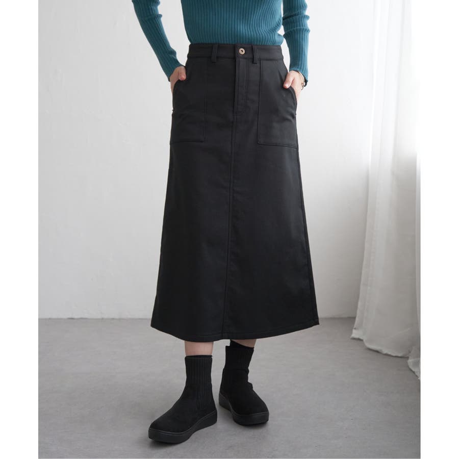 ベーシックなベイカーポケットデザインの、ややAラインシルエットロングスカート。
