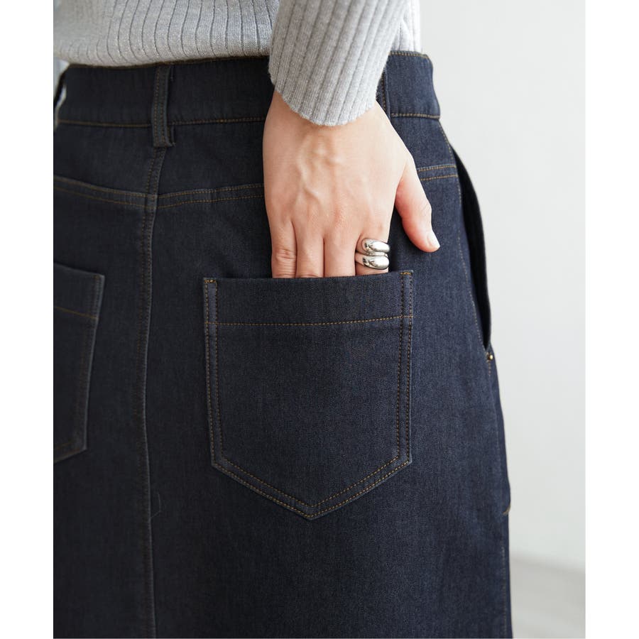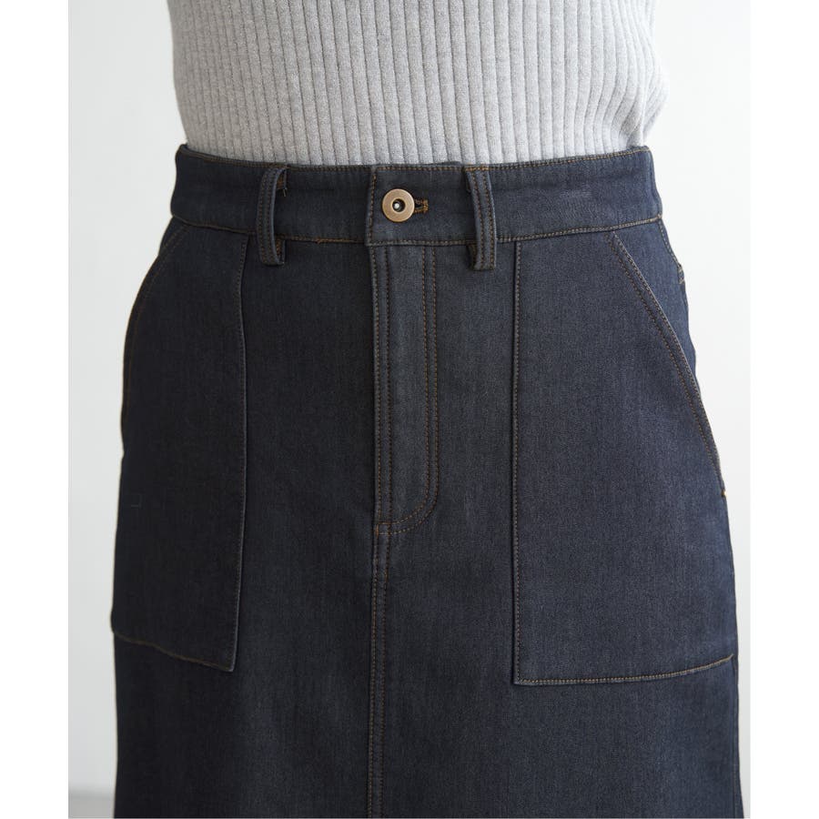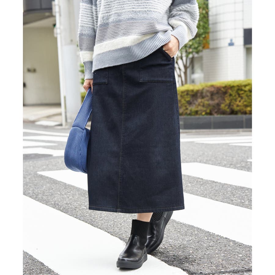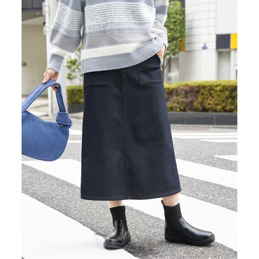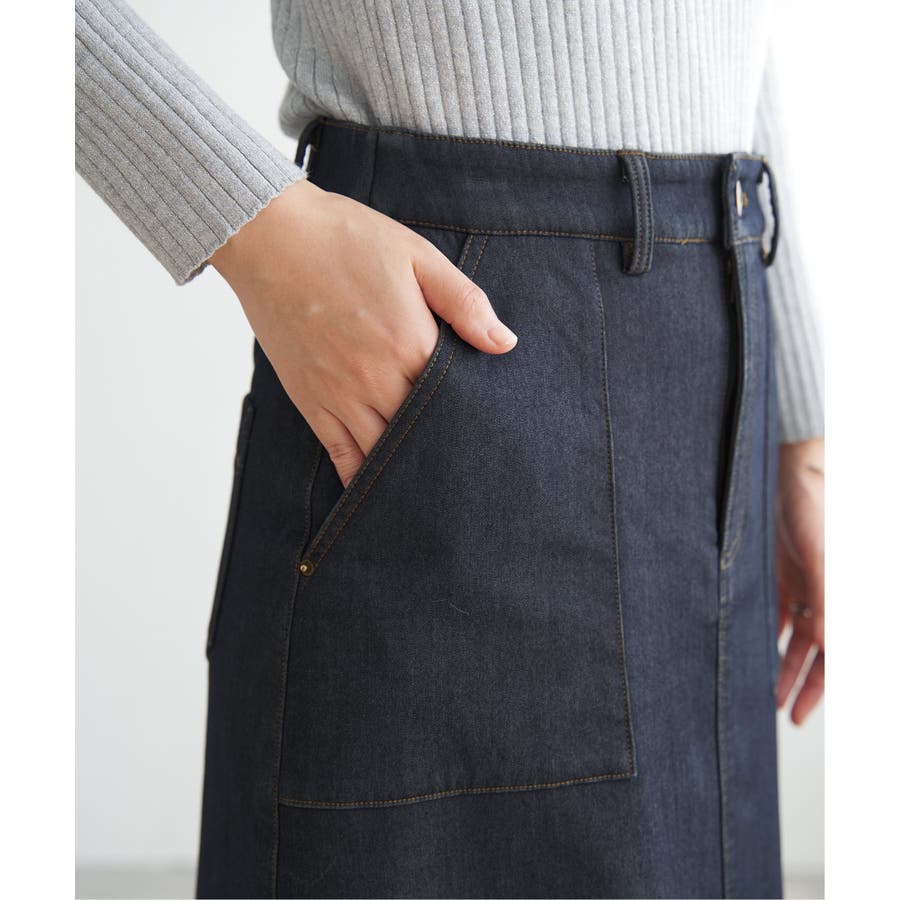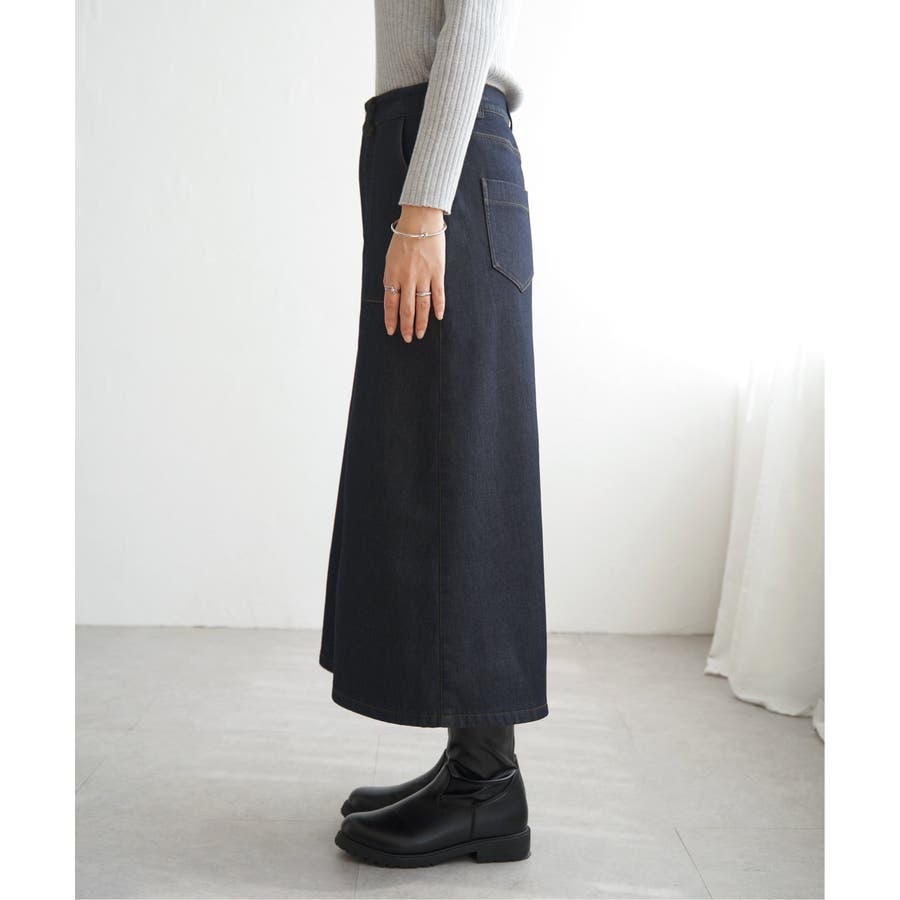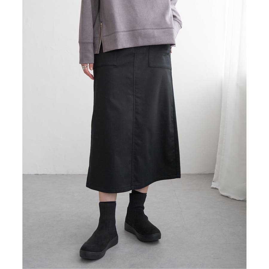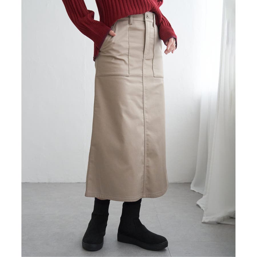 ベーシックなベイカーポケットデザインの、ややAラインシルエットロングスカート。