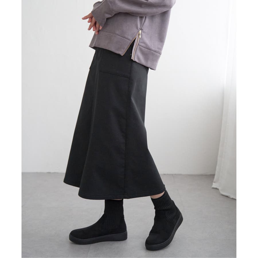 裏側へ起毛素材を貼り合わせたボンディングベイカースカート。