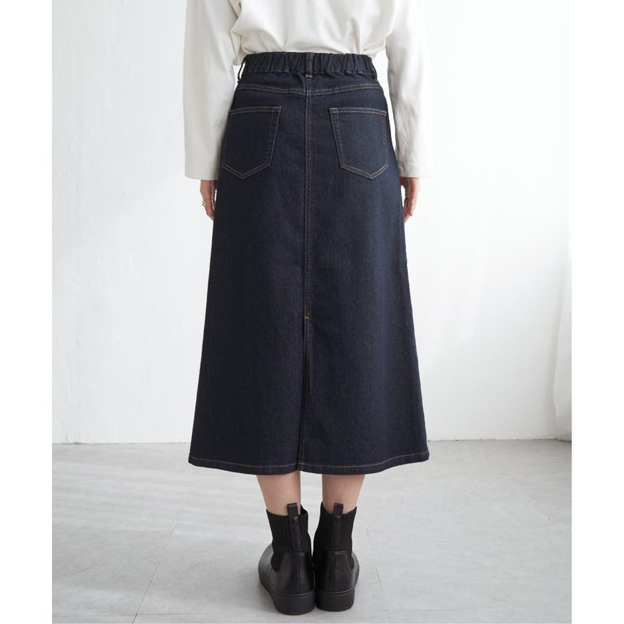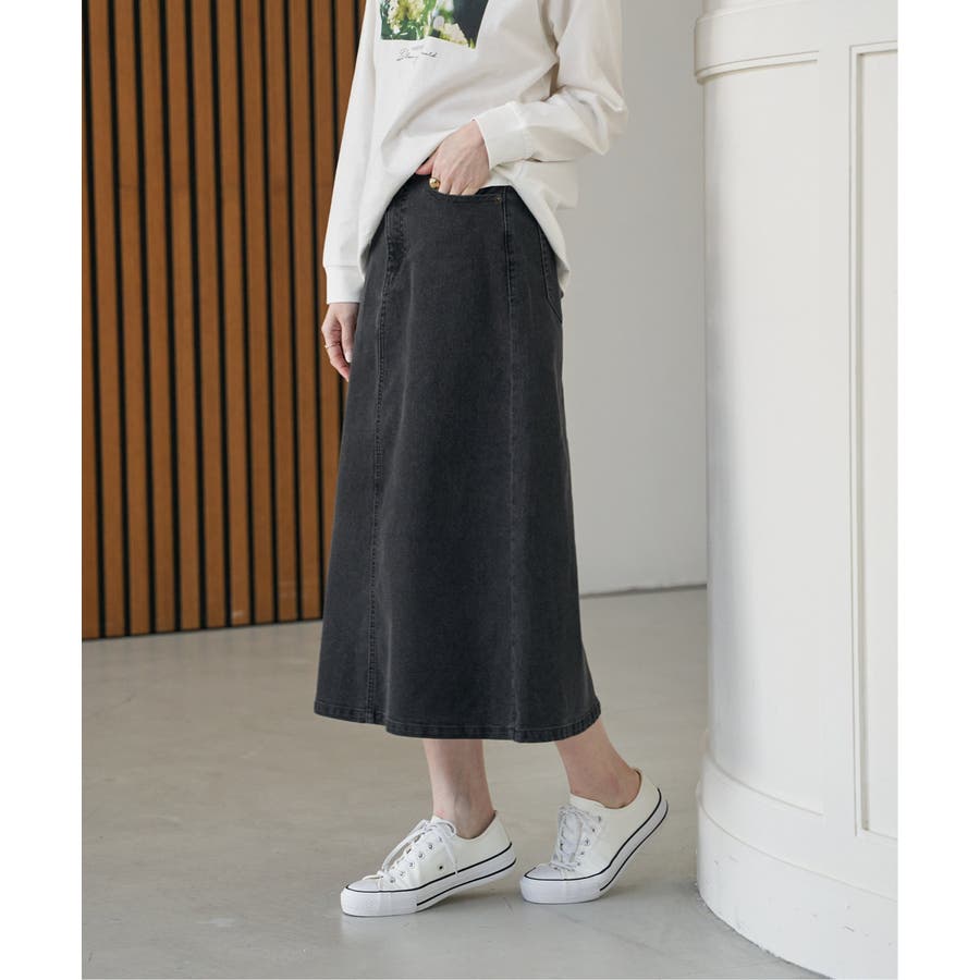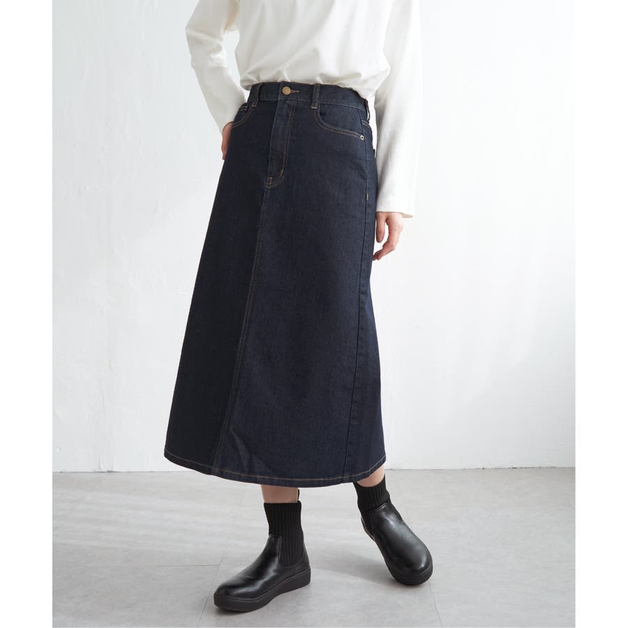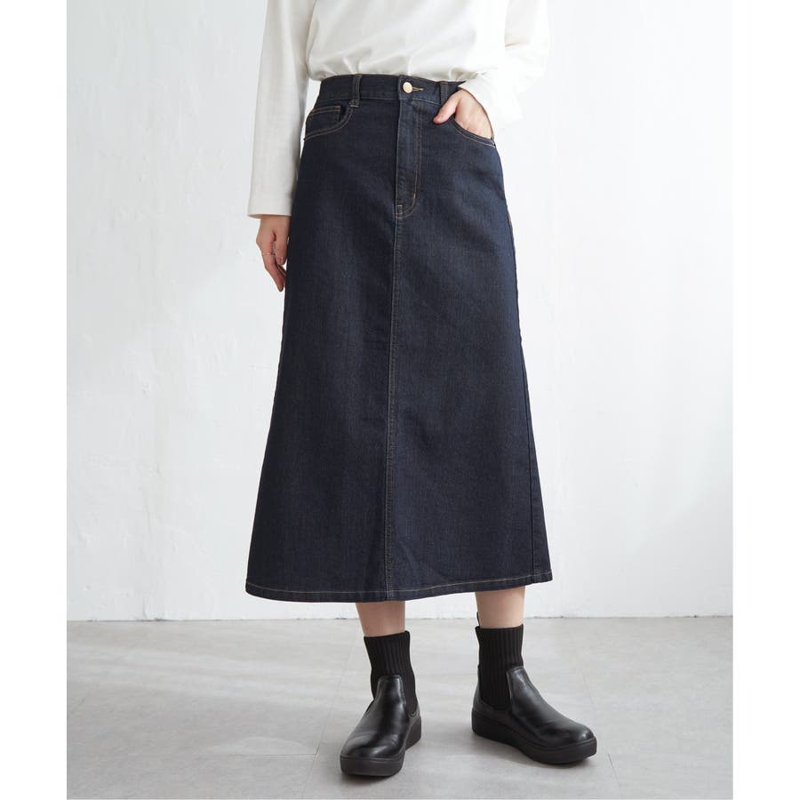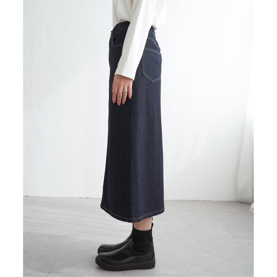 ストレッチ性に優れたデニム素材を使用したロングスカート。