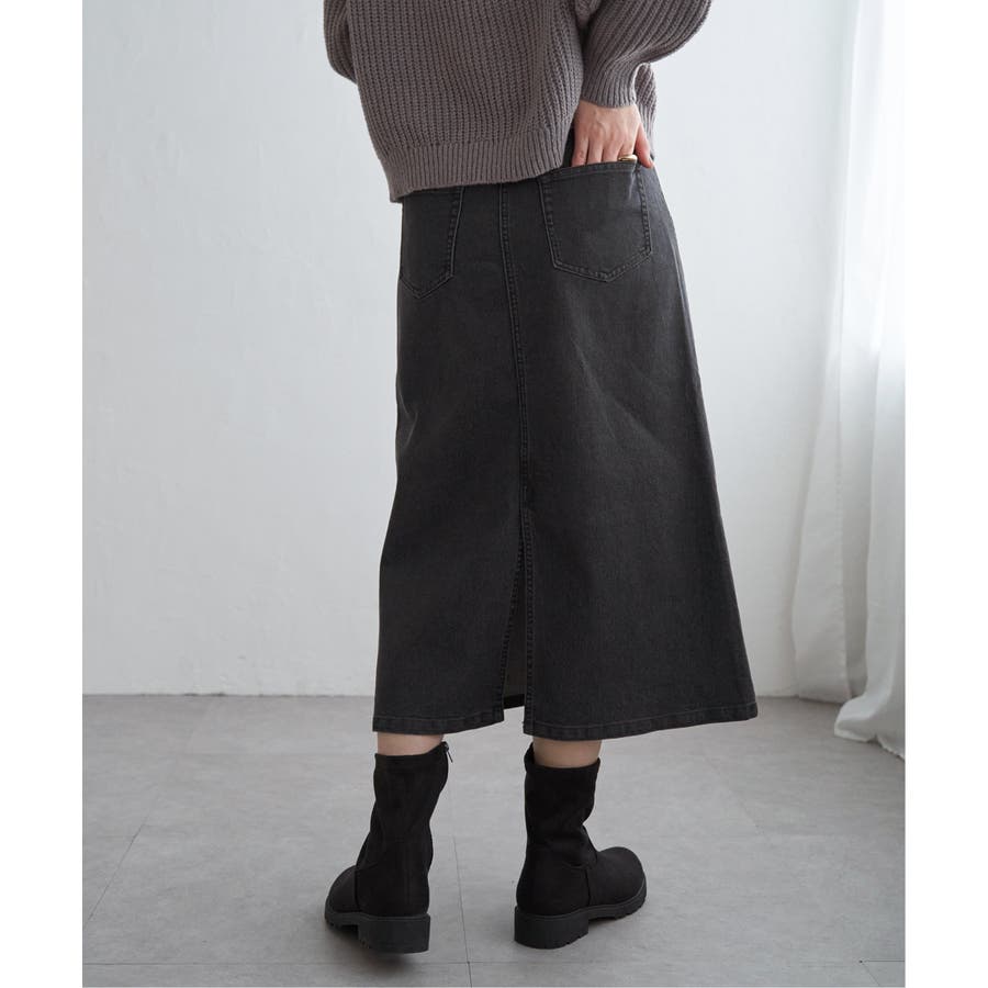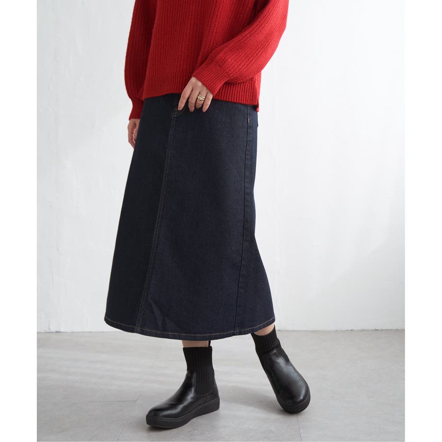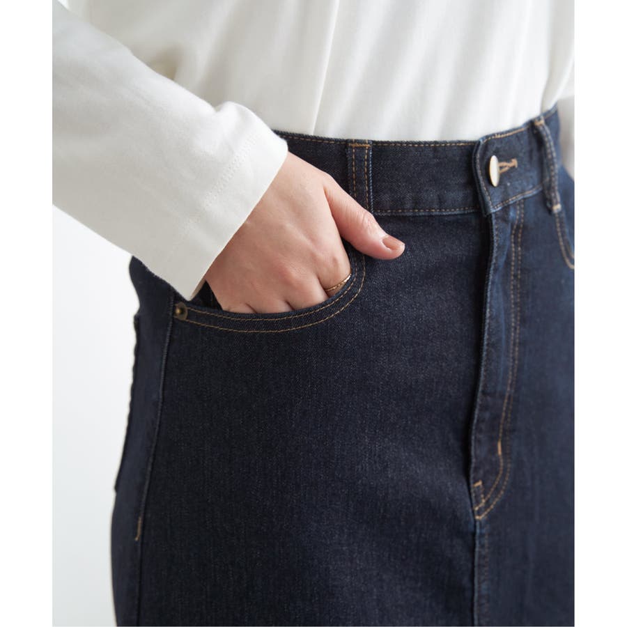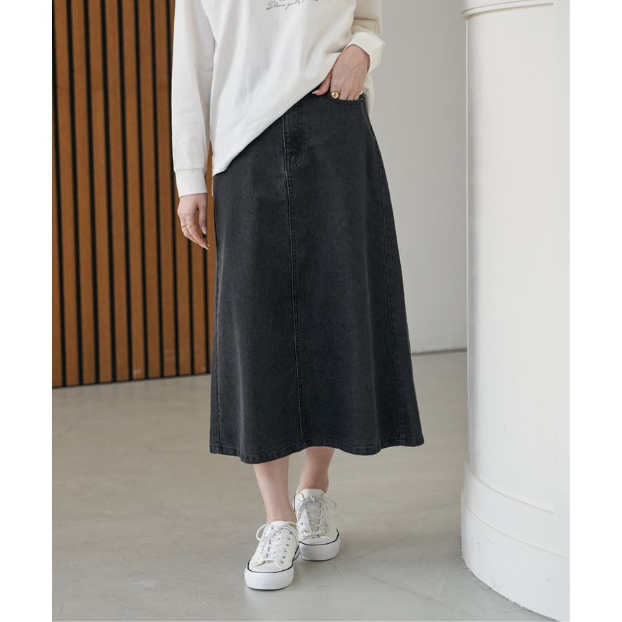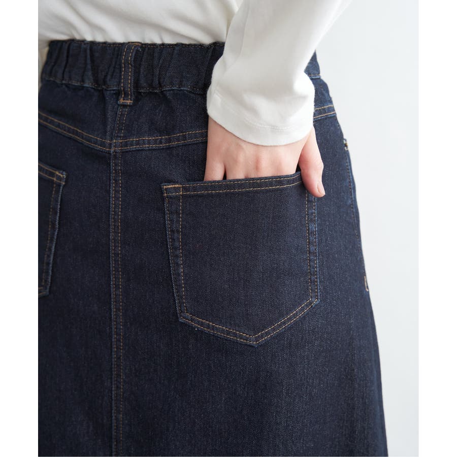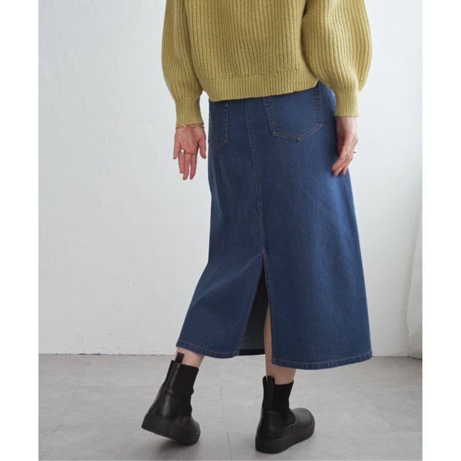 ストレッチ性に優れたデニム素材を使用したロングスカート。