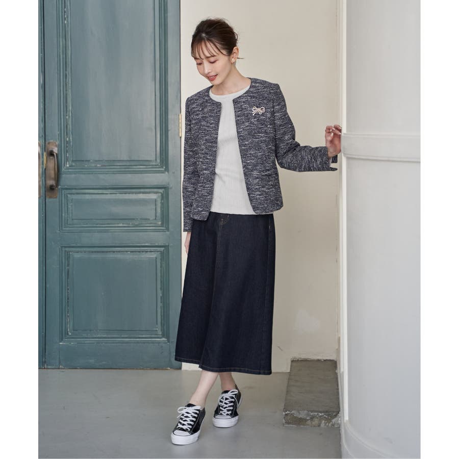 シンプルなデザインでカジュアルにもきれいめにも合わせやすく、季節を問わず活躍する一着です。