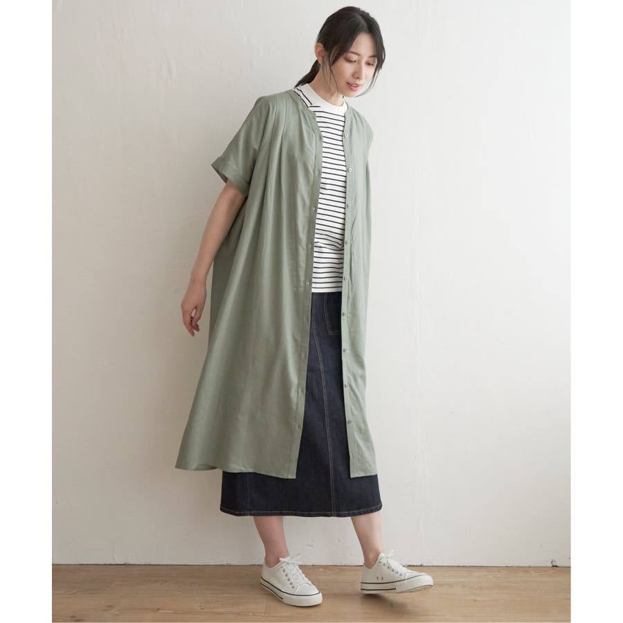 一枚でさらっとワンピースに、ボタンを開けて羽織りアレンジと2WAYで楽しめるアイテム。